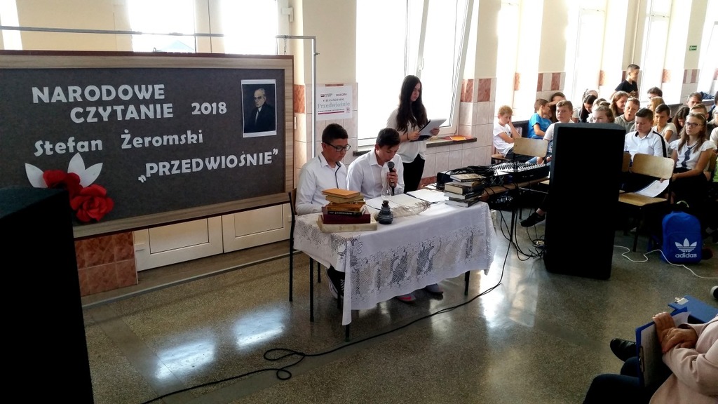 W poniedziałek 10 IX 2018r. uczniowie, rodzice oraz nauczyciele i pracownicy Szkoły Podstawowej im. Jana Kochanowskiego w Szówsku włączyli się w ogólnopolską akcję Narodowego Czytania Przedwiośnia Stefana Żeromskiego. Dzięki odpowiednio dobranym fragmentom słuchacze mieli możliwość zapoznania się z problematyką utworu i jego bohaterami. Serdecznie dziękujemy