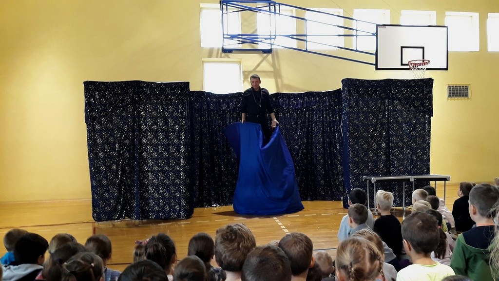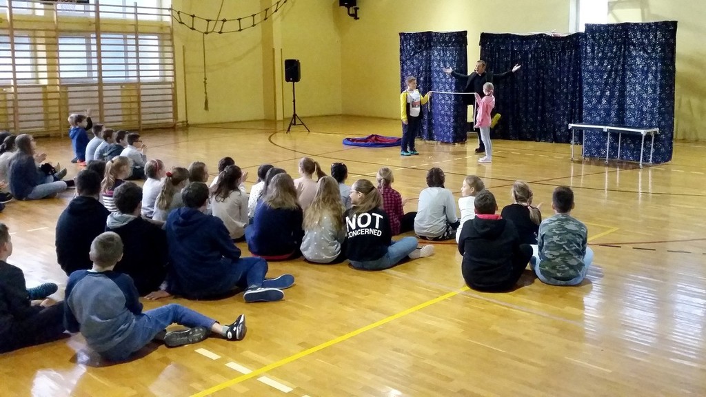 25 października 2018r. do naszej szkoły zawitał pan Aleksander Tkacz wraz z zespołem towarzyszącym. Zaprezentował wiele magicznych sztuczek, wymagających sprytu i dokładności. Pokaz iluzji wprawił uczniów w świetny nastrój - a szczególnie sztuczka zamiany papieru w pieniądze.