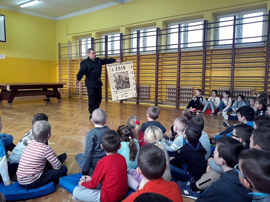 W dniu 11.12.2018r. w naszej szkole pojawił się strażak z Powiatowej Państwowej Straży Pożarnej w Jarosławiu i rozmawiał z uczniami na temat "Co zrobić, żeby żyć bezpieczniej?". Dzieci dowiedziały się, jakie mogą być zagrożenia podczas ogrzewania domu zimą, co to jest czad
