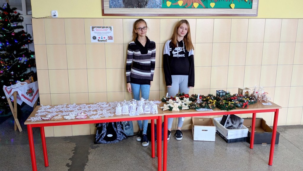 Dzieci przygotowały świąteczne stroiki i inne ozdoby. Sprzedawane będą również pierniki.