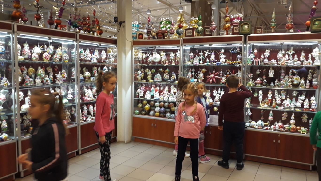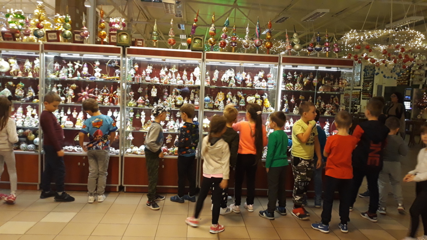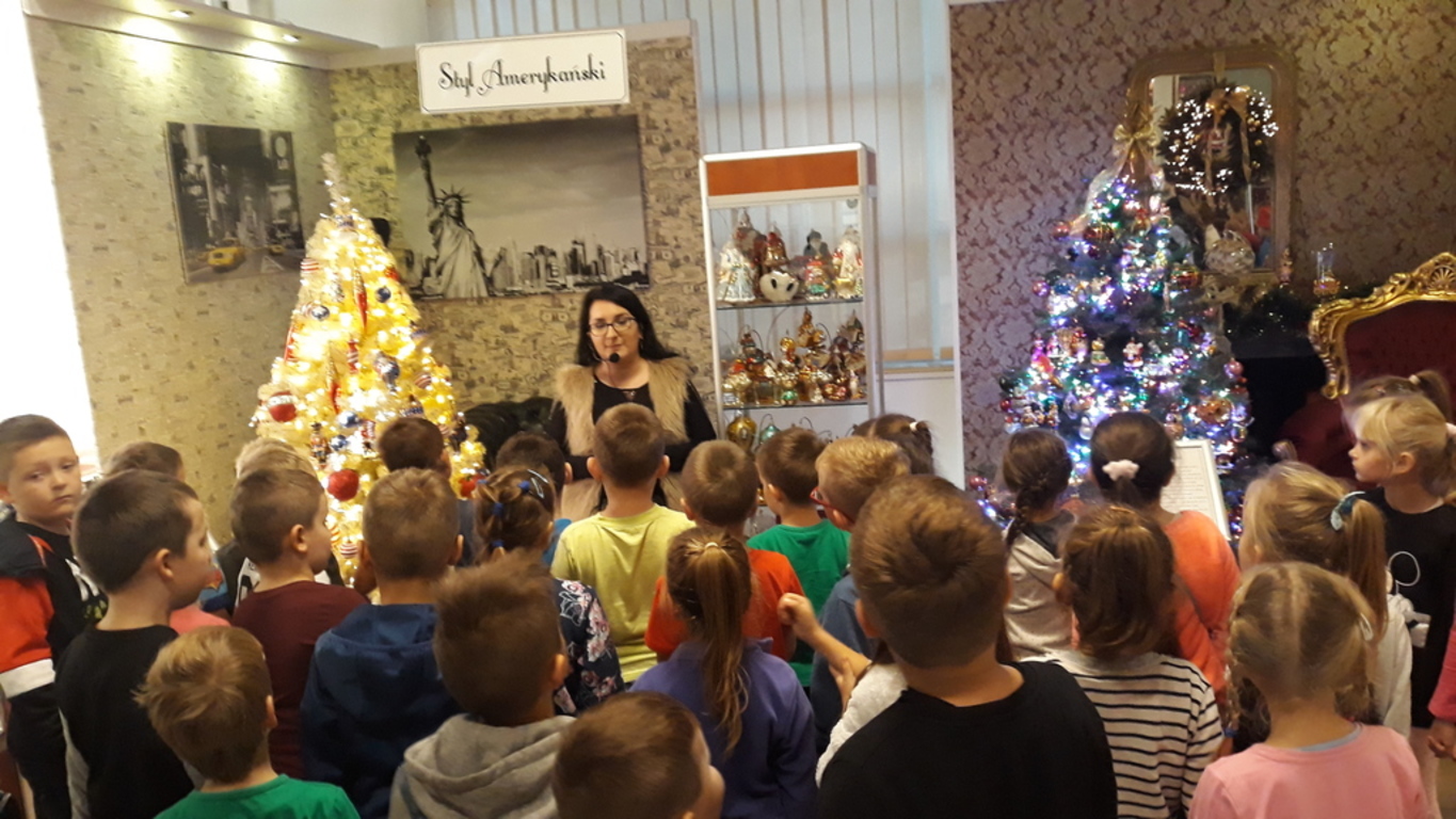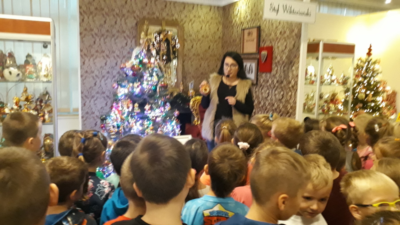 Wycieczka uczniów klas pierwszych do Muzeum bombki choinkowe w Nowej Dębie