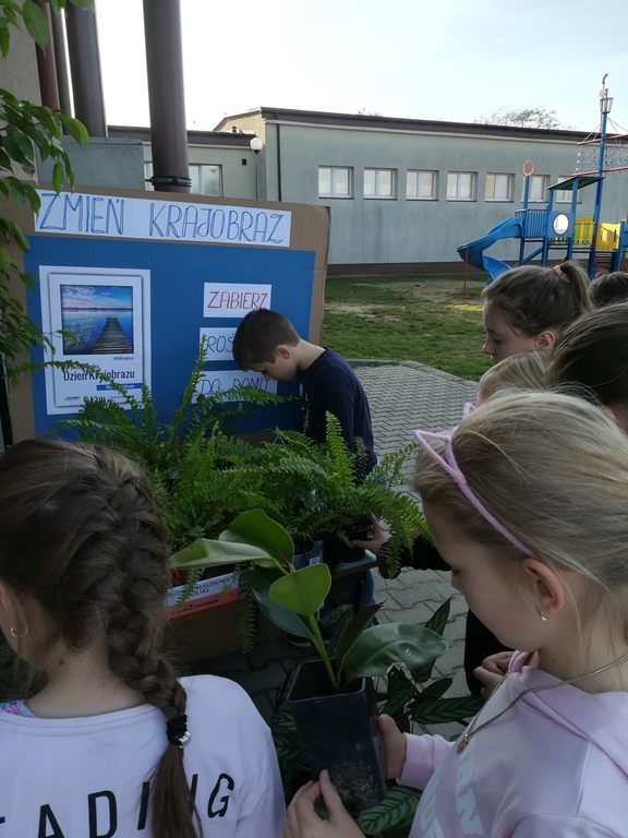 W dniu 20 października 2019r. obchodziliśmy Dzień Krajobrazu. Uczniowie naszej szkoły przygotowali plakaty i wzięli udział w akcji "Zmień krajobraz - zabierz roślinę do domu". Klasa IV na wycieczce do Radawy miała możliwość podziwiać krajobraz tej miejscowości. Dla uczniów kl. I - III zostały przeprowadzone zajęcia "Woda w krajobrazie".