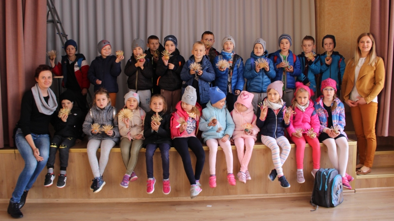 z okazji Dnia Jeża. Zajęcia odbyły się w Domu Kultury w Szówsku. Uczniowie tworzyli jeże z ziemniaków, wykałaczek i plasteliny.