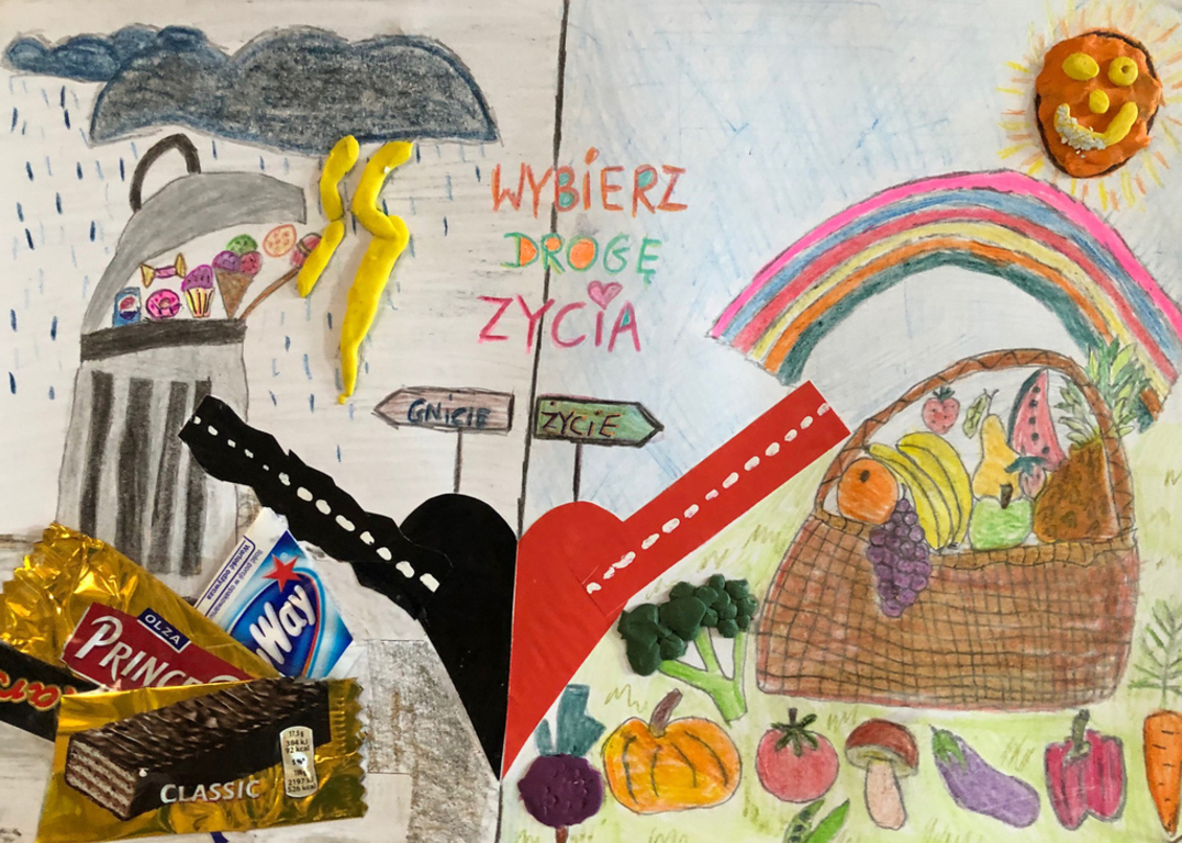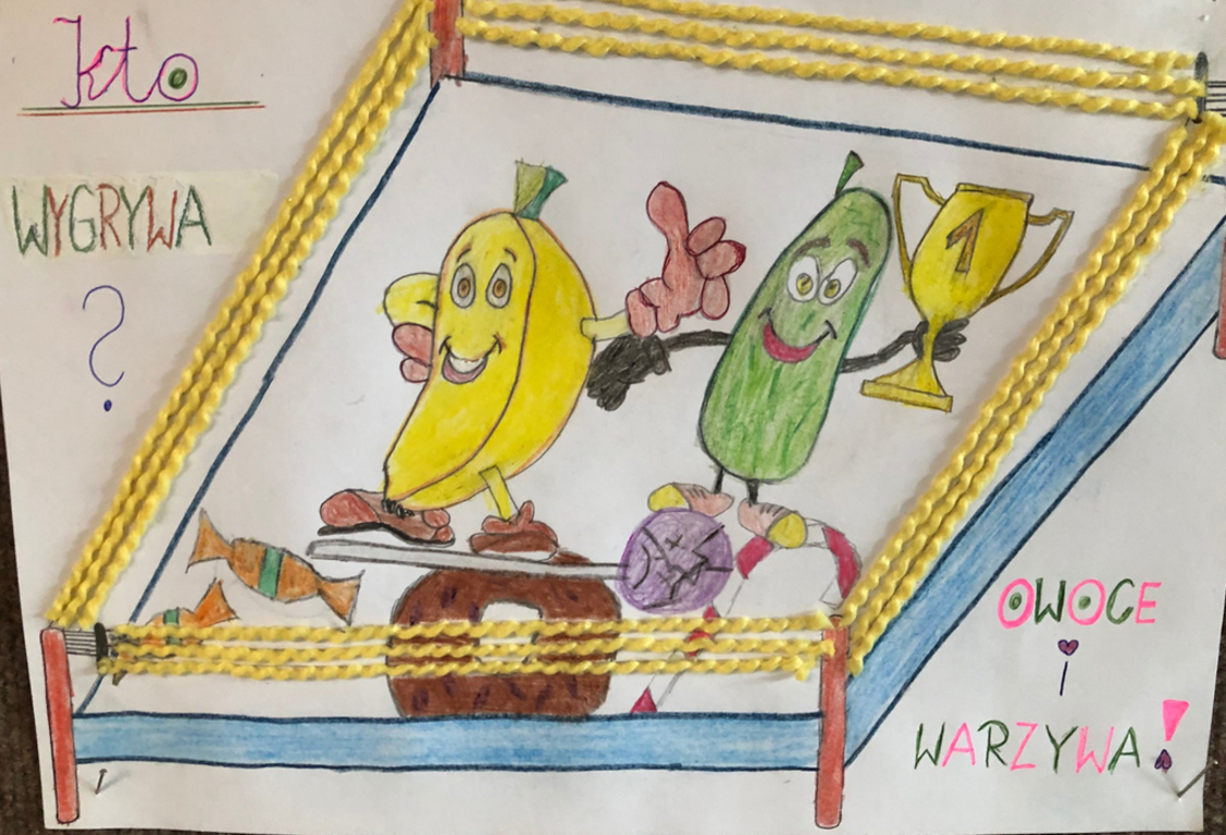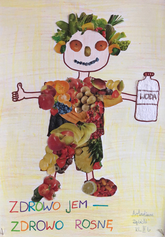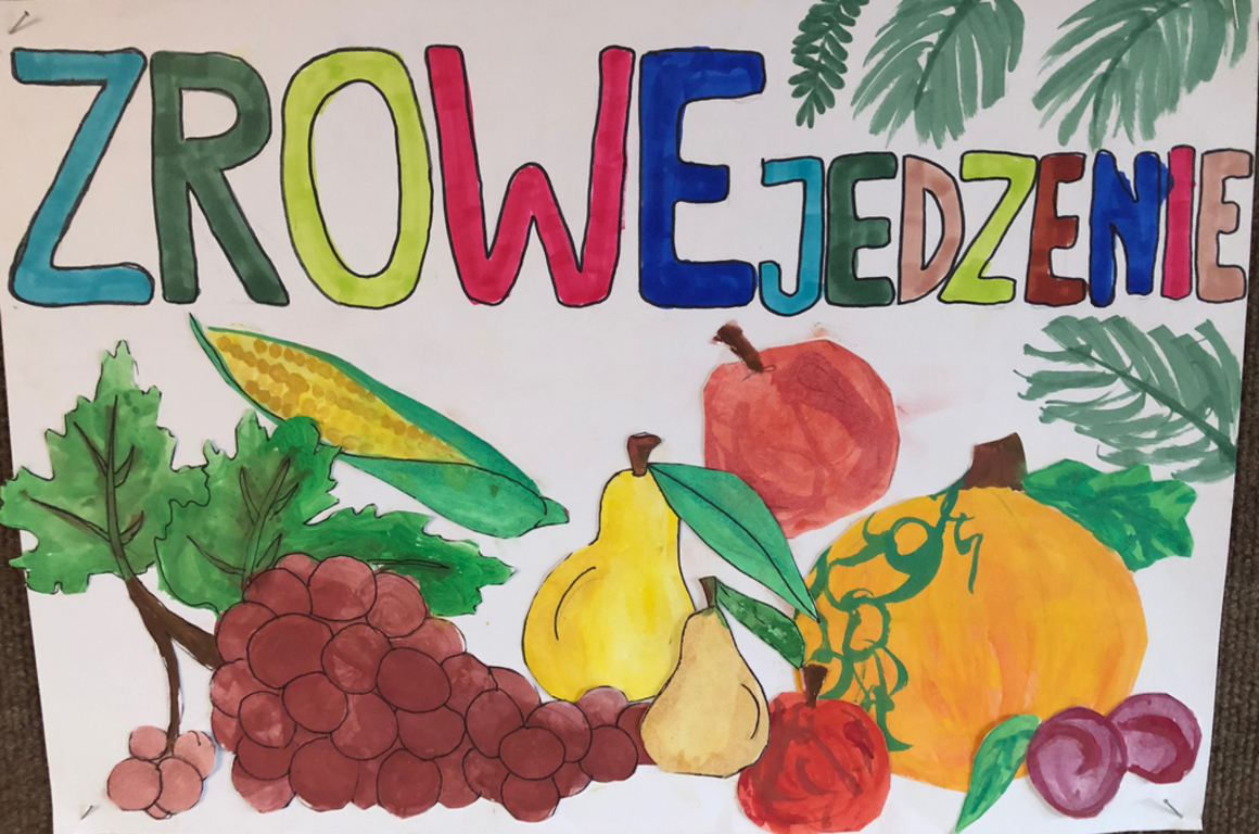 04.11.2019r. nastąpiło rozstrzygnięcie Konkursu plastycznego na plakat z hasłem „ Zdrowo się odżywiam” -rezygnacja ze słodkich napojów na rzecz wody, ze słodyczy na rzecz owoców i warzyw.