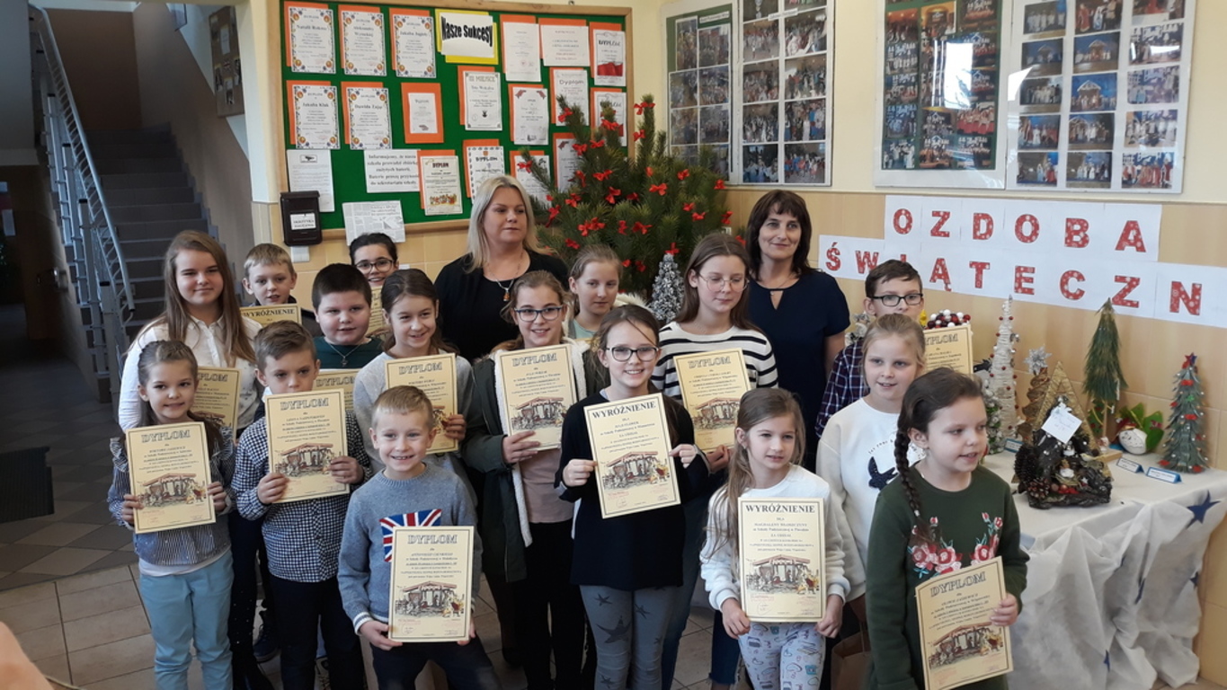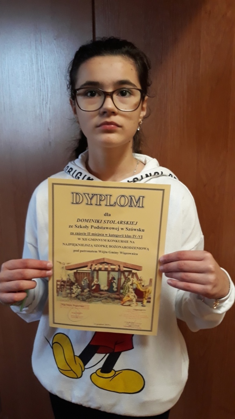 Cieszymy się, że wielu uczniów naszej szkoły bierze udział w konkursach związanych z tematyką Świąt Bożego Narodzenia. W miniony wtorek 17.12.2019 r. w Szkole Podstawowej im. Księdza Stanisława Sudoła w Wiązownicy rozstrzygnięty został XII GMINNY KONKURS NA NAJPIĘKNIEJSZĄ SZOPKĘ BOŻONARODZENIOWĄ POD PATRONATEM WÓJTA GMINY WIĄZOWNICA. II miejsce w kategorii klas I-III SP zajęła Wiktoria Jasiewicz –uczennica klasy II a. W kategorii klas IV-VIII również II miejsce zdobyła Dominika Stolarska –uczennica klasy VI a, zaś wyróżnienie Krystian Liszka – uczeń klasy VI a.