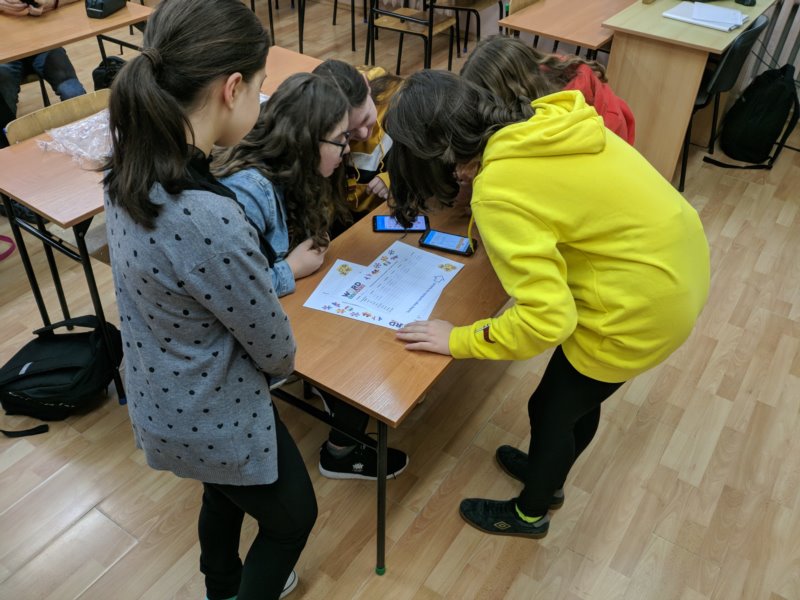 Uczniowie klas V-VIII przystroili szkołę oraz sale lekcyjne w barwy i symbole różnych krajów. Nie zabrakło również charakterystycznych elementów kulturowych - zostały przygotowane gazetki okolicznościowe, wystawy i plakaty. Punktem kulminacyjnym były quizy językowe, połączone z poszukiwaniem ukrytych w szkole słówek oraz haseł do krzyżówek, zakodowanych dodatkowo w postaci kodów QR. Niezbędne do poszukiwań i odczytywania haseł okazały się smartfony - co wywoływało spory entuzjazm wśród młodzieży. Rozwiązywanie quizów wymagało ścisłej współpracy uczniów. Z pewnością Dzień Języków Obcych na stałe wpisze się do kalendarza imprez.