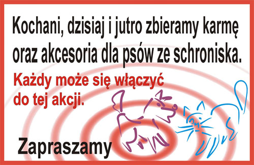 dzisiaj i jutro zbieramy karmę oraz akcesoria dla psów ze schroniska.