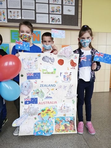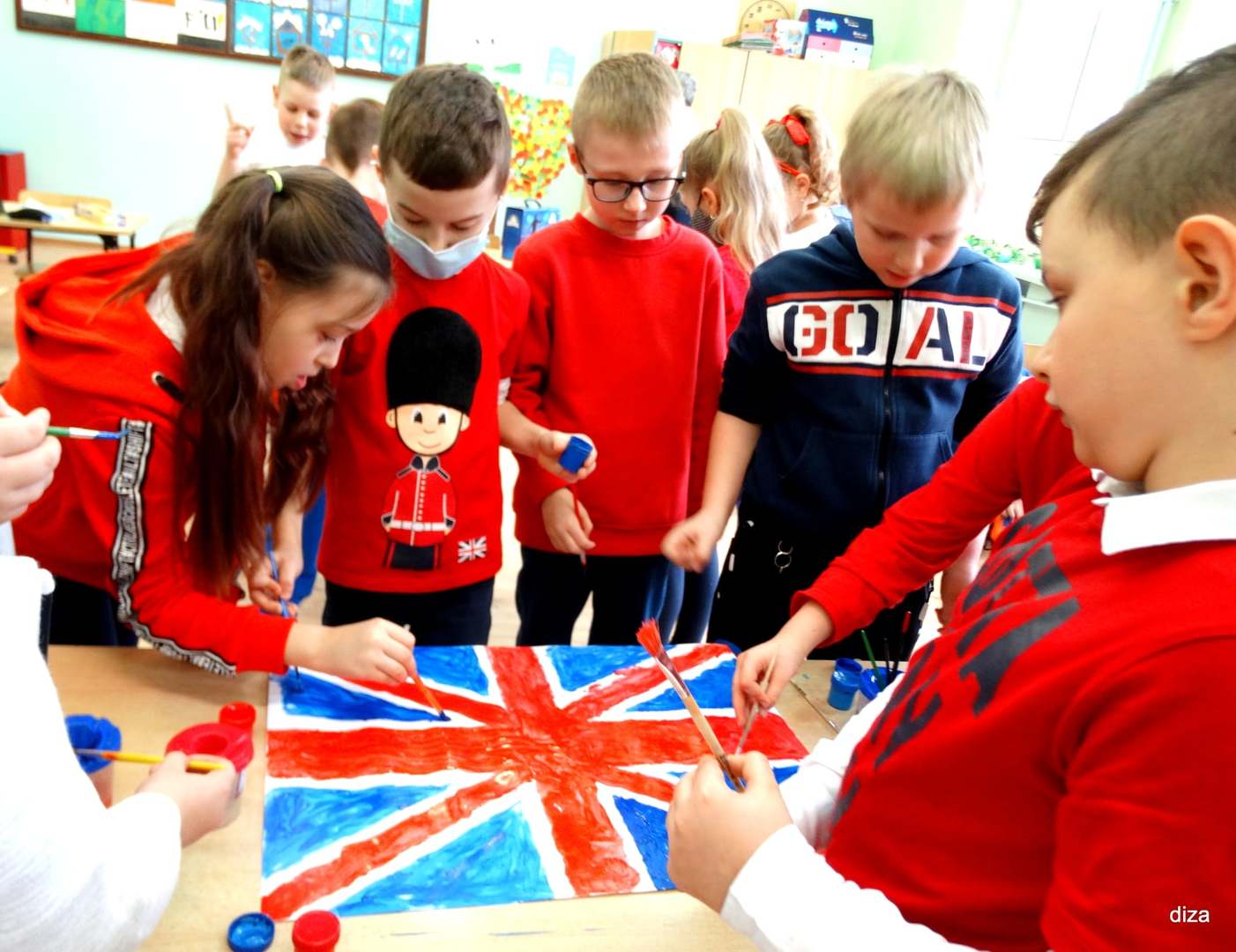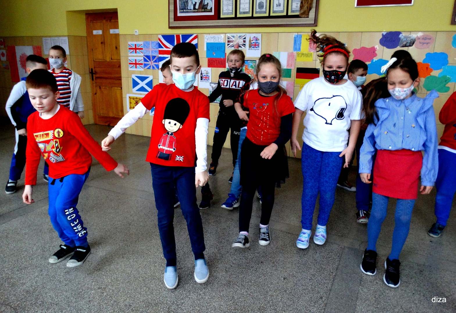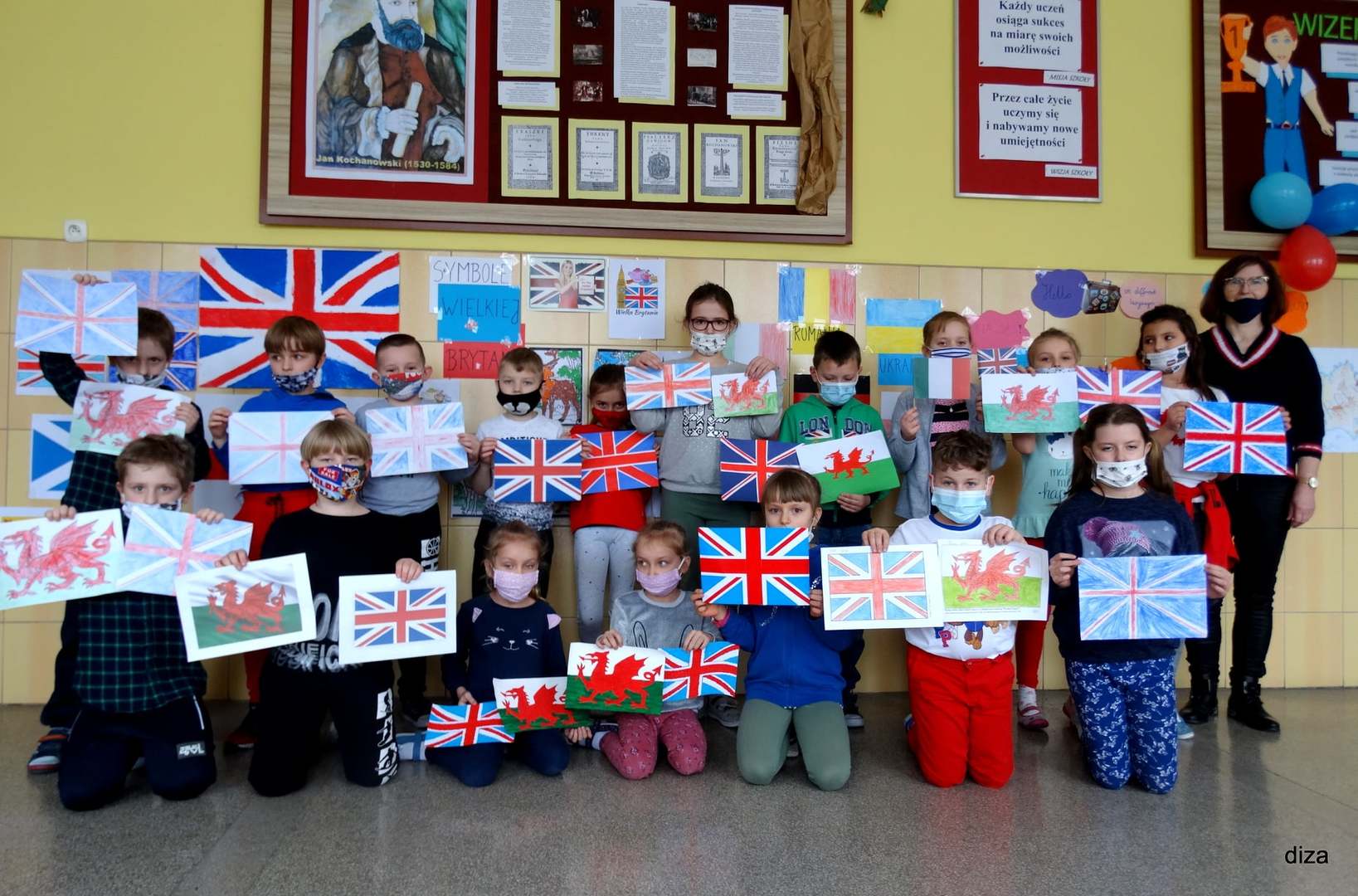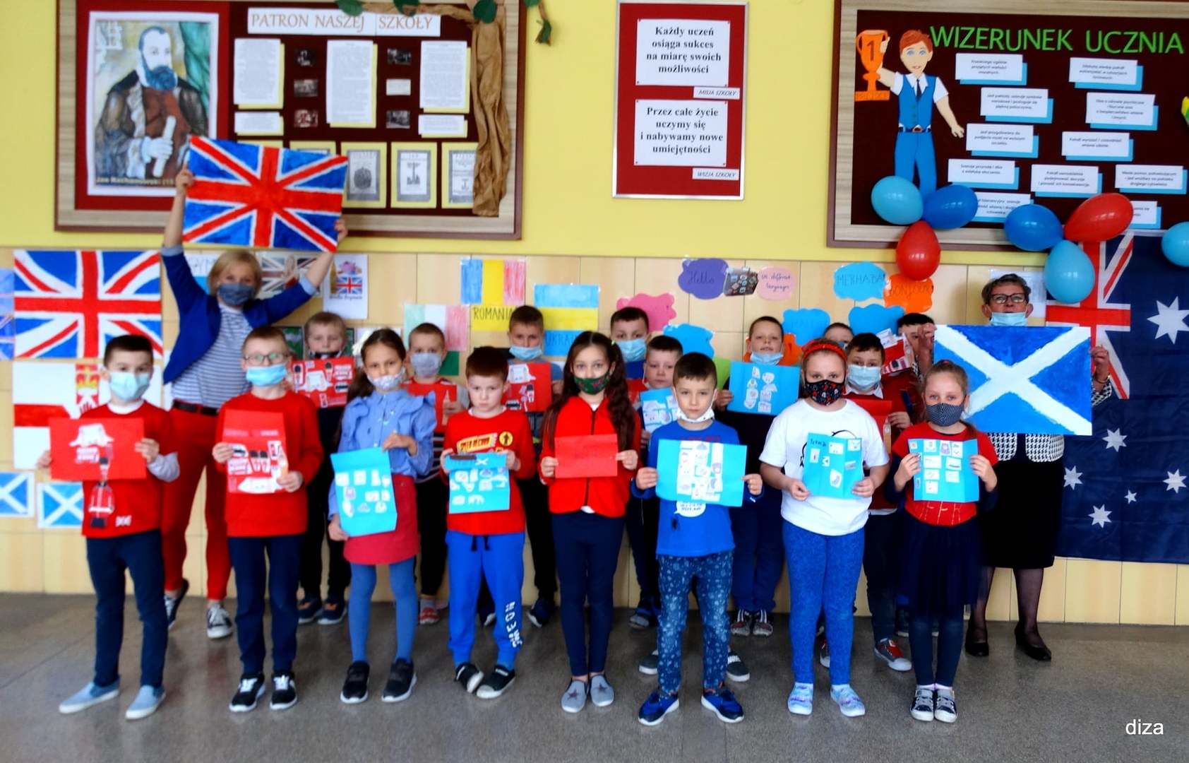 Starsi uczniowie nauczania początkowego zajęci byli zgłębianiem jakże ciekawych elementów geografii, historii i kultury Zjednoczonego Królestwa Wielkiej Brytanii i Irlandii Północnej, Australii , Stanów Zjednoczonych Ameryki Północnej, Kanady czy Nowej Zelandii . Nasi uczniowie, niczym prawdziwi, młodzi podróżnicy, mieli również okazję do poznania symboli, charakterystycznych miejsc, czy ciekawostek ze świata zwierząt, zamieszkujących obszary tych państw.Rysowaliśmy flagi, kolorowaliśmy zwierzaki, dmuchaliśmy balony a wszystkie nasze prace przez kilka następnych dni możecie obejrzeć na korytarzu, który w ten dzień stał się na chwilę kolorowym światem języka angielskiego. Dzień Języków Obcych niektórzy z nas zakończyli wspólną nauką irlandzkiego tańcaJig Dance. To była naprawdę niezapomniana podróż pełna przygód!