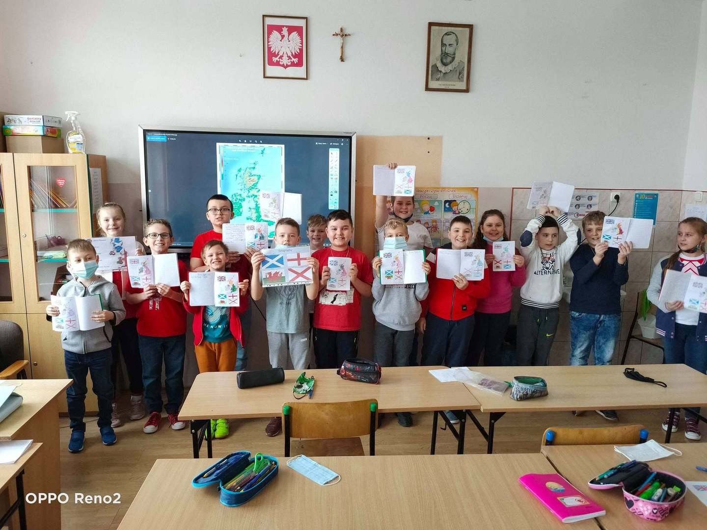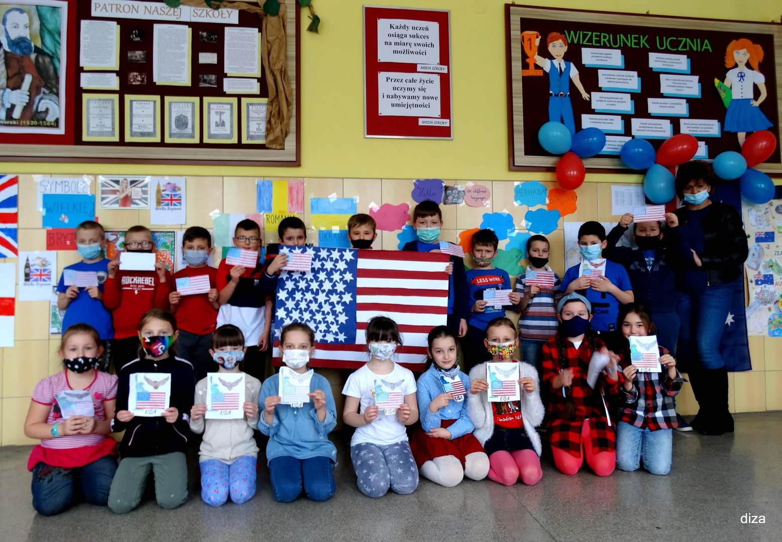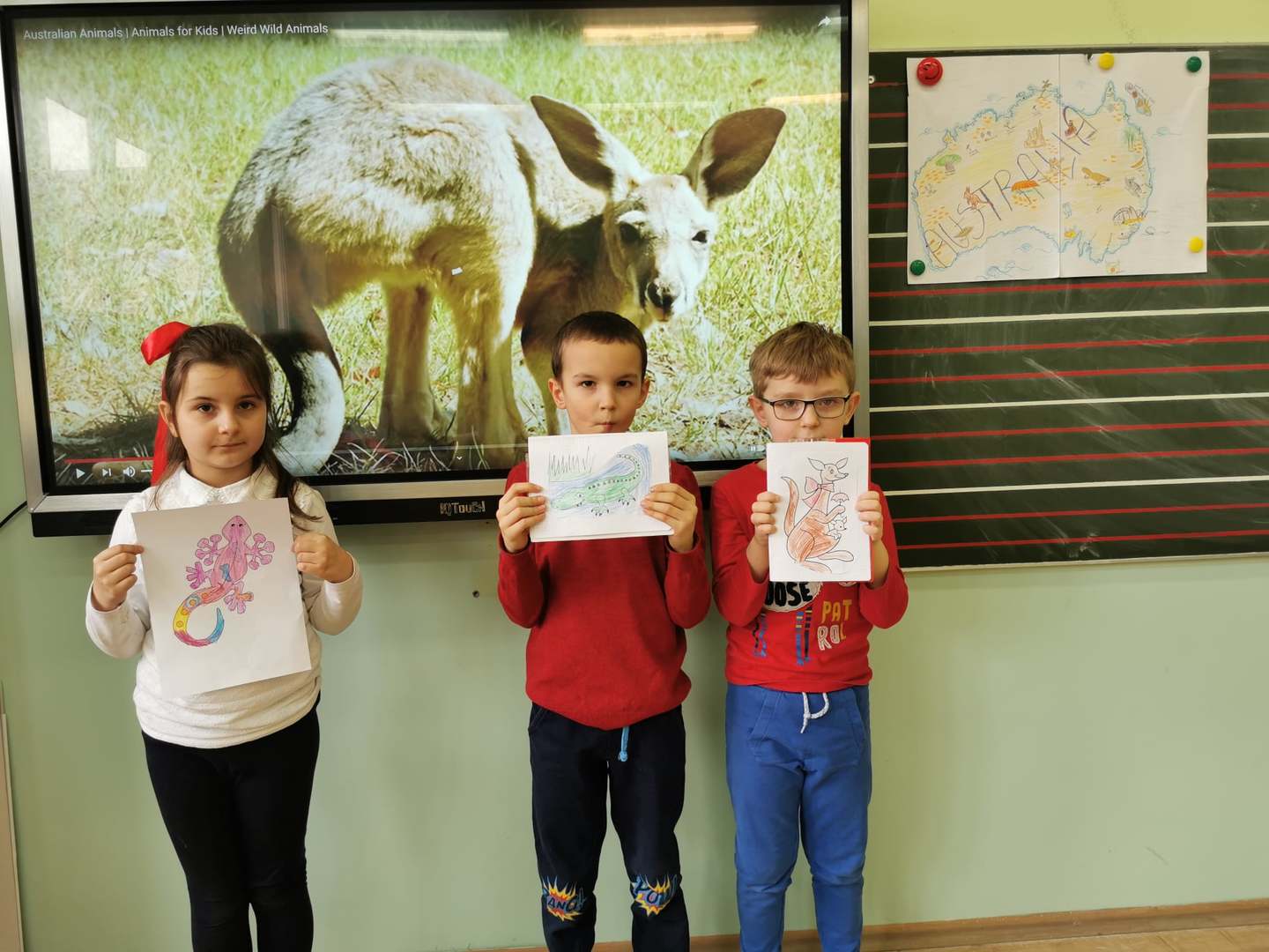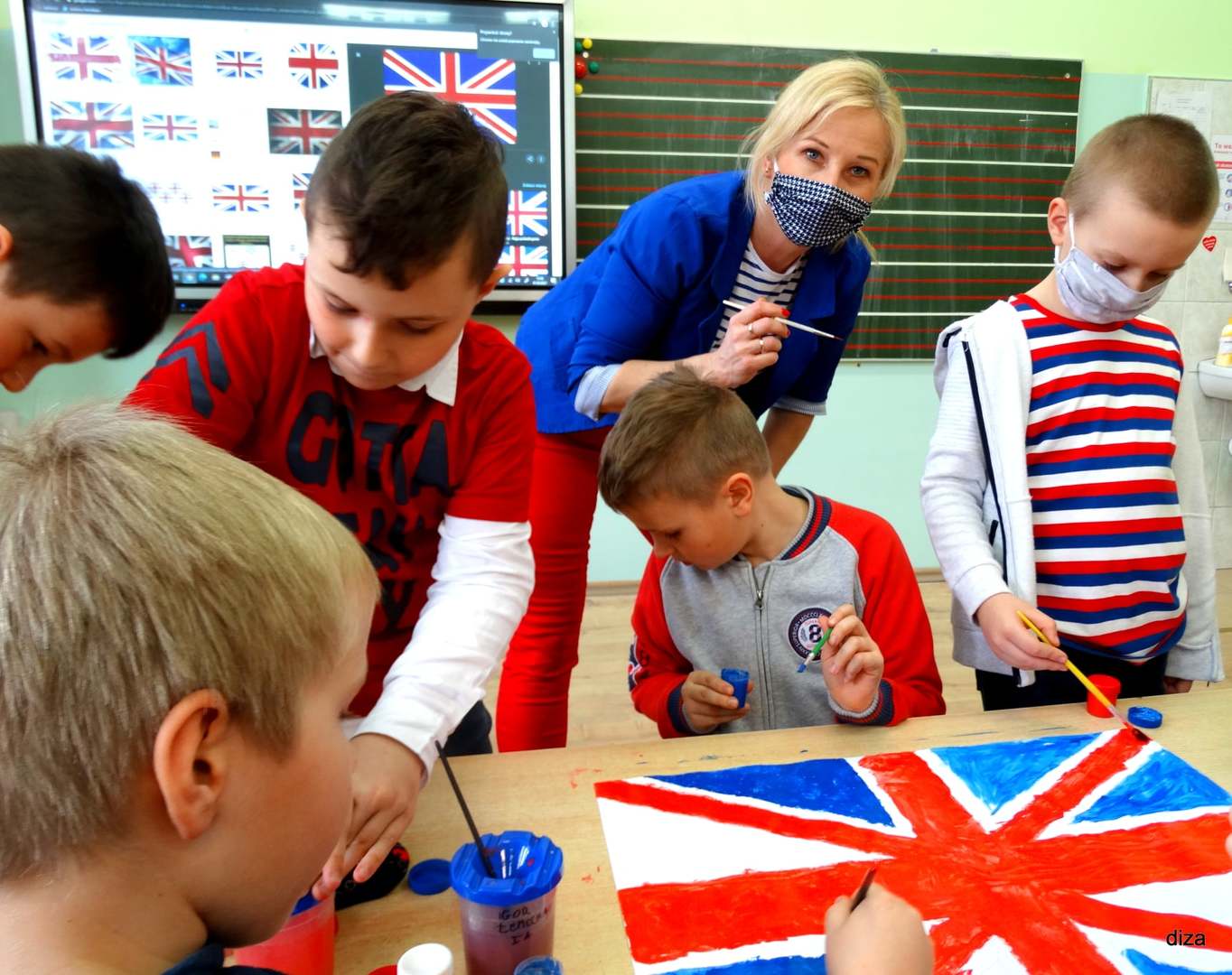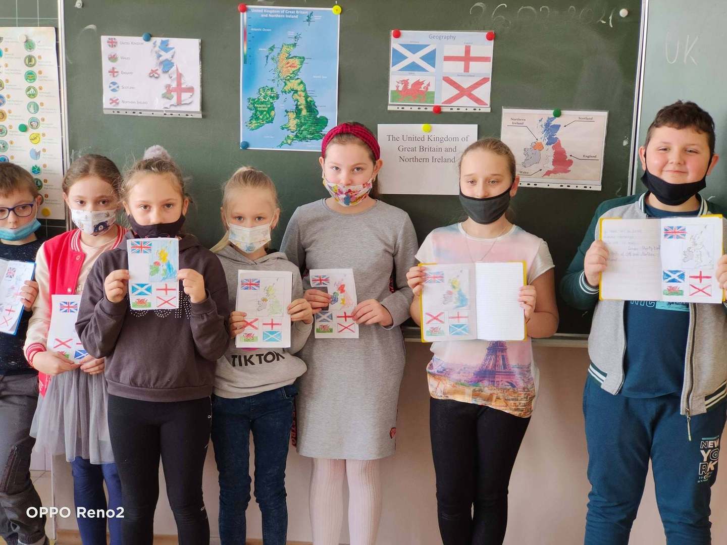 Starsi uczniowie nauczania początkowego zajęci byli zgłębianiem jakże ciekawych elementów geografii, historii i kultury Zjednoczonego Królestwa Wielkiej Brytanii i Irlandii Północnej, Australii , Stanów Zjednoczonych Ameryki Północnej, Kanady czy Nowej Zelandii . Nasi uczniowie, niczym prawdziwi, młodzi podróżnicy, mieli również okazję do poznania symboli, charakterystycznych miejsc, czy ciekawostek ze świata zwierząt, zamieszkujących obszary tych państw.Rysowaliśmy flagi, kolorowaliśmy zwierzaki, dmuchaliśmy balony a wszystkie nasze prace przez kilka następnych dni możecie obejrzeć na korytarzu, który w ten dzień stał się na chwilę kolorowym światem języka angielskiego. Dzień Języków Obcych niektórzy z nas zakończyli wspólną nauką irlandzkiego tańcaJig Dance. To była naprawdę niezapomniana podróż pełna przygód!