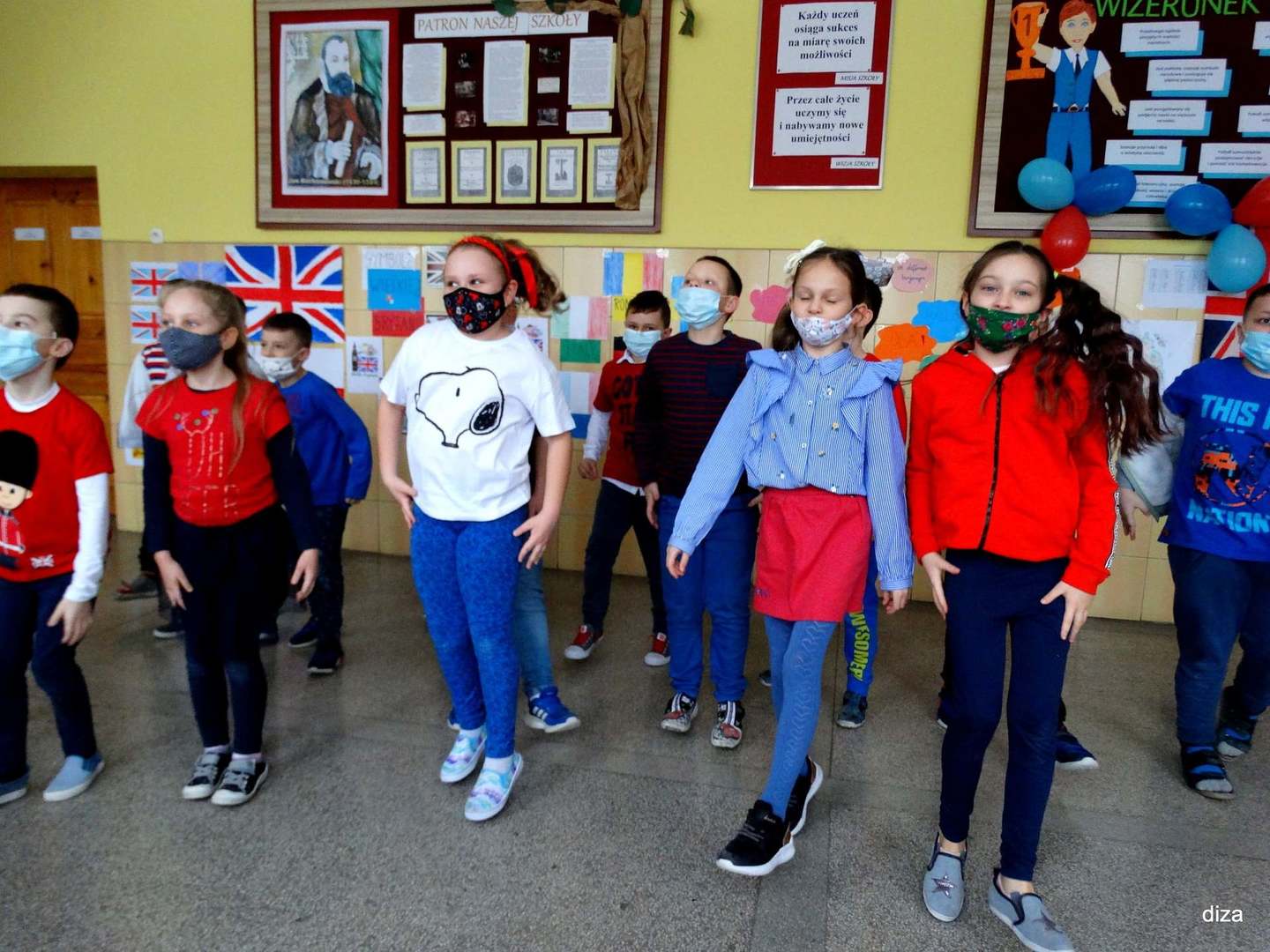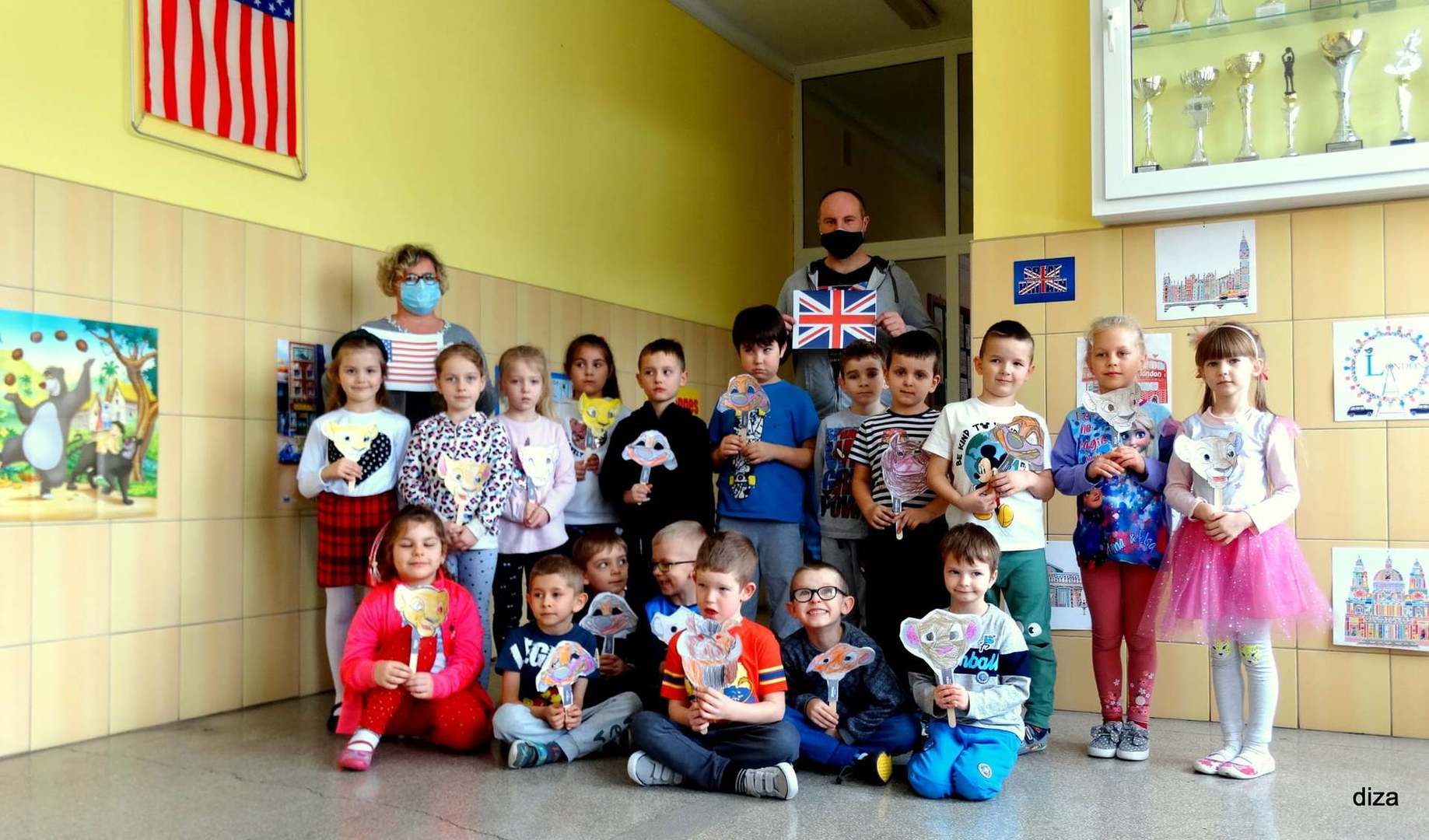 Grupa zerowa spędziła ten dzień pod hasłem „ Bajkowego Świata Języka Angielskiego”. Były kolorowanki z bohaterami ulubionych kreskówek i filmów animowanych, samodzielne wykonywanie masek Simby, Timona, Nali czy Pumby z filmu animowanego „Król Lew” oraz tańce, których końca nikt nawet nie czekał.