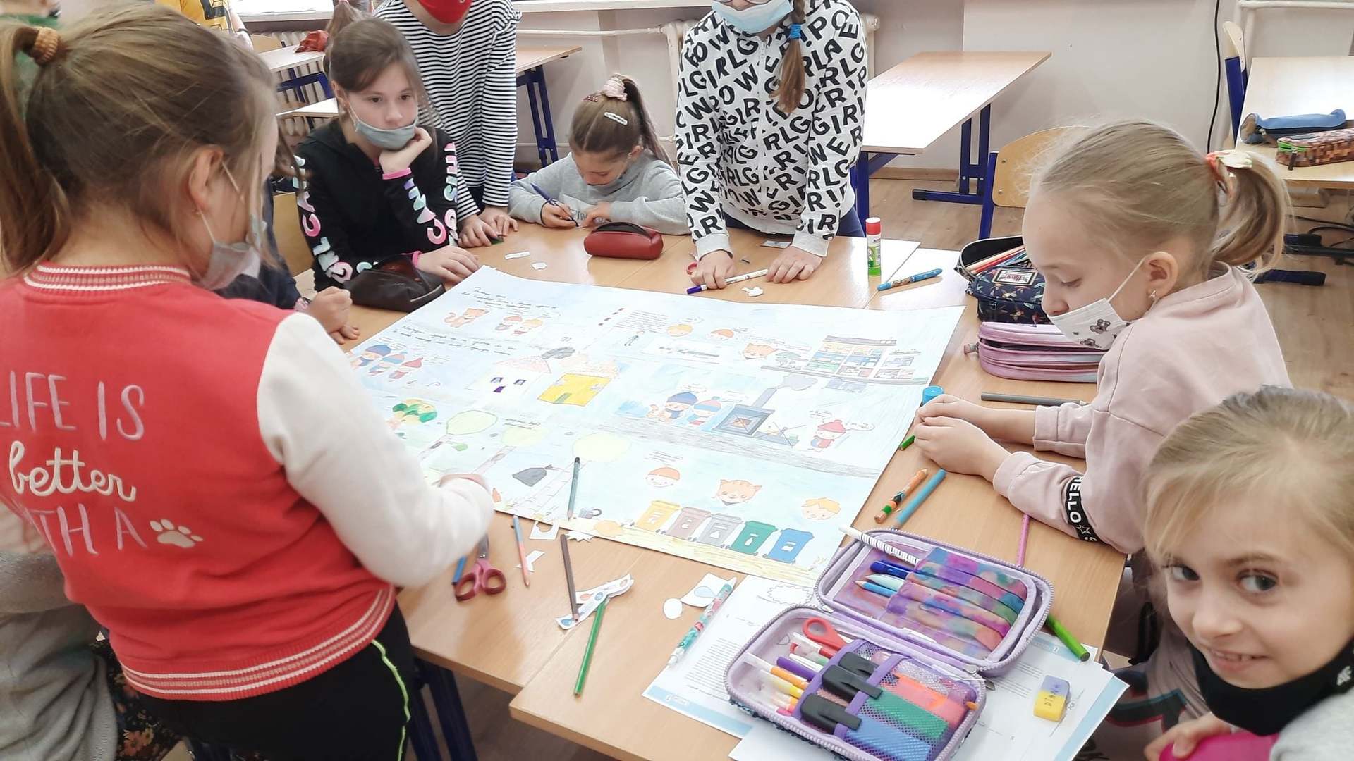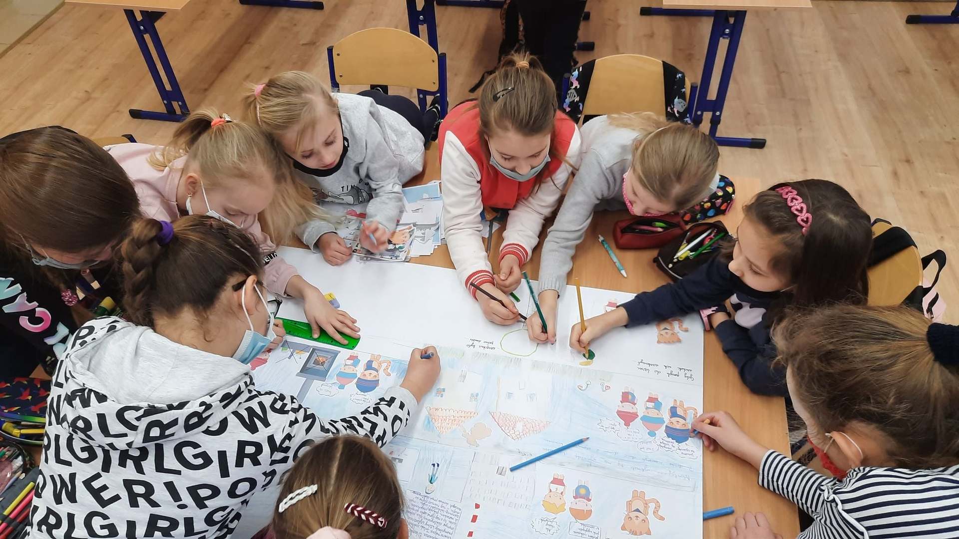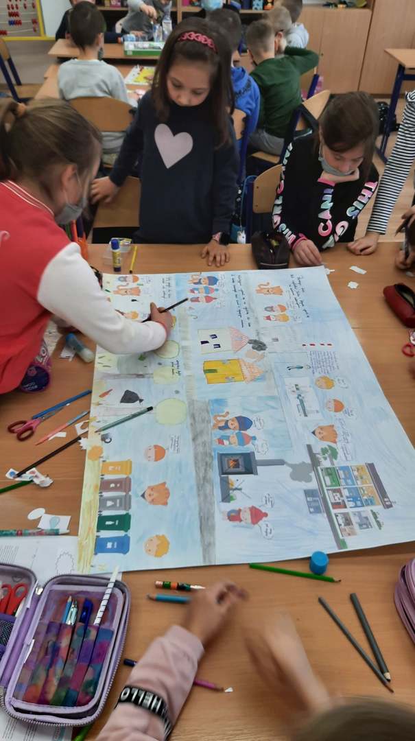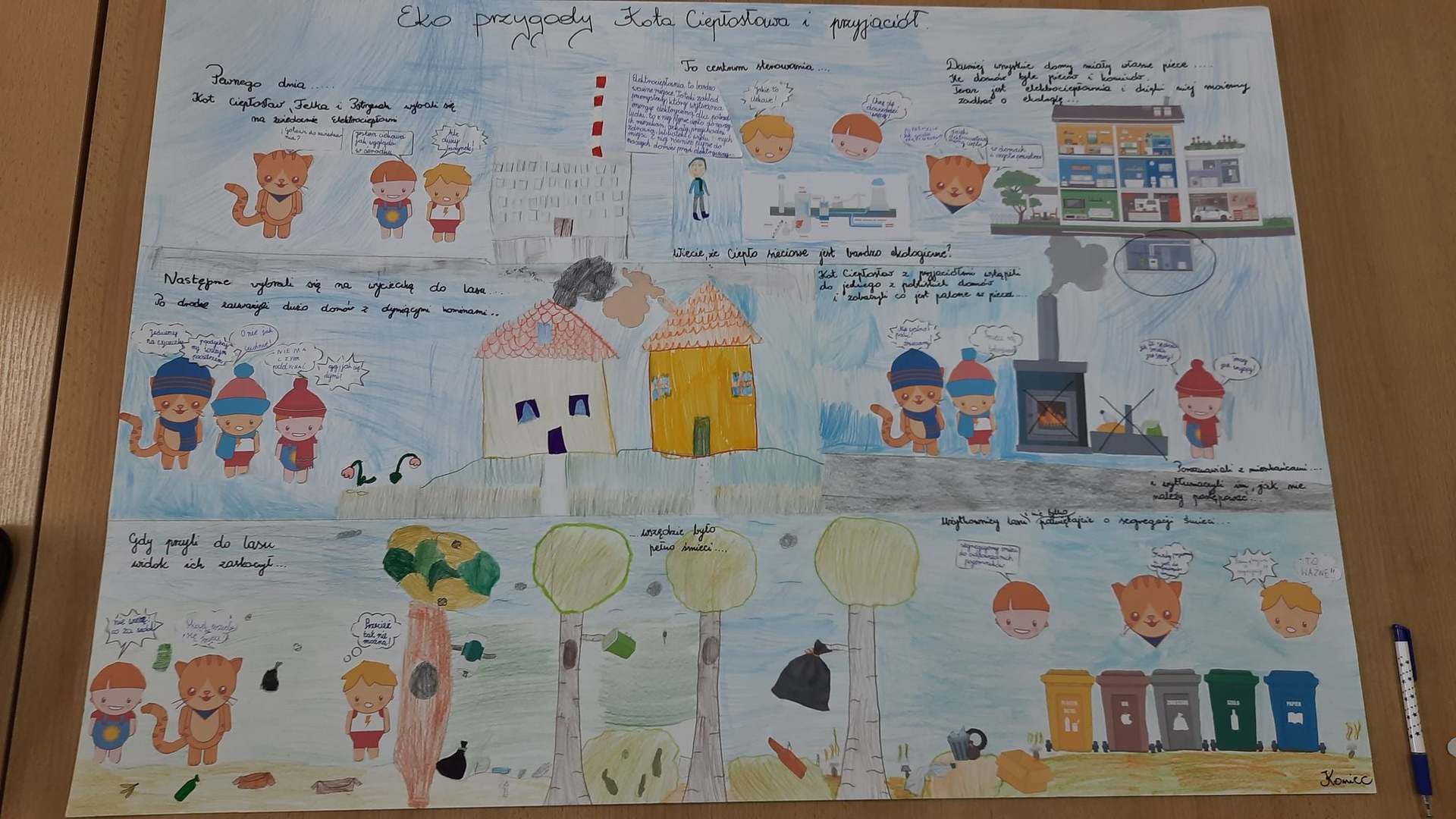Podsumowaniem projektu było wspólne wymyślenie i wykonanie ekologicznego komiksu dotyczącego przygód kota Ciepłosława.