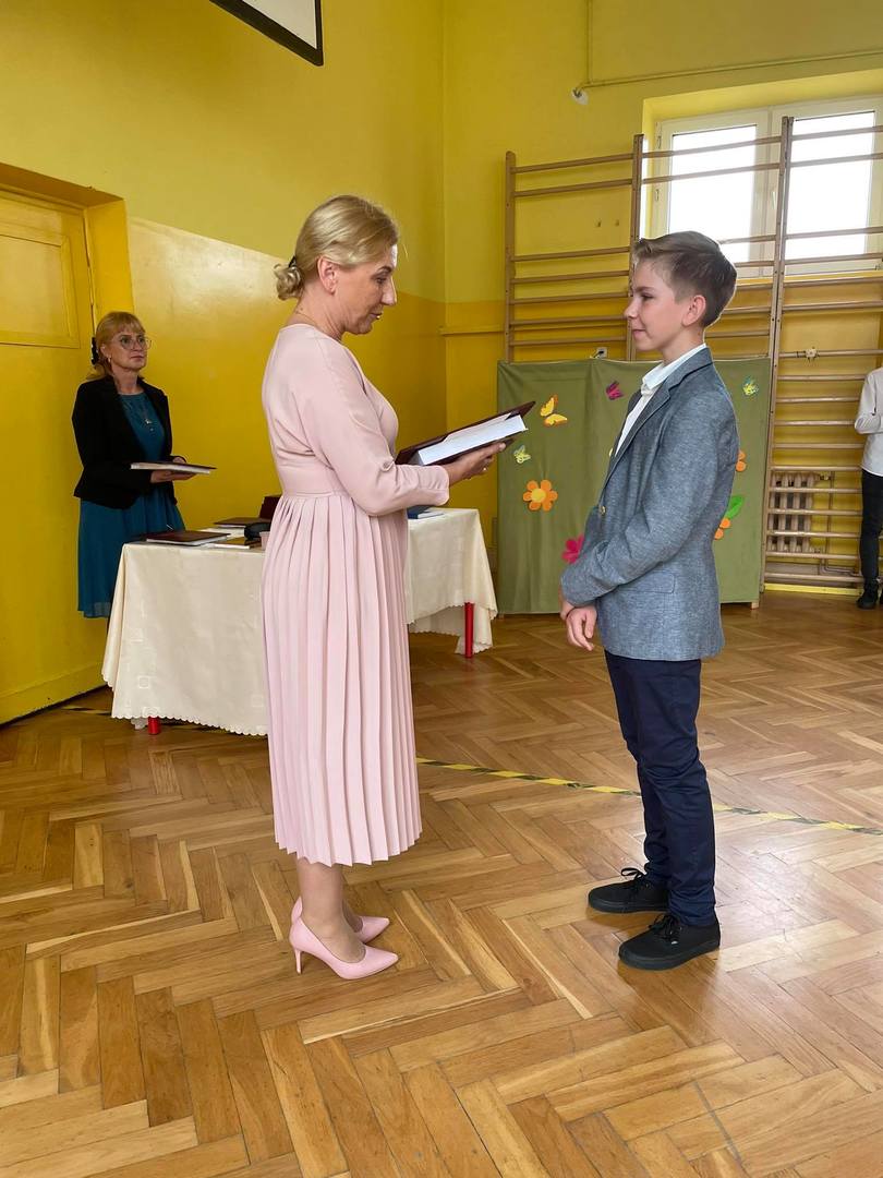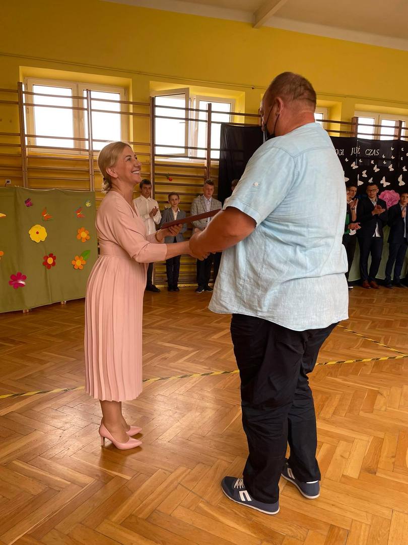 Kochanej Pani Dyrektor dziękujemy za ciepłą atmosferę, w której łatwiej odróżnialiśmy dobro od zła, za zainteresowanie i troskę dzięki, którym omijały nas niebezpieczeństwa,za siłę, która siłę, która pozwoliła nam być godnymi ludźmi, za trud włożony w utrzymanie pod kontrolą naszej szkoły, za lekcje języka polskiego oraz radzenie sobie z ogromną presją jaką był stres związany z egzaminem ósmoklasisty.