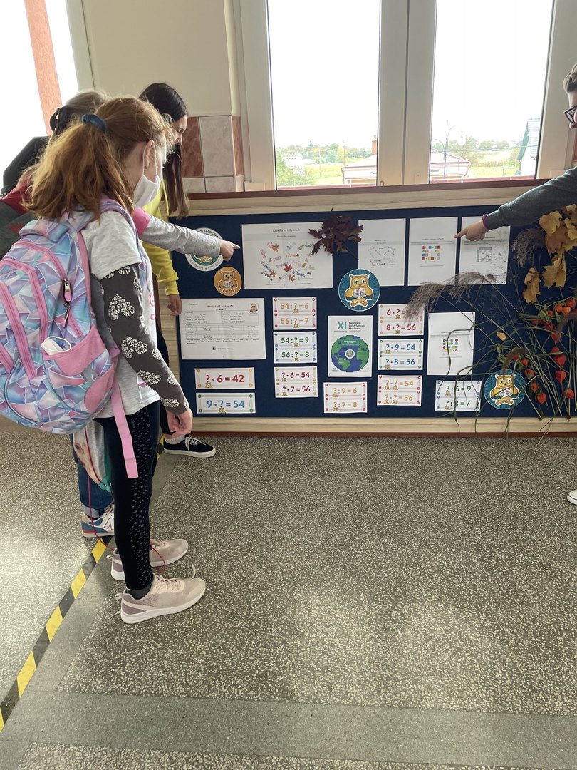 Światowy Dzień Tabliczki Mnożenia odbywa się każdego roku w pierwszy piątek października. XI edycja akcji przypadła na 1 października 2021. Celem akcji było propagowanie zabawowej formy uczenia się matematyki - przypomnienia sobie tabliczki mnożenia w przyjemny, niecodzienny sposób. Akcja była okazją dla uczniów do nadrobienia „tabliczkowych” zaległości po wakacjach. W naszej szkole na gazetkach w holu szkoły przygotowano okolicznościową dekorację z plakatami, przykładami „sprytnego liczenia”, propagującymi znajomość tabliczki mnożenia a 1 października już od rana rozbrzmiewała tabliczka mnożenia. Z szatni, przed lekcjami, starsi uczniowie mogli wyjść po podaniu prawidłowej odpowiedzi na zadania rozwieszone na ścianach. Wchodząc na kolejne piętra mogli przypomnieć sobie wyniki mnożenia dzięki przyklejonym na stopniach działaniom. Na lekcjach wychowania fizycznego też była okazja do sprawdzenia się ze znajomości tabliczki mnożenia w zabawach "Piłkarz matematyk" oraz "Królowa skakanki". W każdej klasie został przeprowadzony egzamin a uczniowie, którzy napisali bezbłędnie, nagrodzeni zostali tytułem Eksperta Tabliczki Mnożenia.