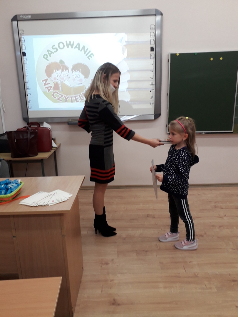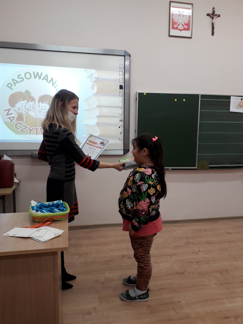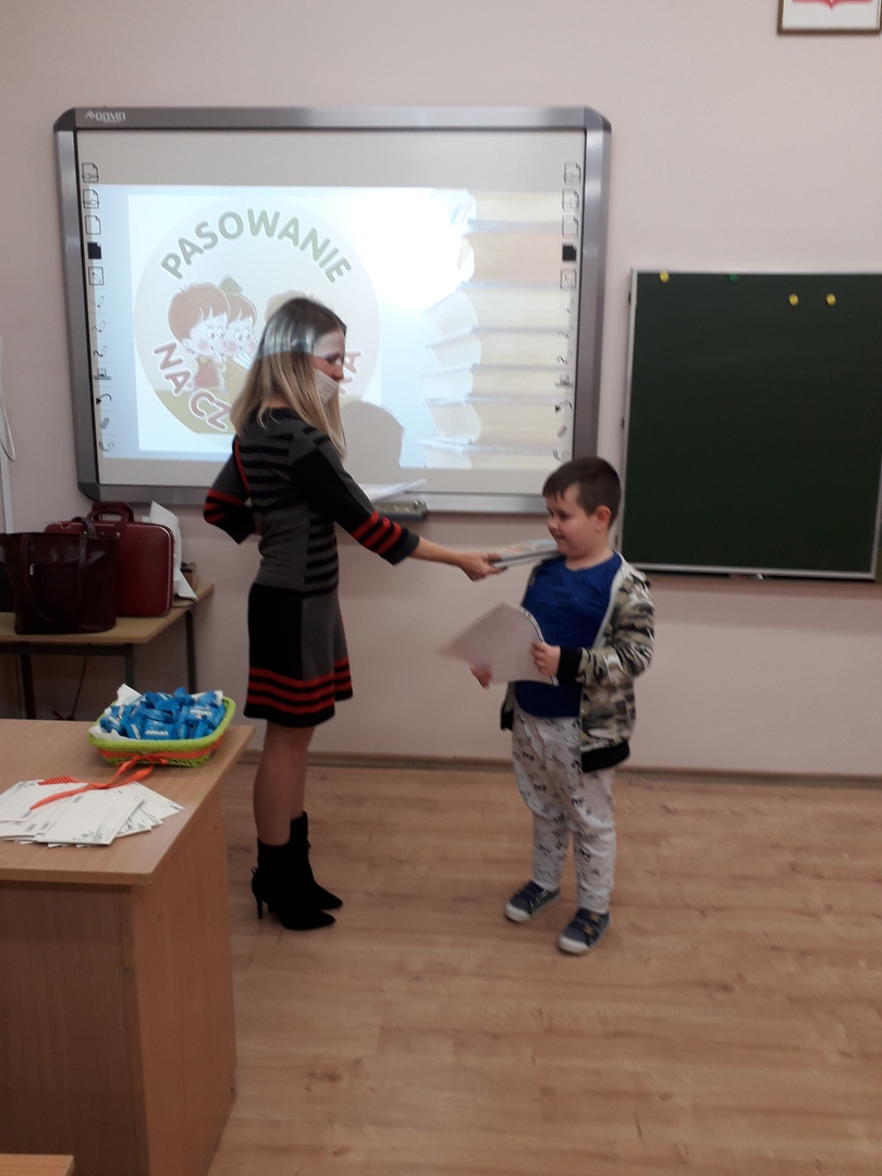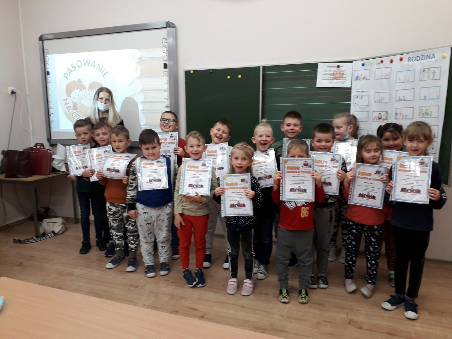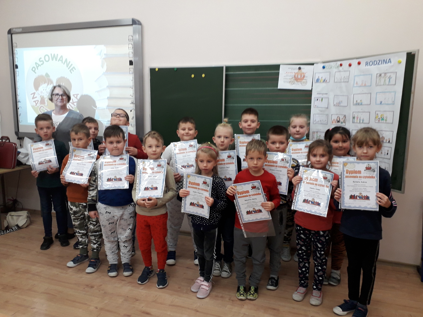 Niedawno pierwszoklasiści wzięli udział w uroczystym pasowaniu na ucznia, nadszedł więc czas, aby - jako pełnoprawni uczniowie - dołączyli do grona czytelników naszej szkolnej biblioteki. Obie grupy uczestniczyły w lekcjach bibliotecznych, które były okazją do poznania regulaminu, cech dobrego czytelnika i obejrzenia księgozbioru. Uczniowie bardzo aktywnie udzielali się na zajęciach, ochoczo odpowiadając na wszystkie pytania. Bez trudu potrafili streścić wysłuchane opowiadanie i wymienić bohaterów, którzy w nim wystąpili. Bezbłędnie wskazywali też korzyści wynikające z czytania oraz zasady postępowania z książkami. Po powtórzeniu wszystkich punktów regulaminu biblioteki przyszła pora na uroczyste ślubowanie i pasowanie na czytelnika. Każdy uczeń otrzymał pamiątkowy dyplom, pocztówkę oraz małe słodkie „co nieco”. Po części teoretycznej dzieci udały się do biblioteki, aby zapoznać się z księgozbiorem, układem książek na półkach oraz żeby wypożyczyć swą pierwszą książkę. Mamy nadzieję, że ten dzień i pierwsza lektura na długo pozostaną w Ich pamięci.