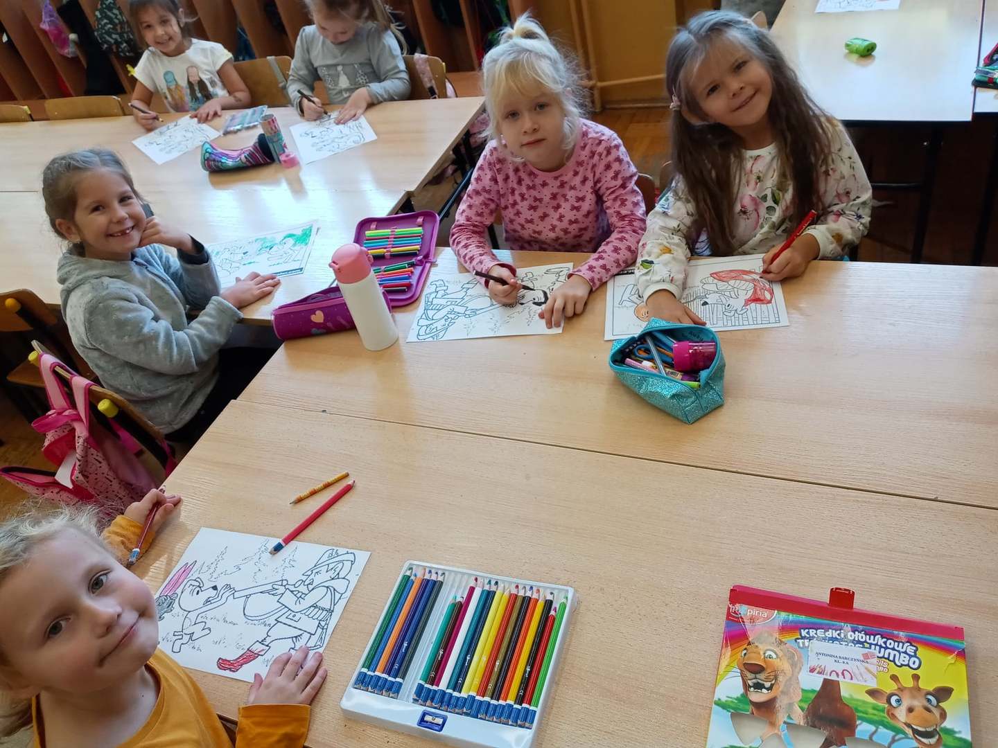 Dzieci z oddziałów przedszkolnych rozpoczęły przygodę z programem ,,Magiczna moc bajek”. Projekt ten zakłada wywiązywanie się z określonych zadań, ale przede wszystkim zachęca najmłodszych do sięgania po bajki, które niosą z sobą mądry i wartościowy przekaz. Już na pierwszym etapie, dzieci chętnie przystąpiły do wykonania wskazanych zadań, a dzięki temu powoli wkraczają w tajemniczy świat bajek, które uczą i bawią.