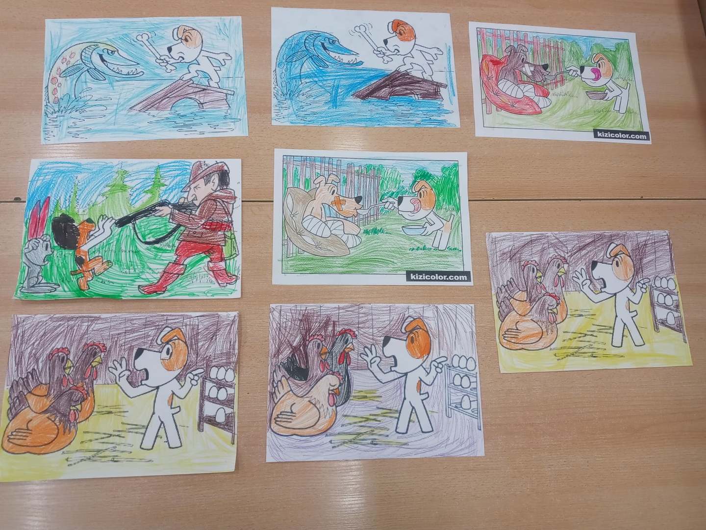 W ramach naszego projektu oglądaliśmy bajki o losach psa Reksia. Razem z nim przeżywaliśmy niezwykłe przygody. Po obejrzeniu kilku historyjek dzieci przygotowały wystawę kolorowanek, która ma przypominać im o wzajemnym szacunku i wartości jaką jest przyjaźń.