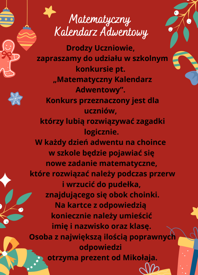 • Szkolny konkurs "Matematyczny Kalendarz Adwentowy"