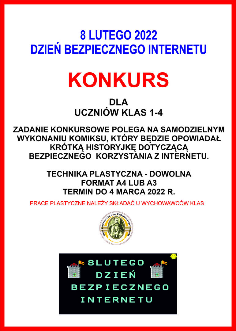 Zachęcamy i zapraszamy uczniów klas I-VIII do udziału w konkursach dotyczących bezpieczeństwa w internecie.