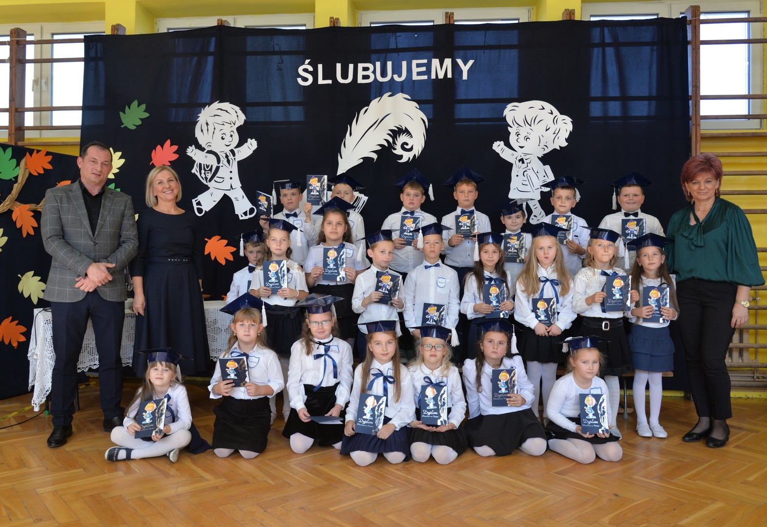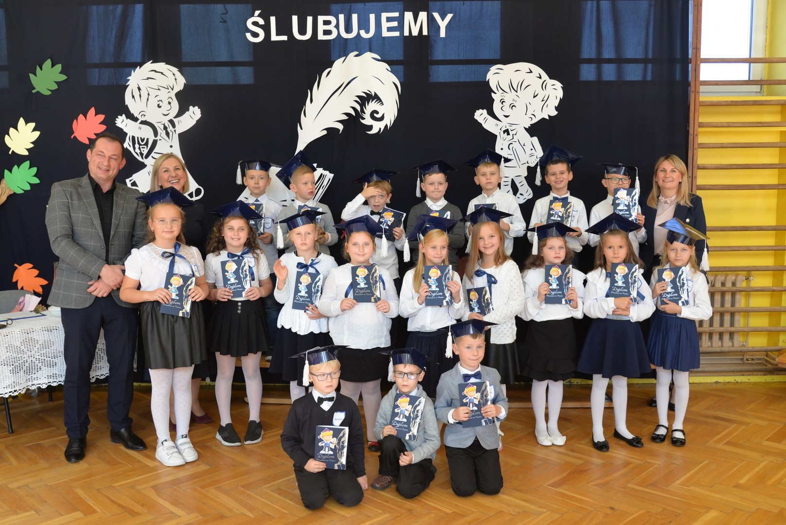 42 dzieci zostało przyjętych w poczet uczniów naszej szkoły. Pani Dyrektor Bożena Szykuła przywitała wszystkich przybyłych na tę wyjątkową uroczystość. Wśród zaproszonych gości był Wójt Gminy Wiązownica Pan Krzysztof Strent, Sekretarz Gminy Pani Anna Wilk oraz rodzice pierwszoklasistów. Po złożeniu ślubowania Pani Dyrektordokonała aktu pasowania. Następnie życzyła pierwszoklasistom powodzenia, sukcesów i wiele radości z przebywania w społeczności szkoły.