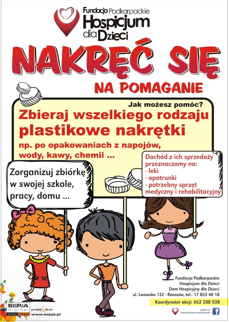 Nasza szkoła przyłączyła się do akcji „Nakręć się na pomaganie” zorganizowanej przez Fundację Podkarpackie Hospicjum dla Dzieci w Rzeszowie.