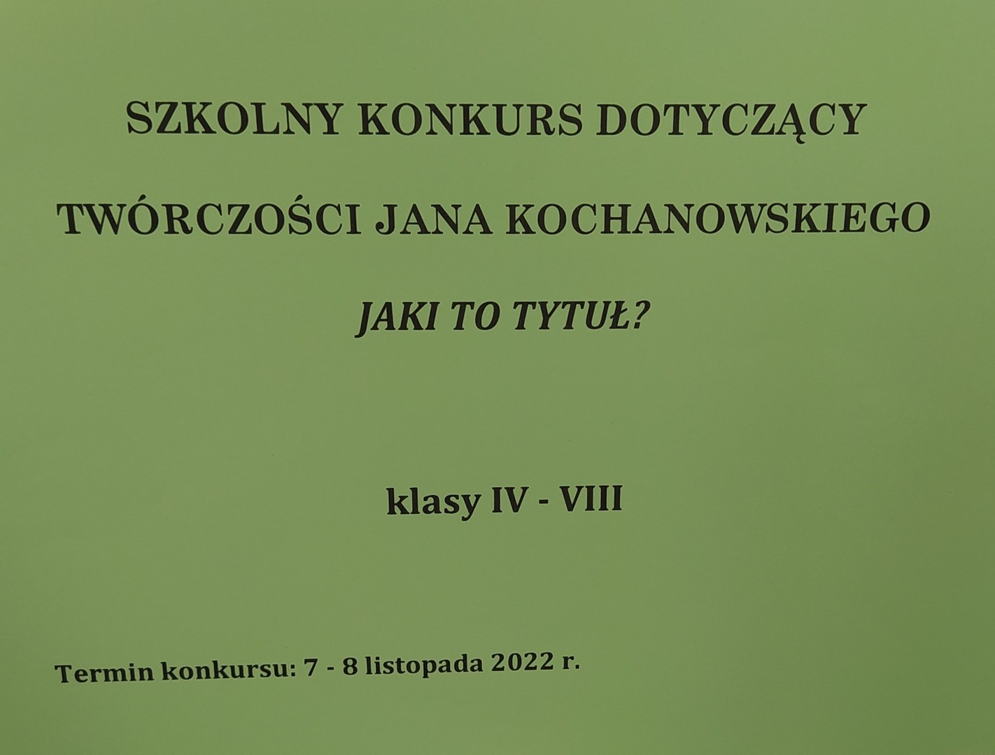 REGULAMIN SZKOLNEGO KONKURSU DOTYCZĄCEGO TWÓRCZOŚCI JANA KOCHANOWSKIEGO JAKI TO TYTUŁ?