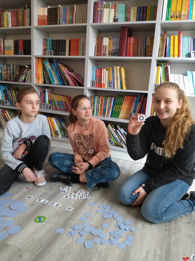 W ramach aktywności podjętych podczas Tygodnia Języka Ojczystego zapraszamy do biblioteki, gdzie czekają przygotowane na tę okazję gry językowe. Kolejny raz udowadniamy, że da się łączyć przyjemne z pożytecznym. Zawsze można znaleźć sposób, by uczyć się poprzez zabawę. Pierwsze rozgrywki już za nami – Dagmarze, Kasi i Weronice poszło wyśmienicie – zapowiadają nawet dogrywkę po zajęciach, wszak nie taki język straszny jak go malują! Ze wspomnianych gier edukacyjnych można skorzystać w tym tygodniu na długich przerwach oraz po lekcjach. Zapraszamy!