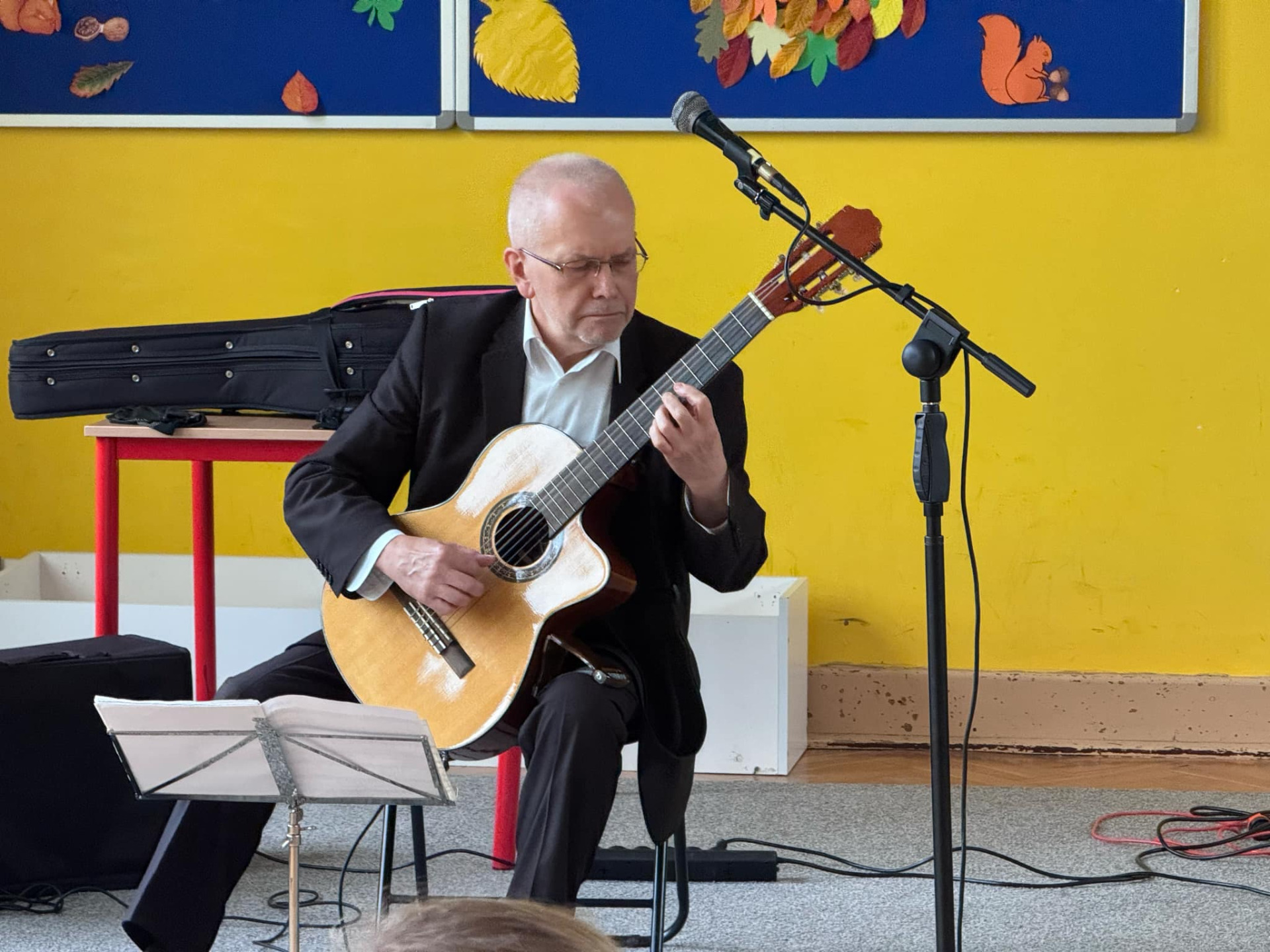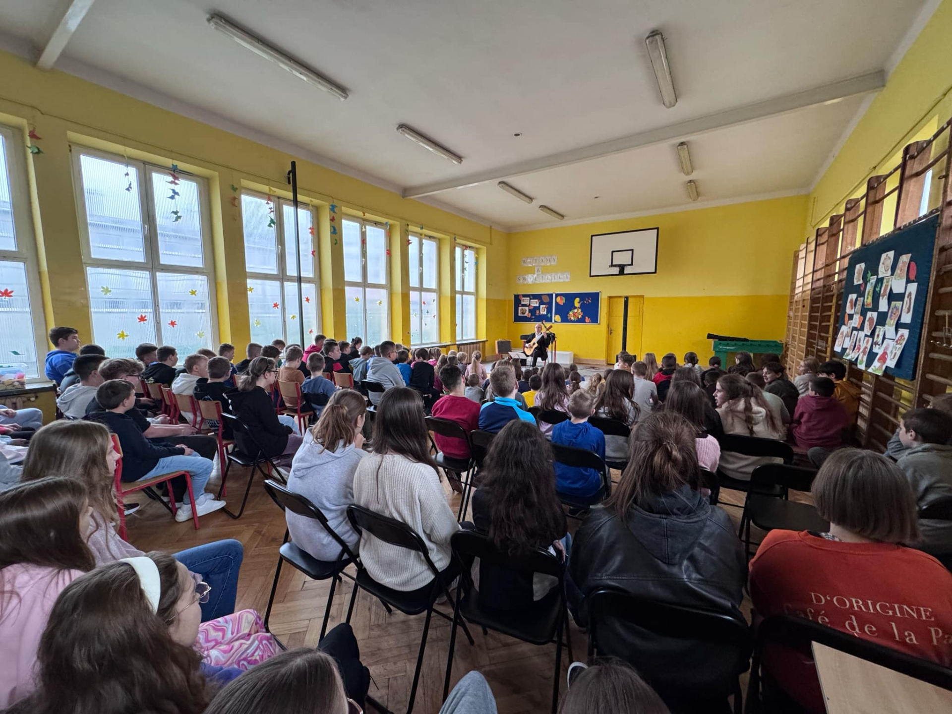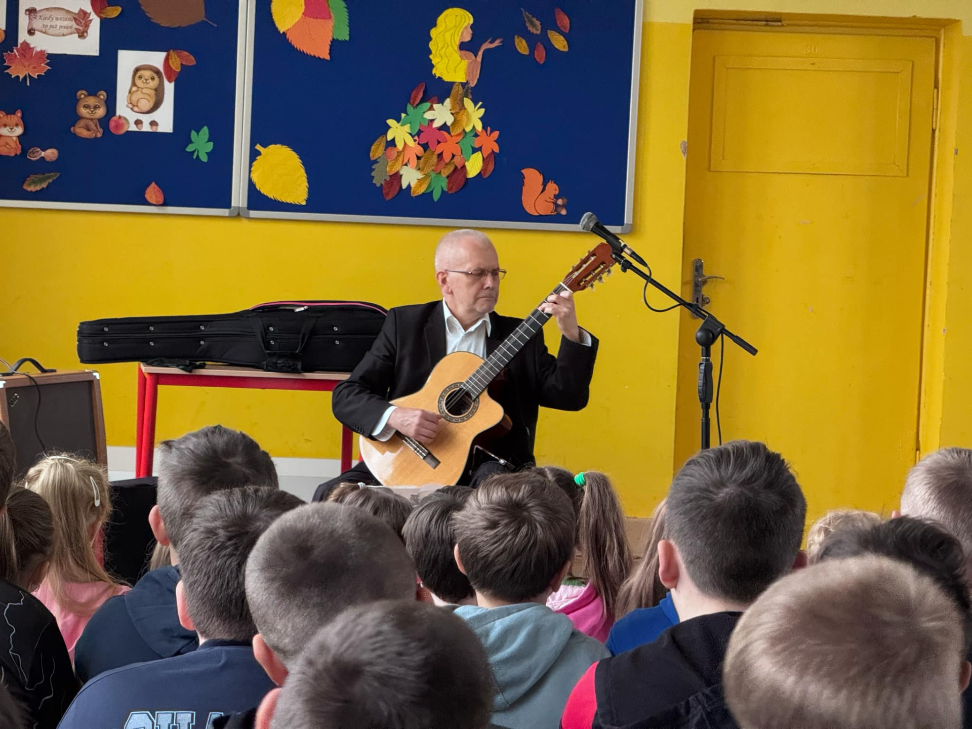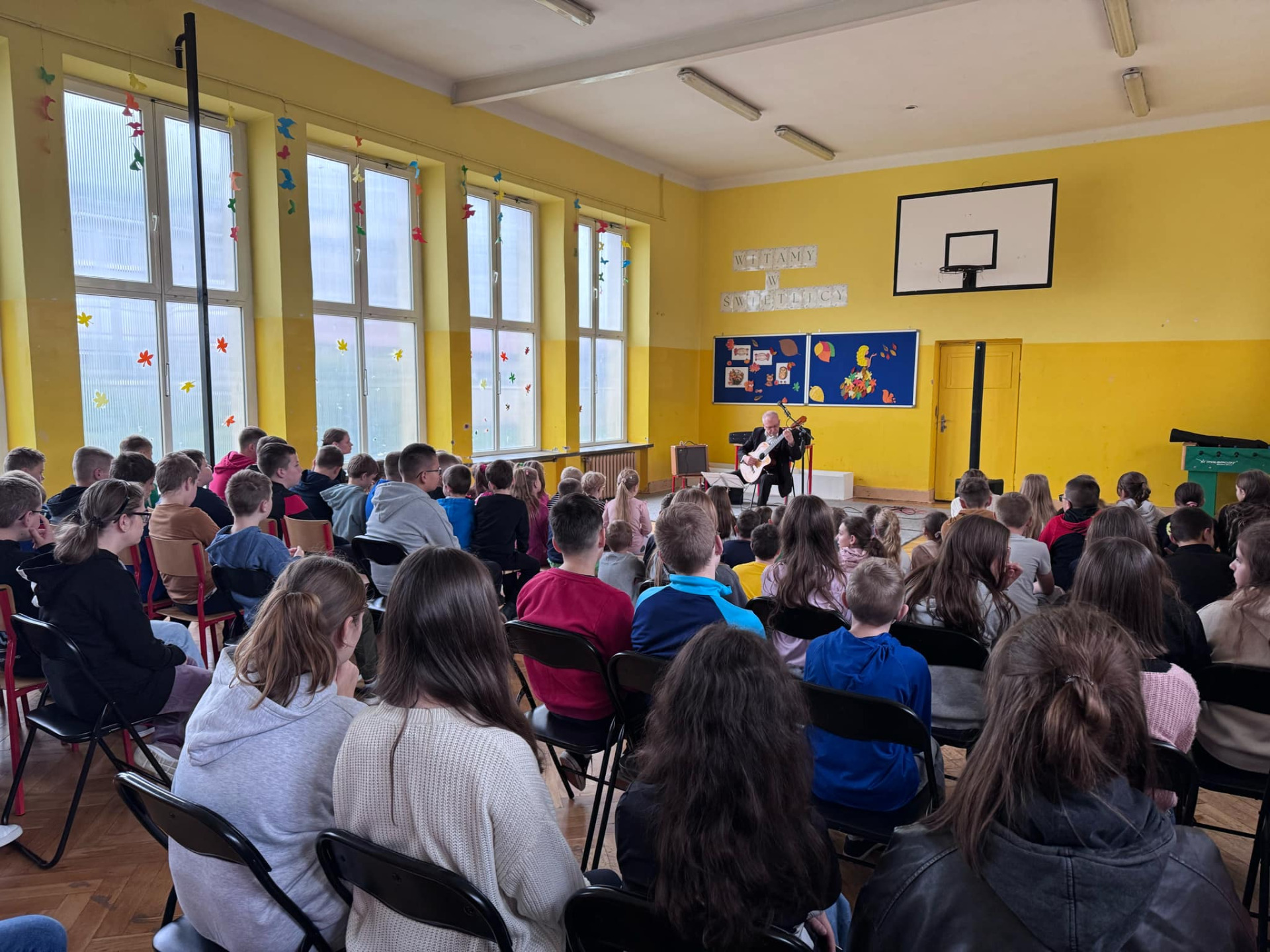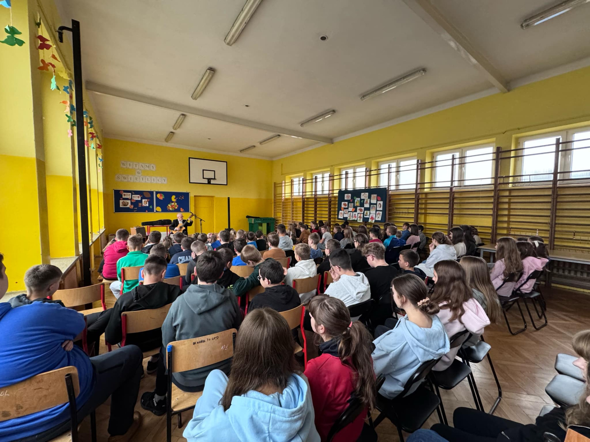 We wtorek 29 listopada naszą szkołę odwiedził gitarzysta pan Jacek Albin Ostrowski, który od ponad 40 lat zajmuje się grą na gitarze, w tym czasie zagrał on ponad 10 tysięcy koncertów. Swój występ zatytułował - „Gitara wczoraj i dziś”. Pan Jacek zaprezentował doskonałą technikę gry, którą można osiągnąć wytrwałością i ciężką pracą. Publiczność zapoznała się z bogatym repertuarem przedstawionym przez artystę, słuchaliśmy m. in. hiszpańskich miniatur, aranżacji na gitarę utworów Fryderyka Chopina, współczesnej piosenki zespołu Lady Pank itp. Dowiedzieliśmy się, że Hiszpania uznawana jest za ojczyznę gitary i poznaliśmy historię tego instrumentu od czasów starożytnych do obecnych. Udział w koncercie z muzyką na żywo był dla uczniów niezwykle ciekawym doświadczeniem.