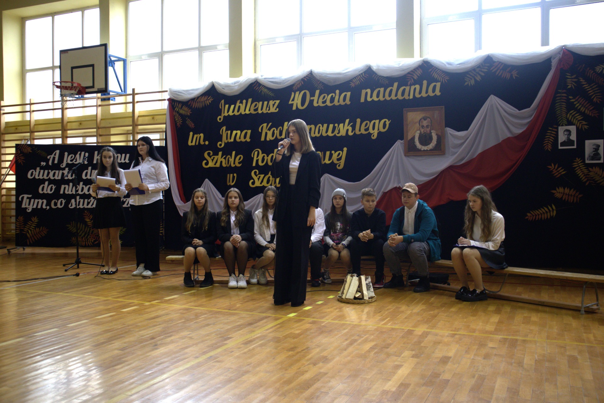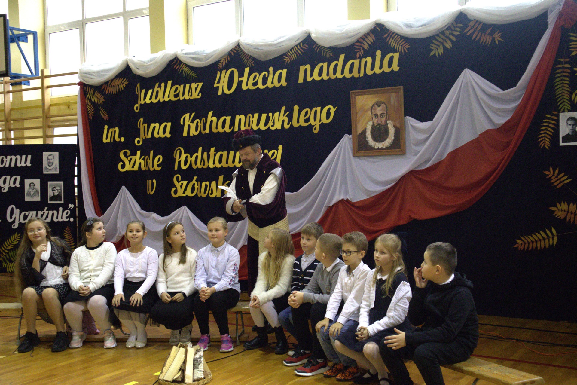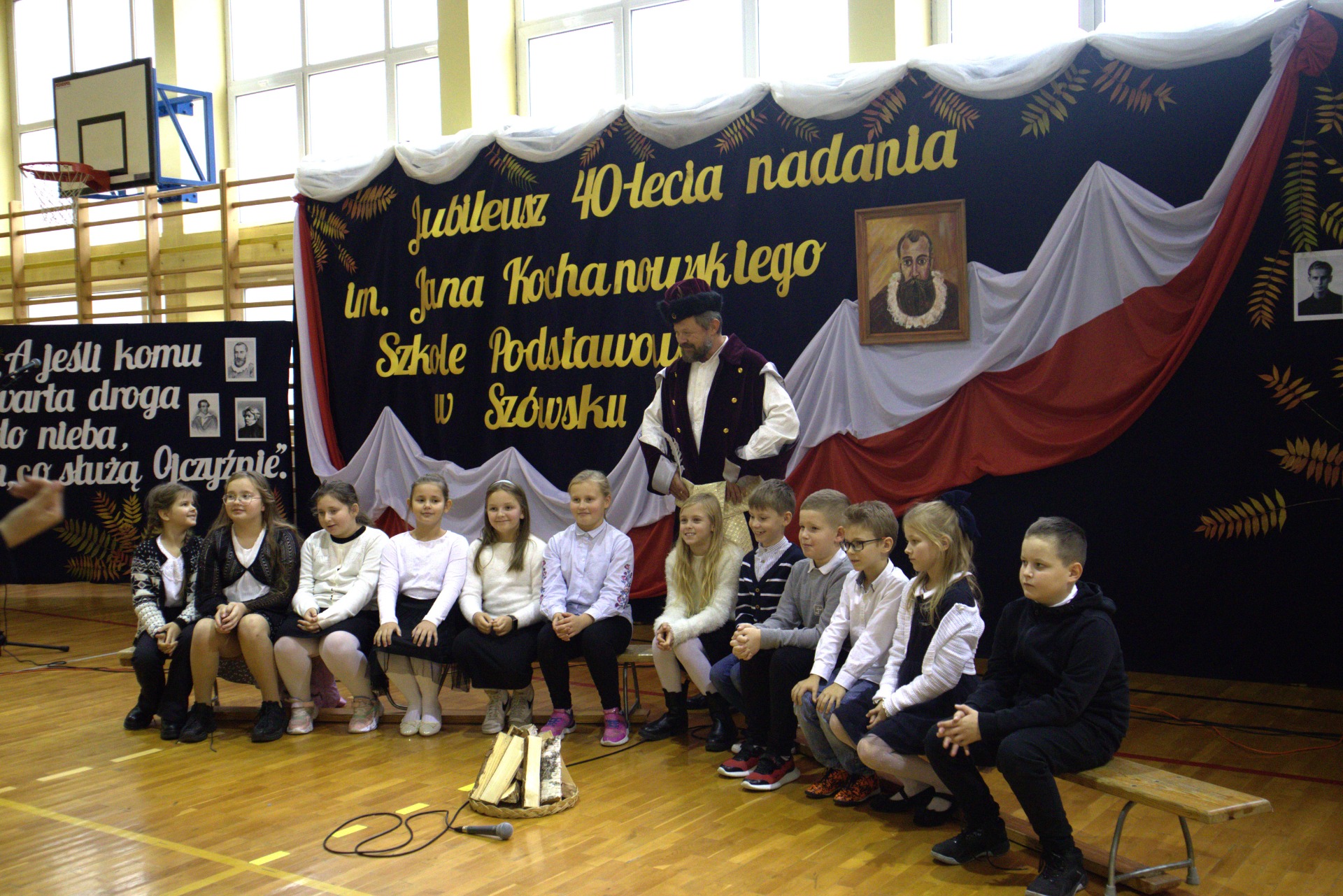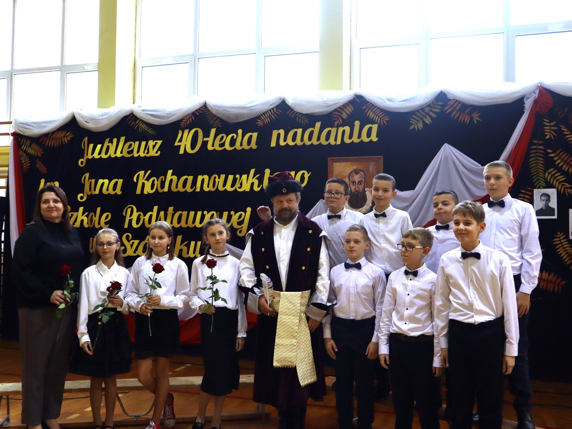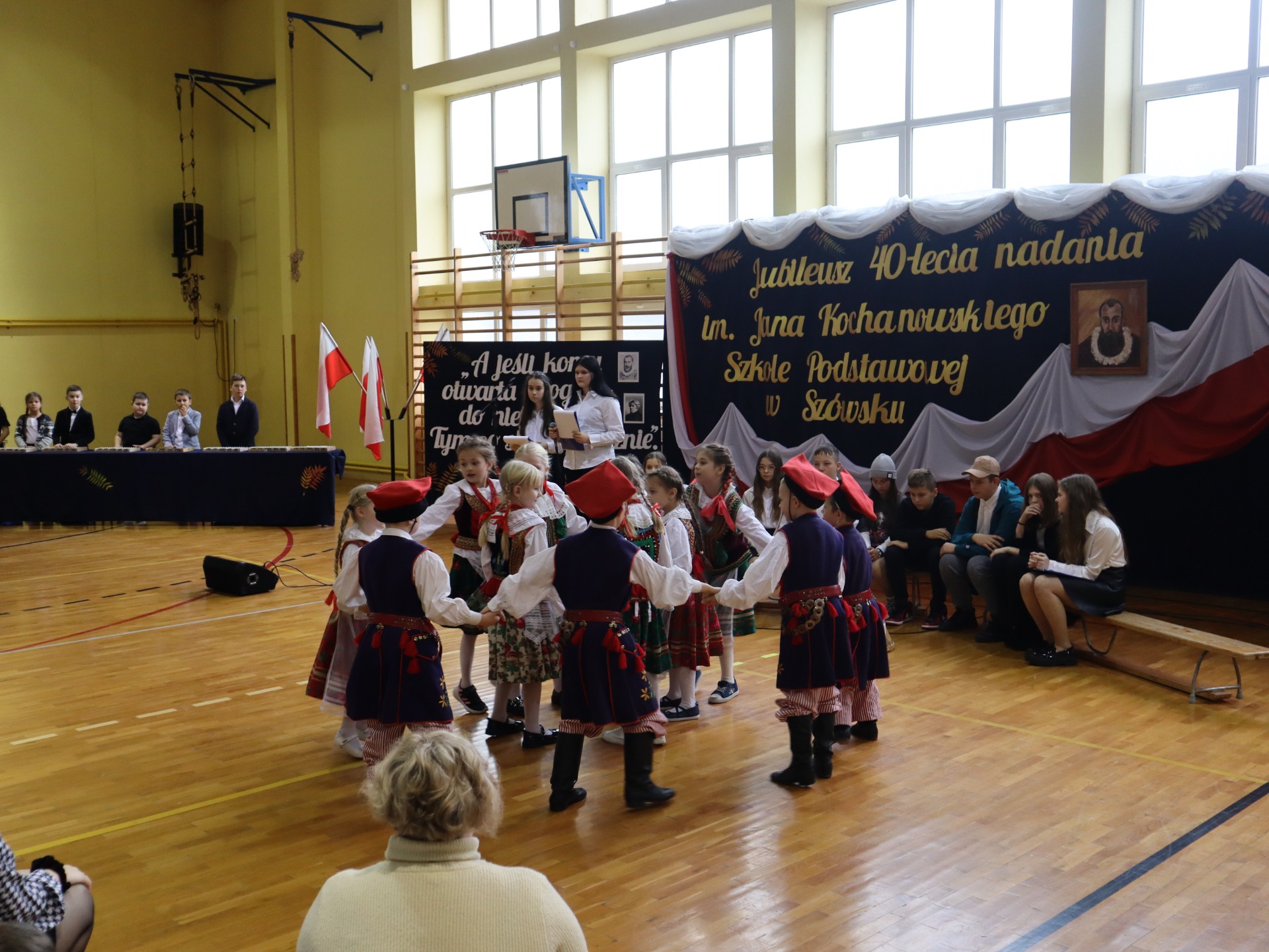 W dniu 15.11.2024r. miała miejsce uroczystość 40-lecia nadania Szkole Podstawowej w Szówsku imienia Jana Kochanowskiego. Uroczystość rozpoczęła się mszą św w intencji całej społeczności szkolnej. Oprócz uczniów, pracowników i zaproszonych gości wzięły w niej udział wszystkie Poczty Sztandarowe z terenu Gminy Wiązownica. Po mszy św. przed wejściem do budynku szkoły, dla uczczenia jubileuszu nastąpiło uroczyste zasadzenie lipy – drzewa, które ma symboliczne znaczenie w twórczości patrona naszej szkoły, a także wkopanie pamiątkowej kapsuły z przesłaniem społeczności szkolnej. Po tej części nastąpiła uroczysta akademia z przemówieniami dyrekcji szkoły i zaproszonych gości oraz występami dzieci.