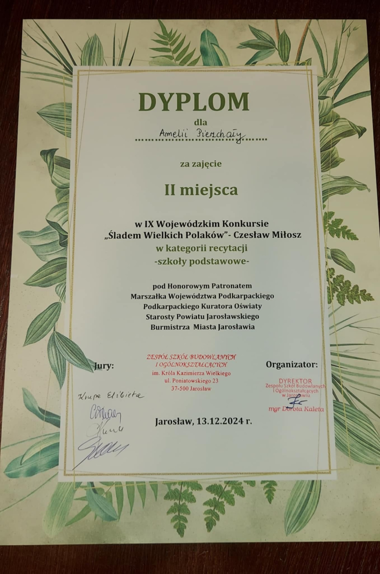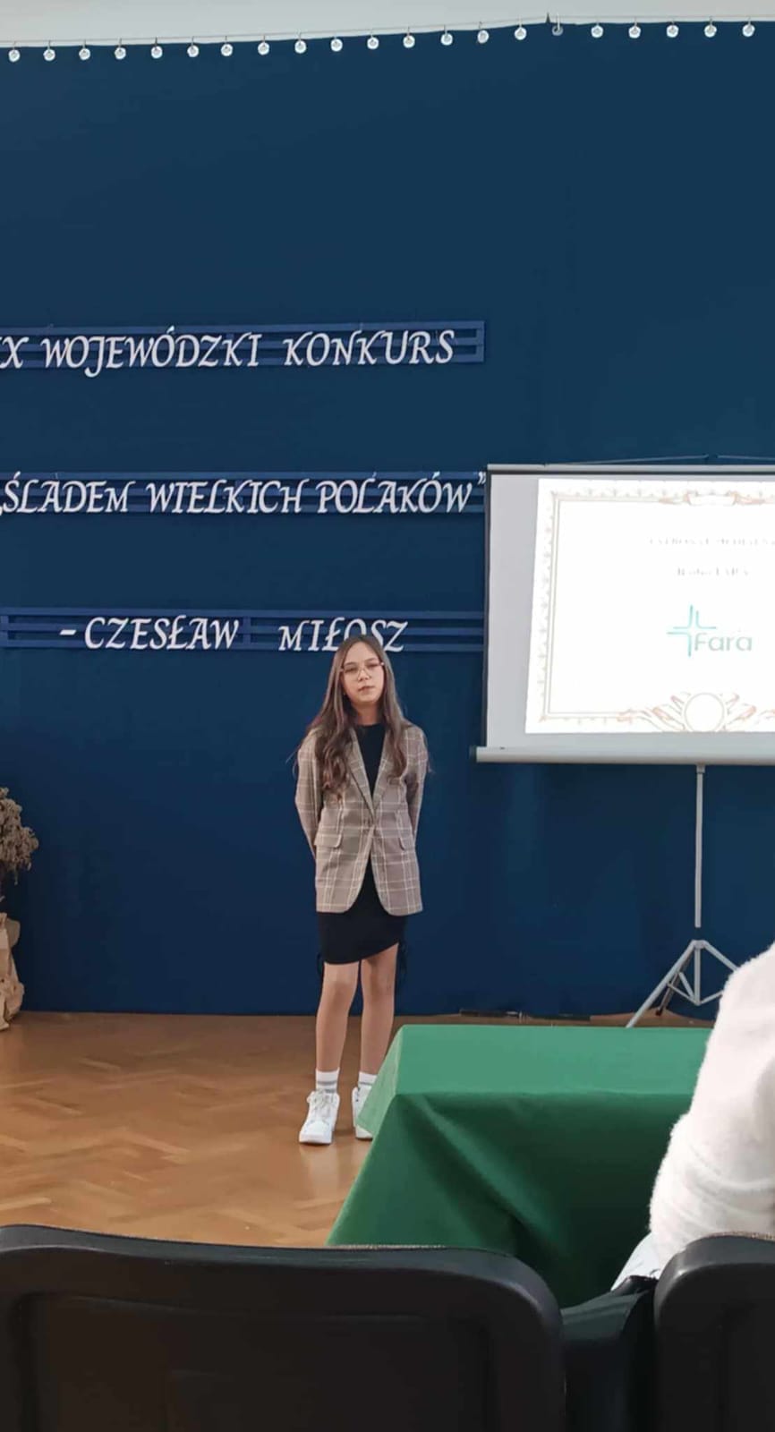 W pięknym stylu, zdobywając tytuł laureata Amelia Pierzchała z klasy 6a zajęła II miejsce, natomiast Lena Pękala z klasy 6a, Klaudia Broda z klasy 8a oraz Jakub Strent z klasy 6b wrócili z wyróżnieniami.