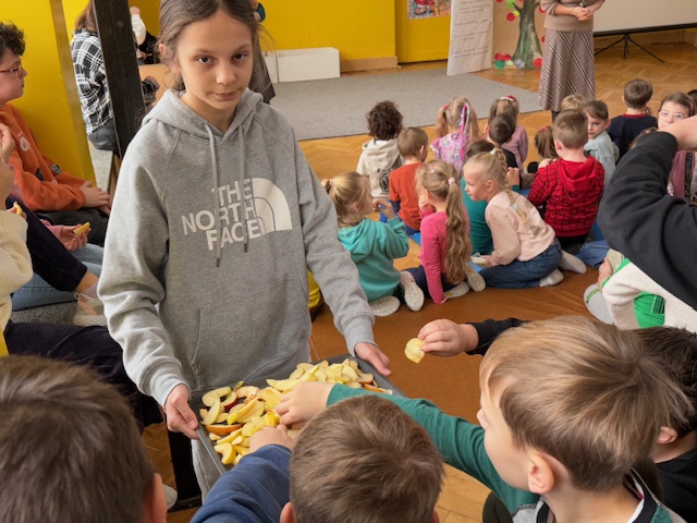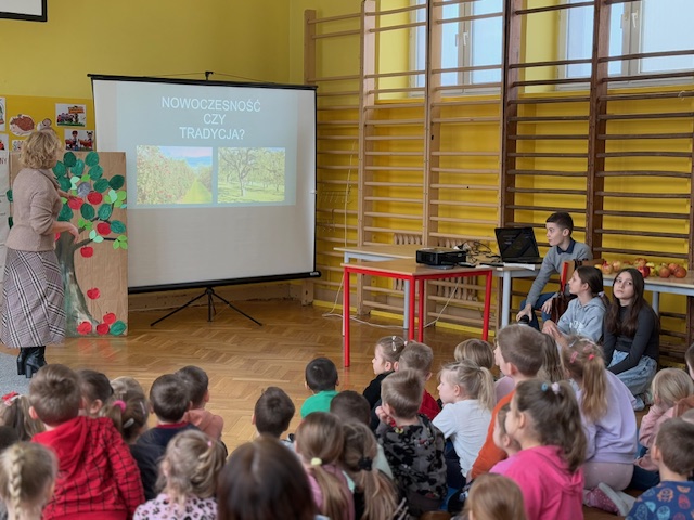 13.01.2025r. na szkolnym apelu uczniowie młodszych klas zapoznali się z ideą konkursu „TRADYCYJNY SAD”, do którego przystąpiła nasza szkoła. W konkursie bierze udział DRUŻYNA RENETY złożona z uczniów klasy Va, która opowiedziała o planie stworzenia minisadu składającego się z drzew owocowych tradycyjnych odmian. Uczestnicy spotkania mieli okazję poznać zalety tradycyjnego sadu i jego wpływ na zachowanie bogatej różnorodności biologicznej w jego otoczeniu.