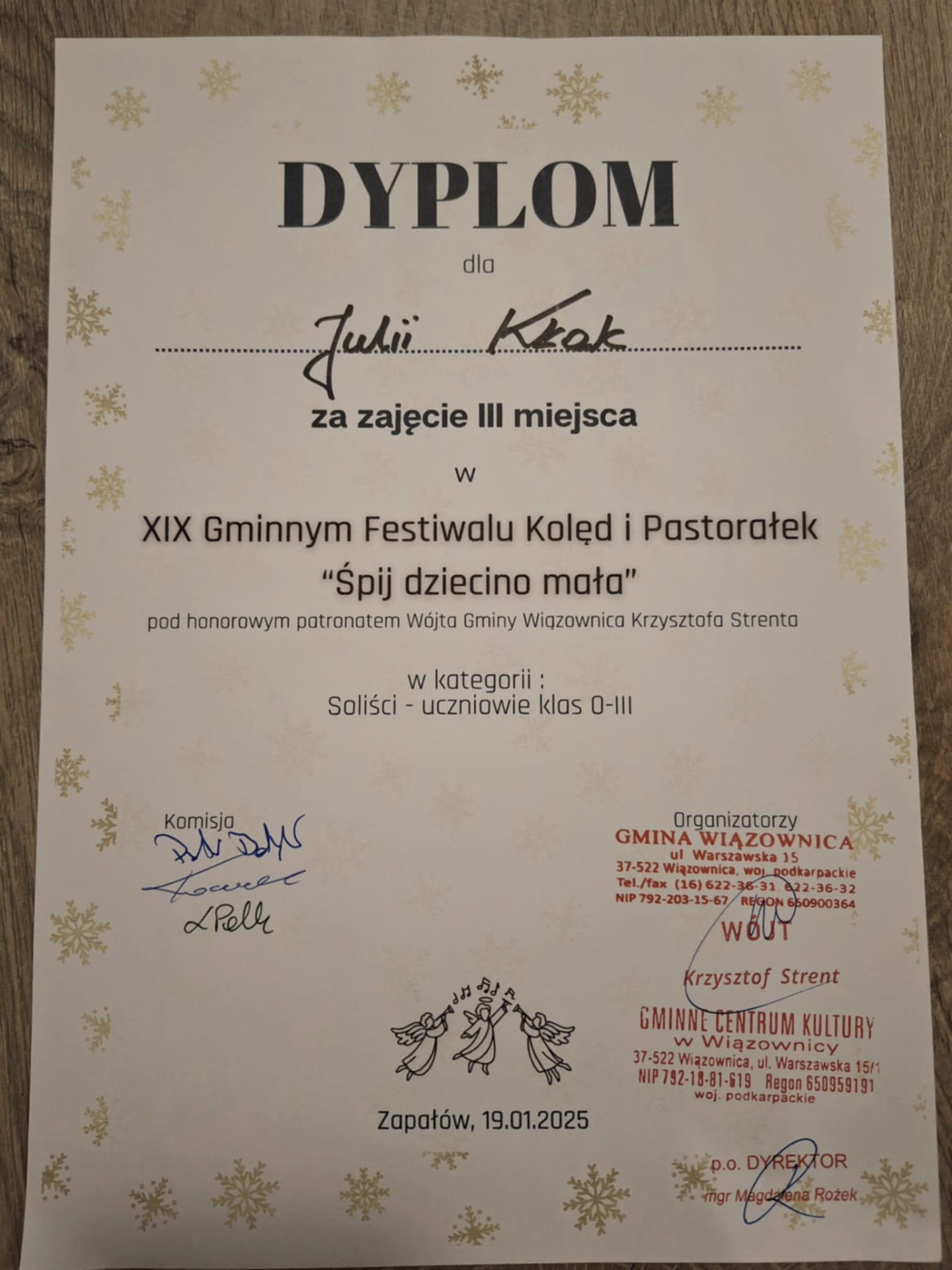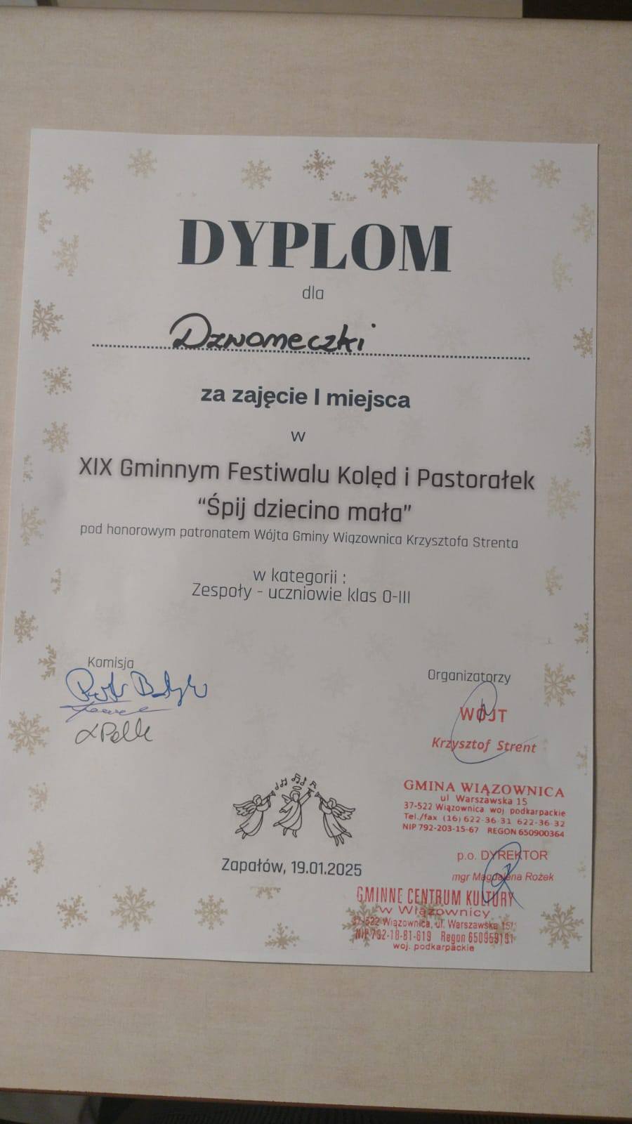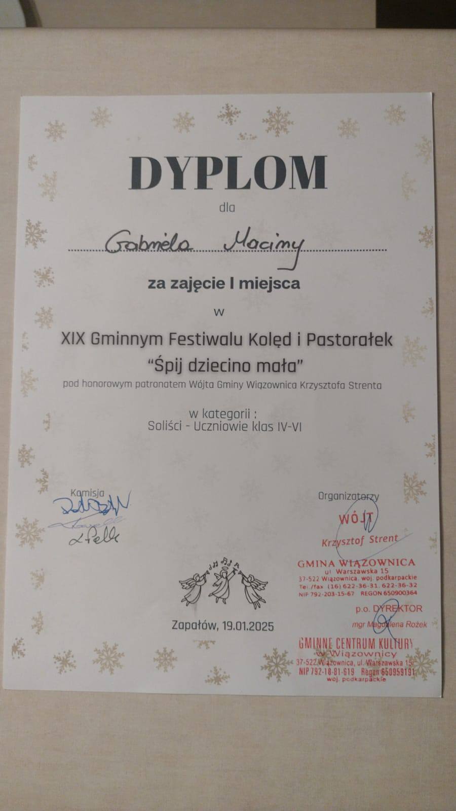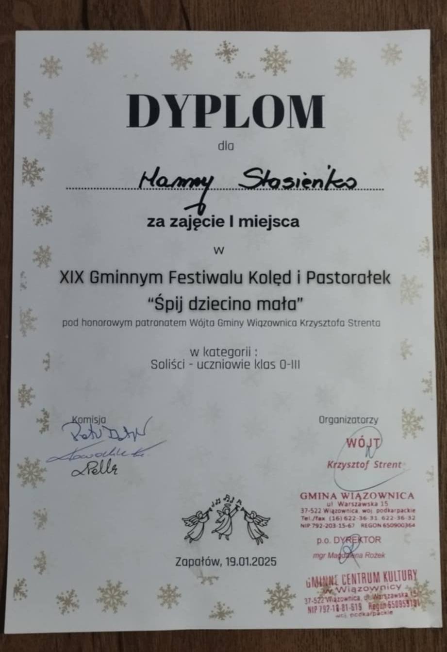 W dniu dzisiejszym brali udział w XIX Gminnym Festiwalu Kolęd i Pastorałek "Śpij dziecino mała", pod honorowym patronatem Wójta Gminy Wiązownica Krzysztofa Strenta. Festiwal odbył się w Domu Kultury w Zapałowie.