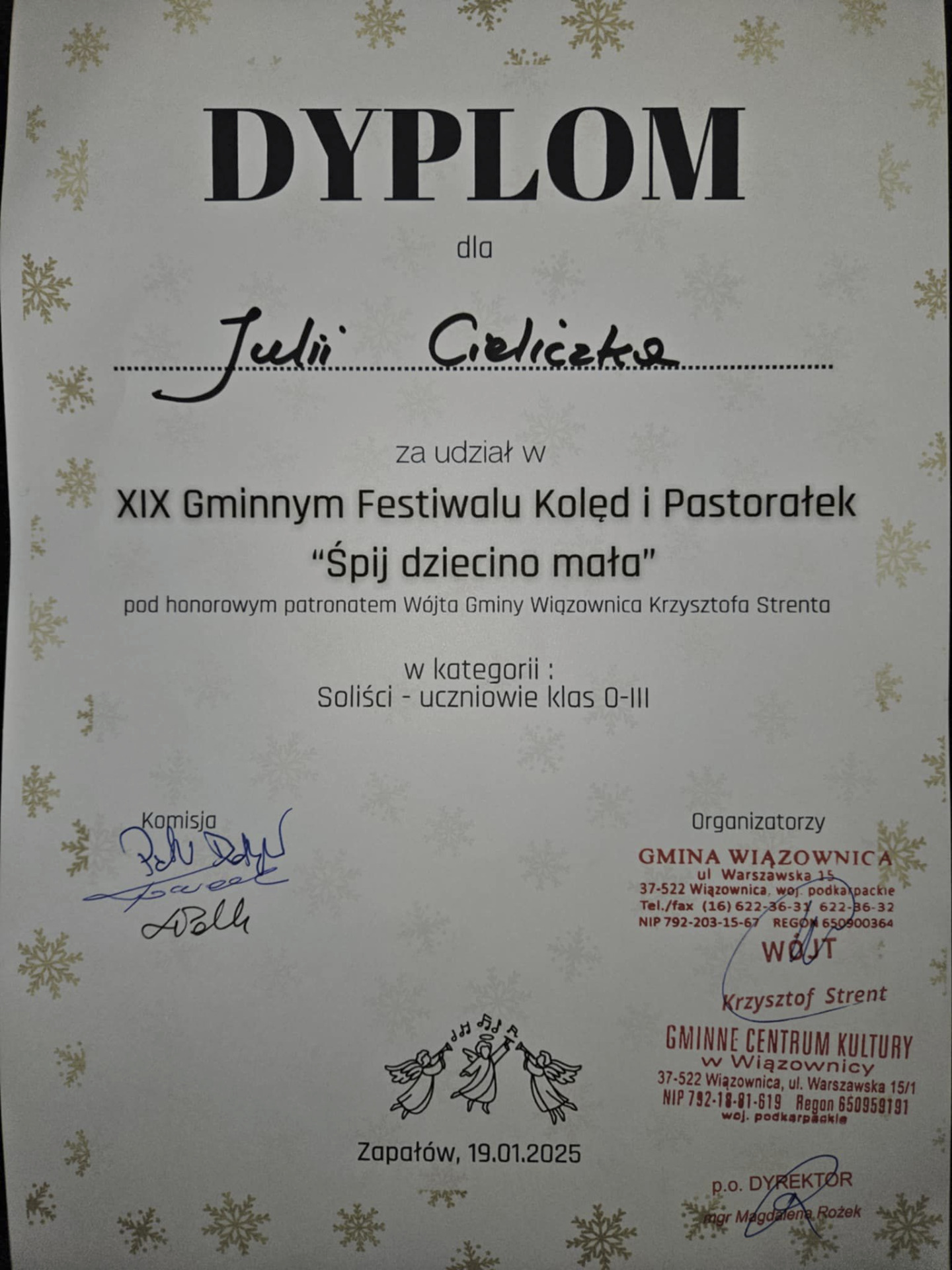 Dyplom za udział otrzymała Julia Cieliczka