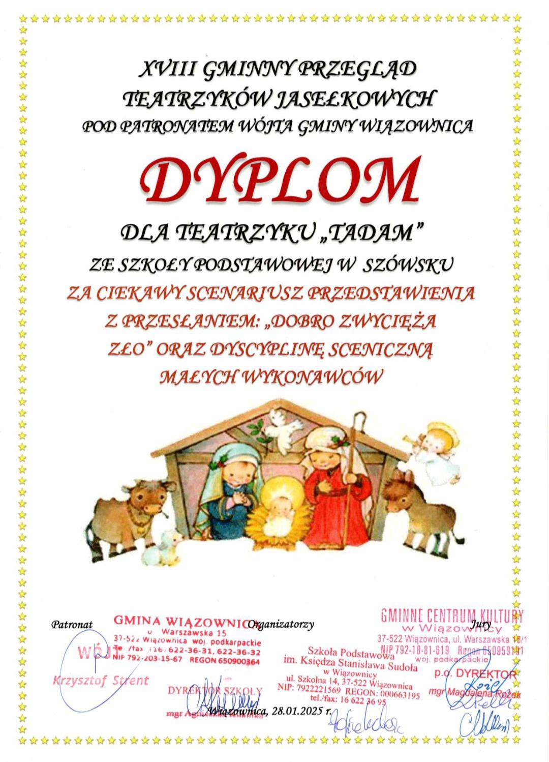 W dniu 28 stycznia Uczniowie naszej szkoły, czyli grupa teatralna TADAM, uczestniczyli w XVIII Gminnym Przeglądzie Teatrzyków Jasełkowych pod patronatem Wójta gminy Wiązownica.