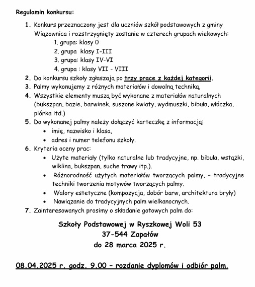 • IX GMINNY KONKURS NA NAJPIĘKNIEJSZĄ PALMĘ WIELKANOCNĄ