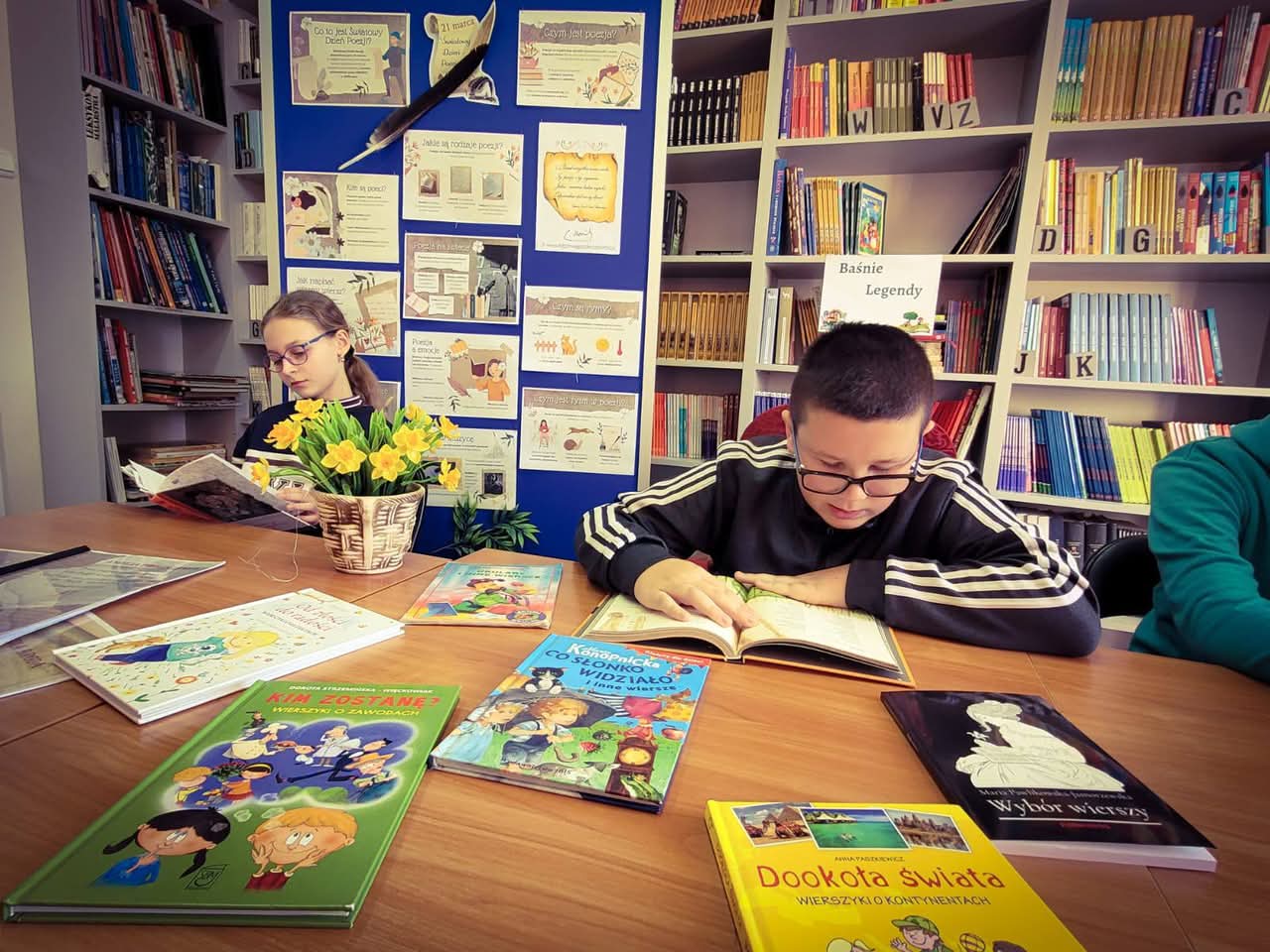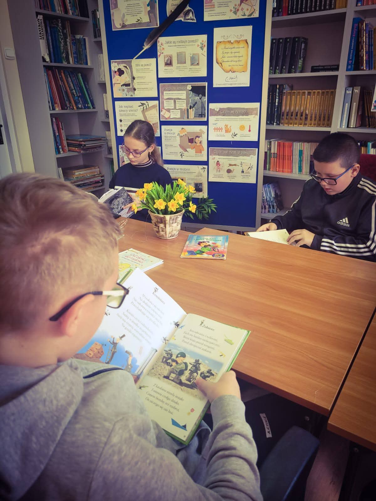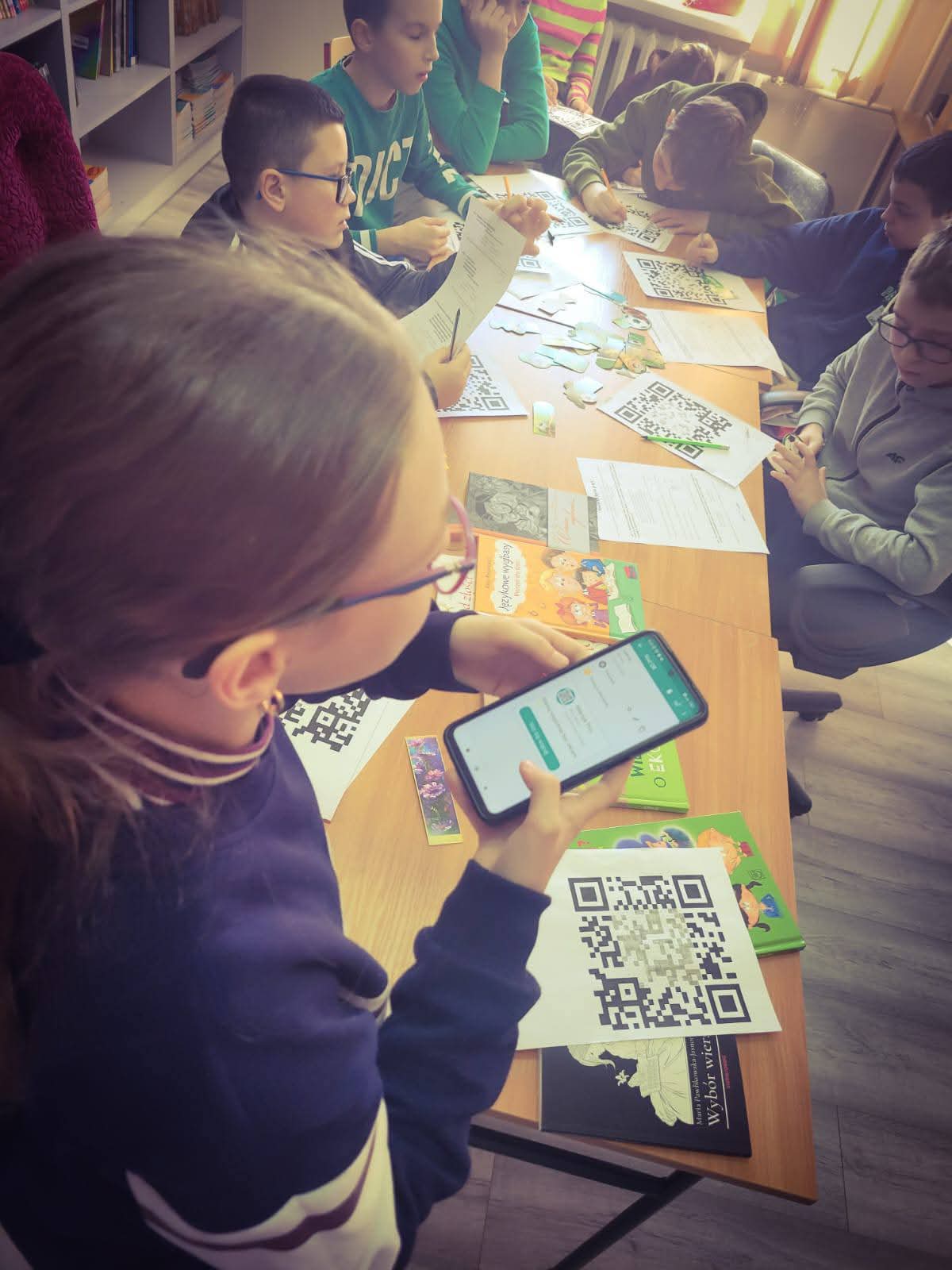 Dziś w bibliotece szkolnej uczniowie klasy 5c świętowali Światowy Dzień Poezji w wyjątkowy sposób! 📚🎭 Najpierw z zaangażowaniem czytali wybrane wiersze, a następnie mierzyli się z ciekawymi zadaniami dotyczącymi jednego z nich. Aby sprawdzić swoje odpowiedzi, skanowali tajemnicze kody QR, które prowadziły ich do rozwiązania! 🔍📲