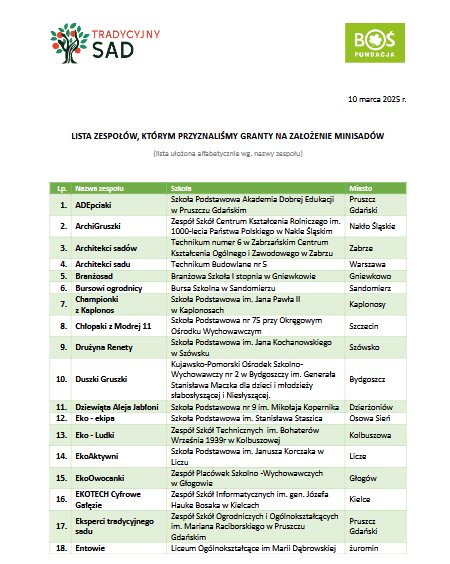 Projekt - "Tradycyjny Sad" - otrzymanie grantu.