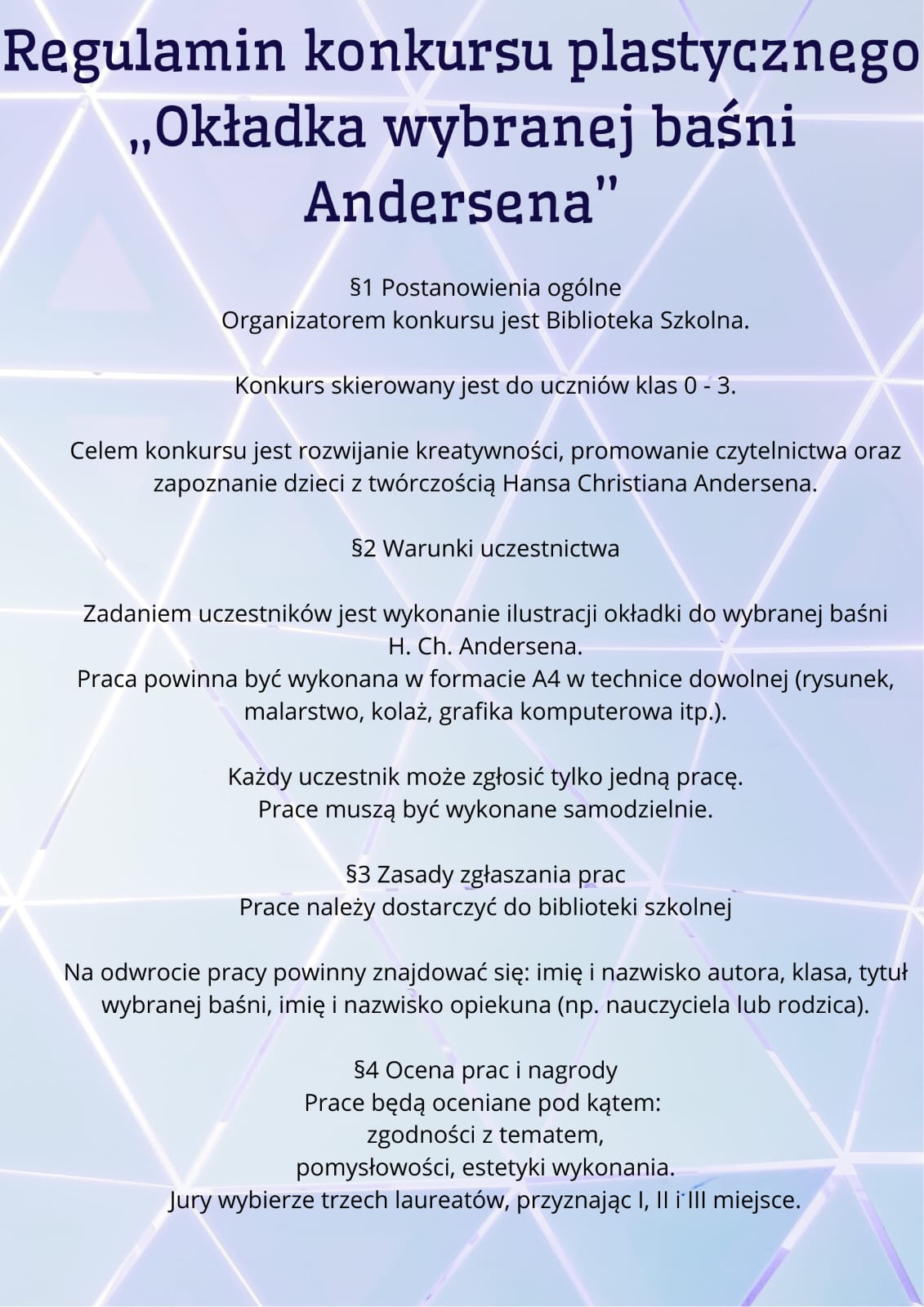 Okładka wybranej baśni H. CH. Andersena - konkurs dla uczniów klas 0-3