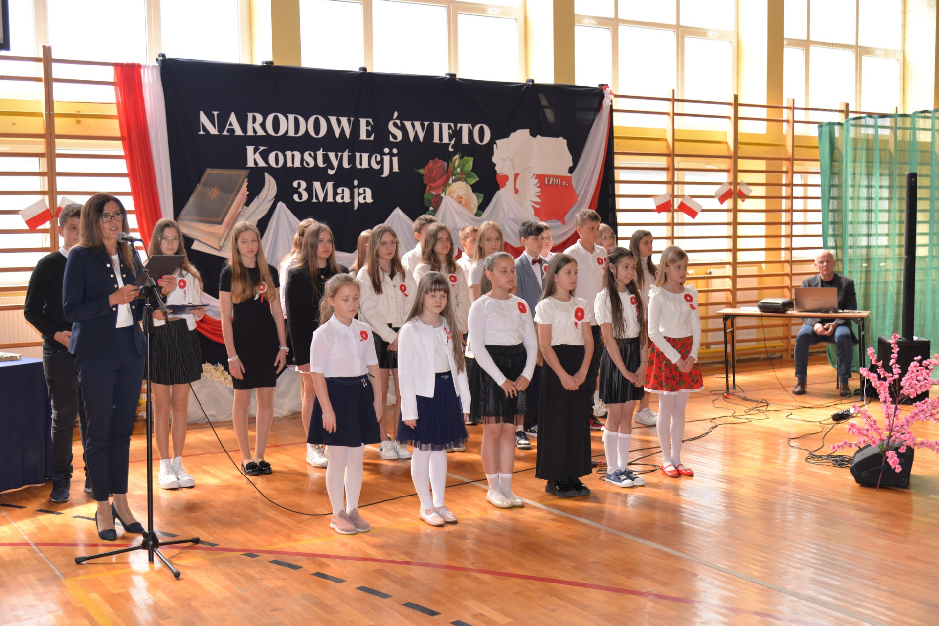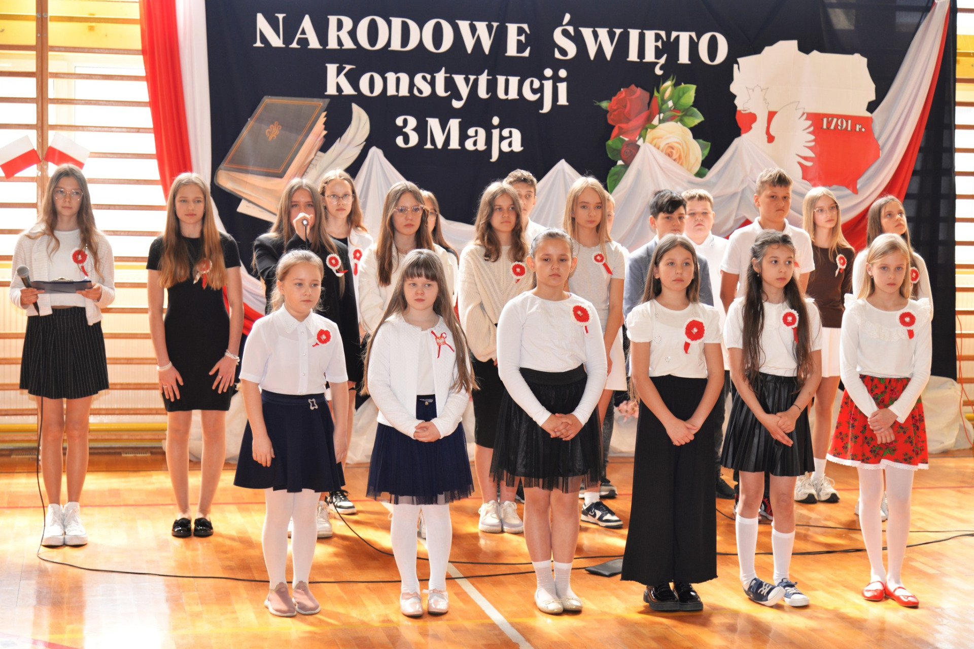 W dniu dzisiejszym (30 kwietnia 2025 r.) w naszej szkole odbyła uroczysta akademia z okazji Święta Konstytucji 3 Maja.