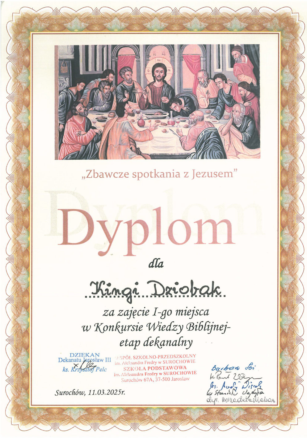 W dniu 13 maja 2025 r. w Seminarium Duchownym w Przemyślu odbył się Finał Konkursu Biblijnego pod hasłem „Zbawcze spotkanie z Jezusem”. Uczestniczyło w nim 129 uczniów z 43 dekanatów naszej Archidiecezji. Dekanat Jarosław III reprezentowała uczennica naszej szkoły