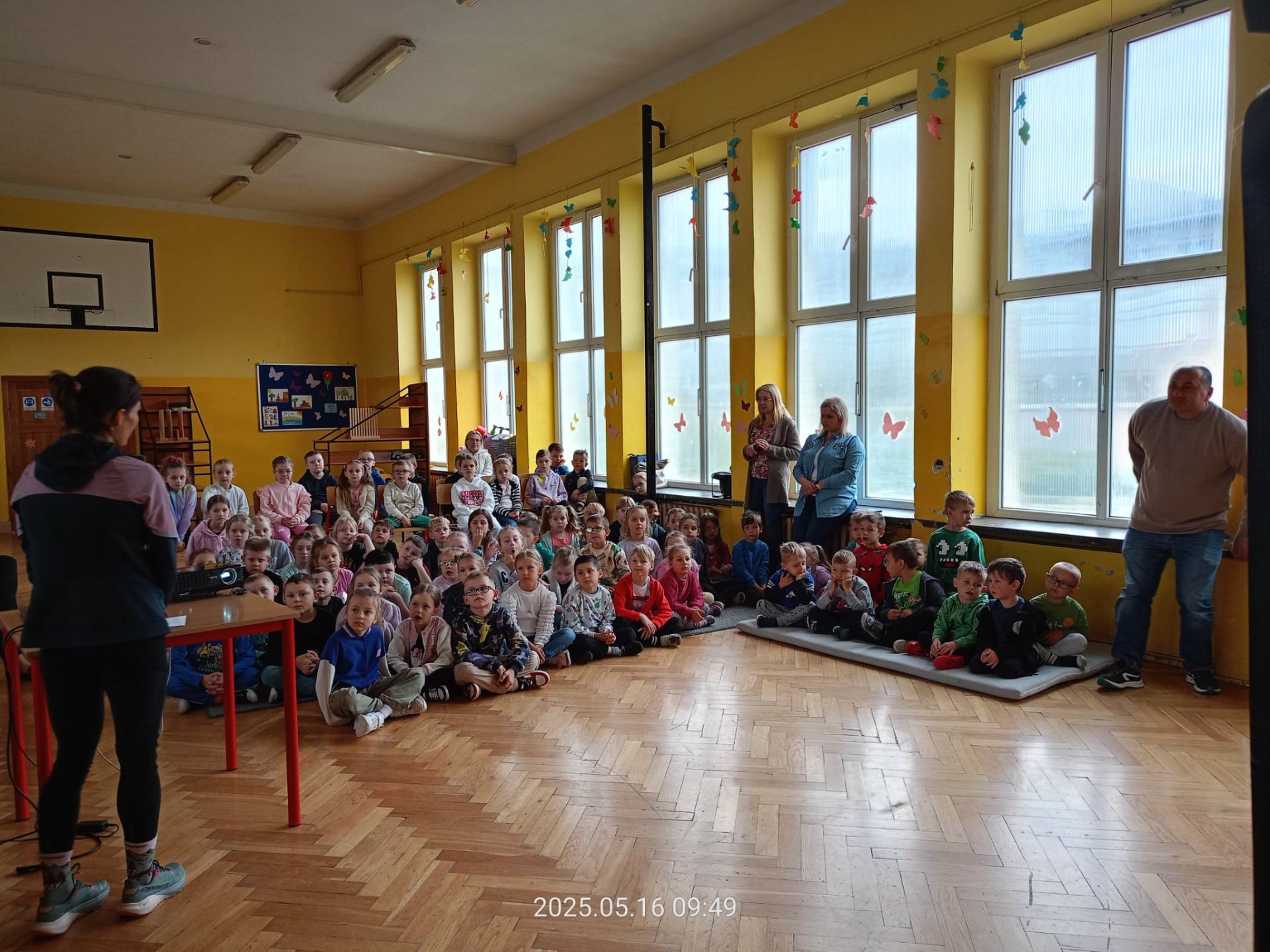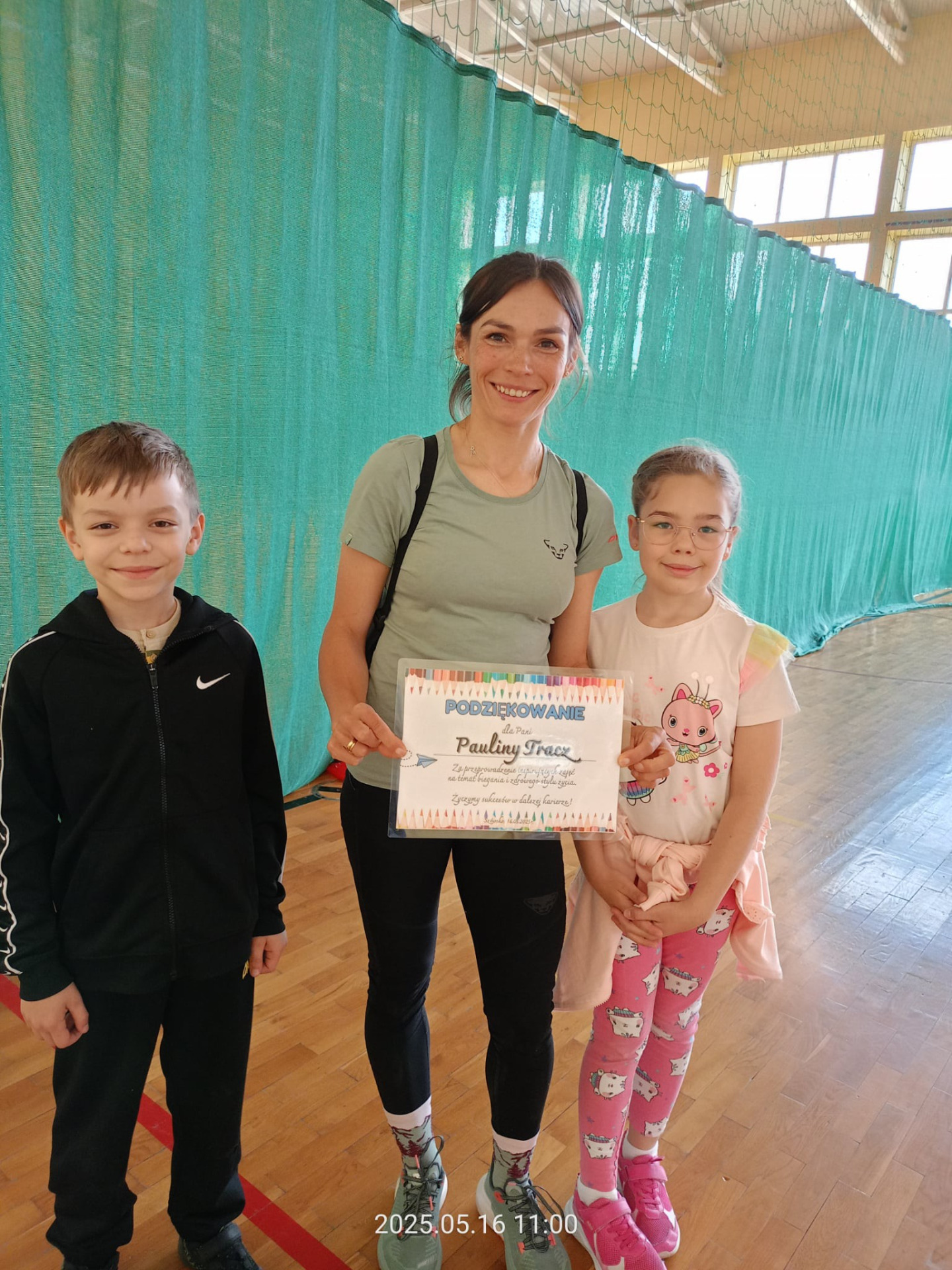 16 maja br. w naszej szkole odbyło się wyjątkowe spotkanie dla przedszkolaków oraz uczniów klasy pierwszej z niezwykłym gościem — panią Pauliną Tracz, utytułowaną biegaczką ultra, pasjonatką sportu i zdrowego stylu życia.