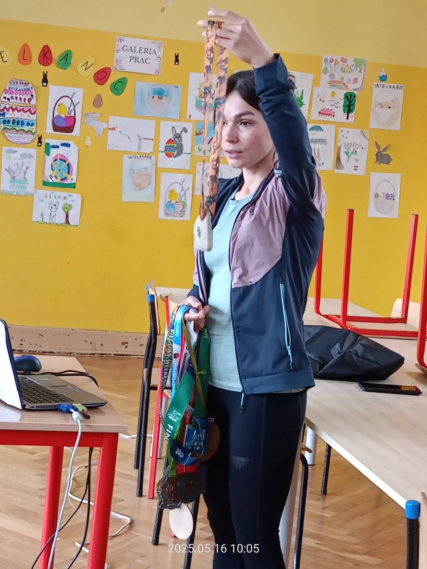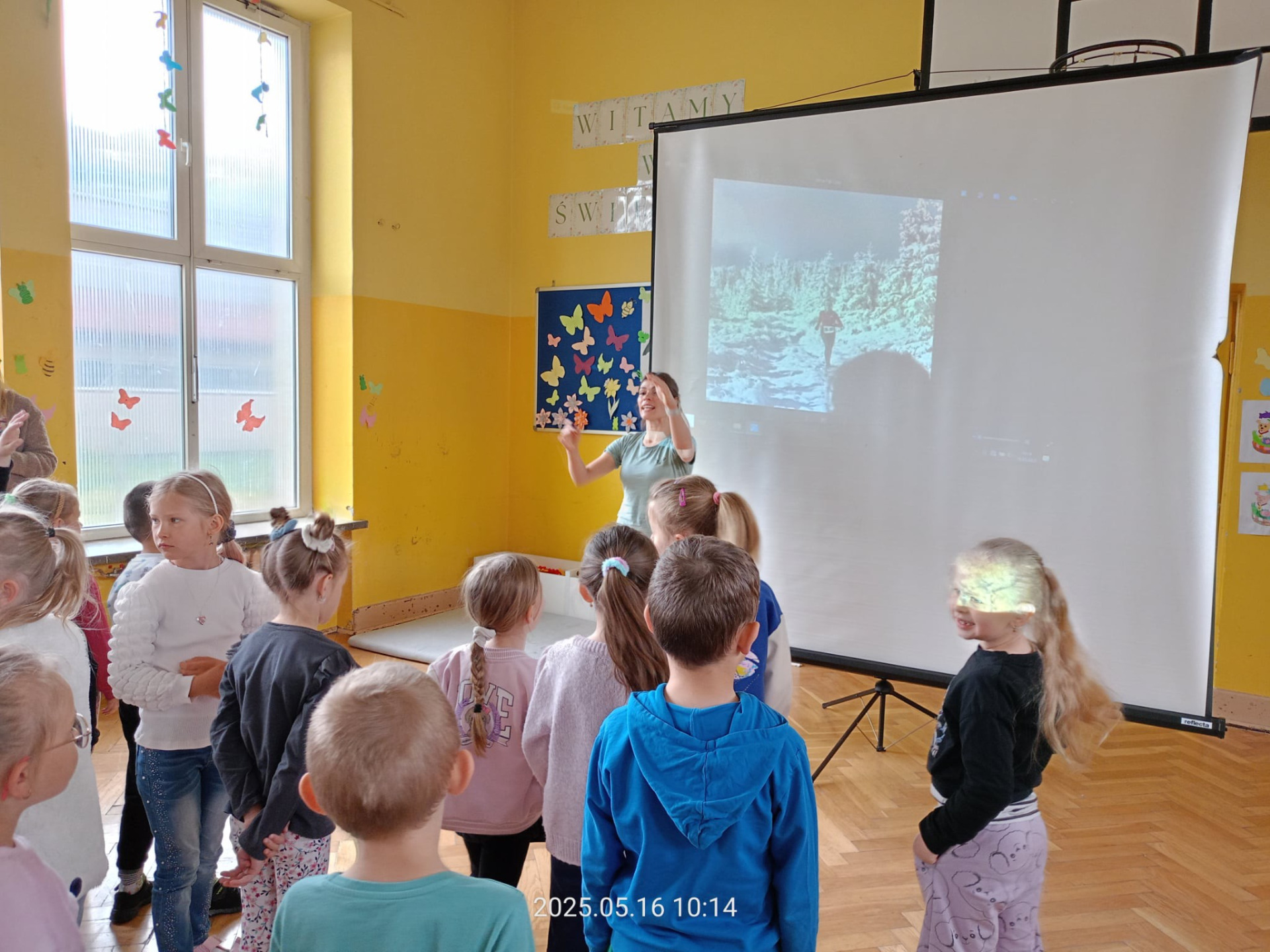 Pani Paulina podzieliła się z dziećmi swoją sportową drogą, opowiadając o codziennych treningach, wytrwałości oraz radości, jaką daje aktywność fizyczna. Przybliżyła najmłodszym specyfikę biegów górskich i ultra, w których regularnie bierze udział, osiągając imponujące wyniki.