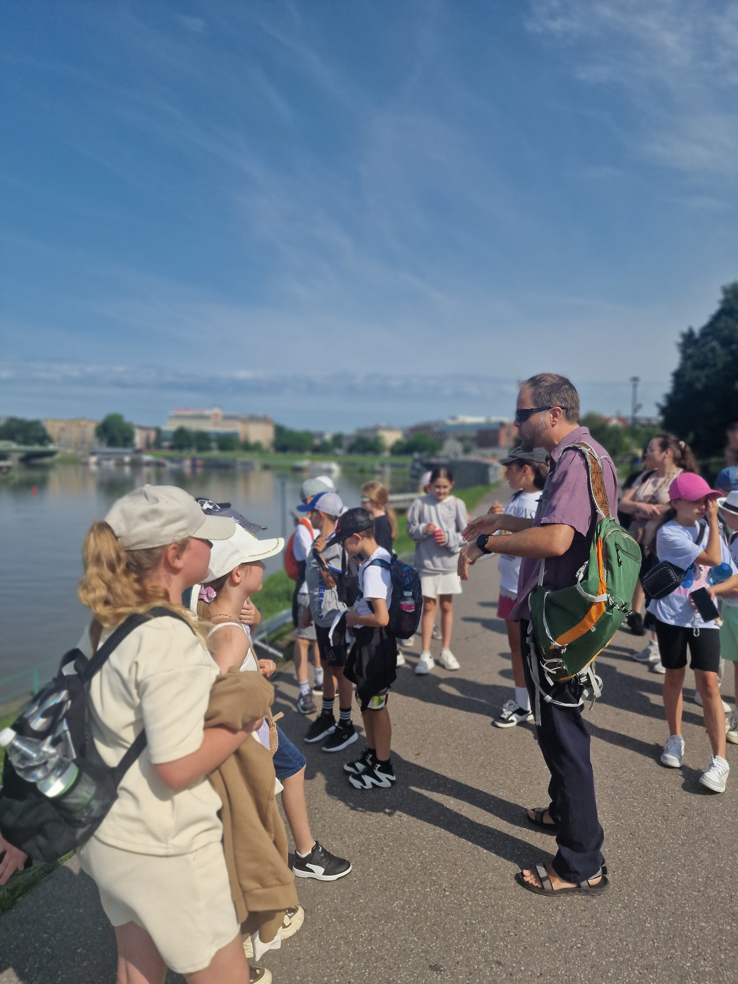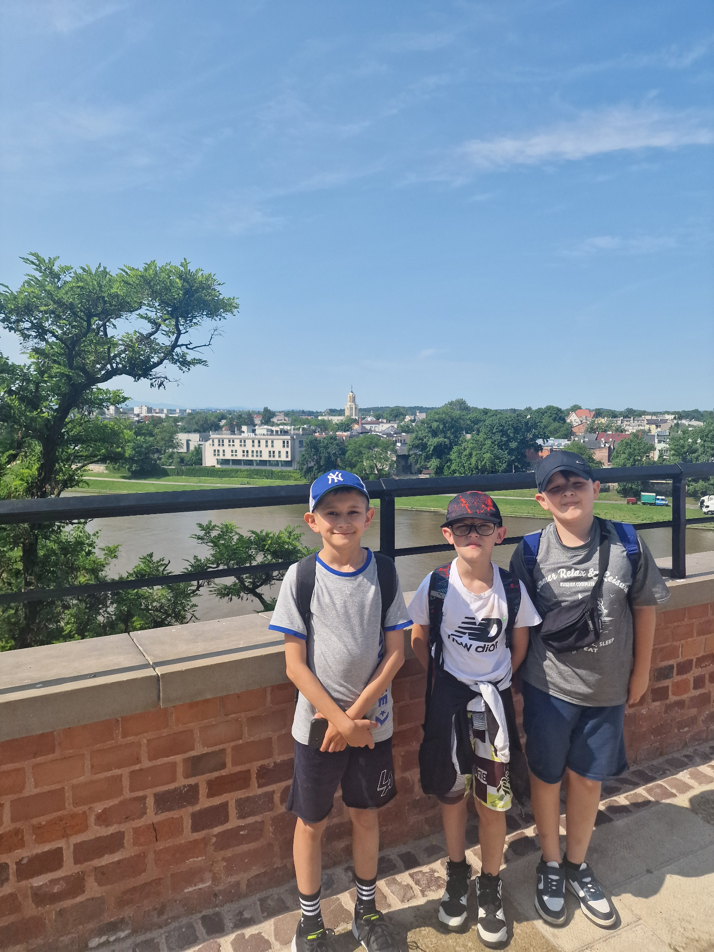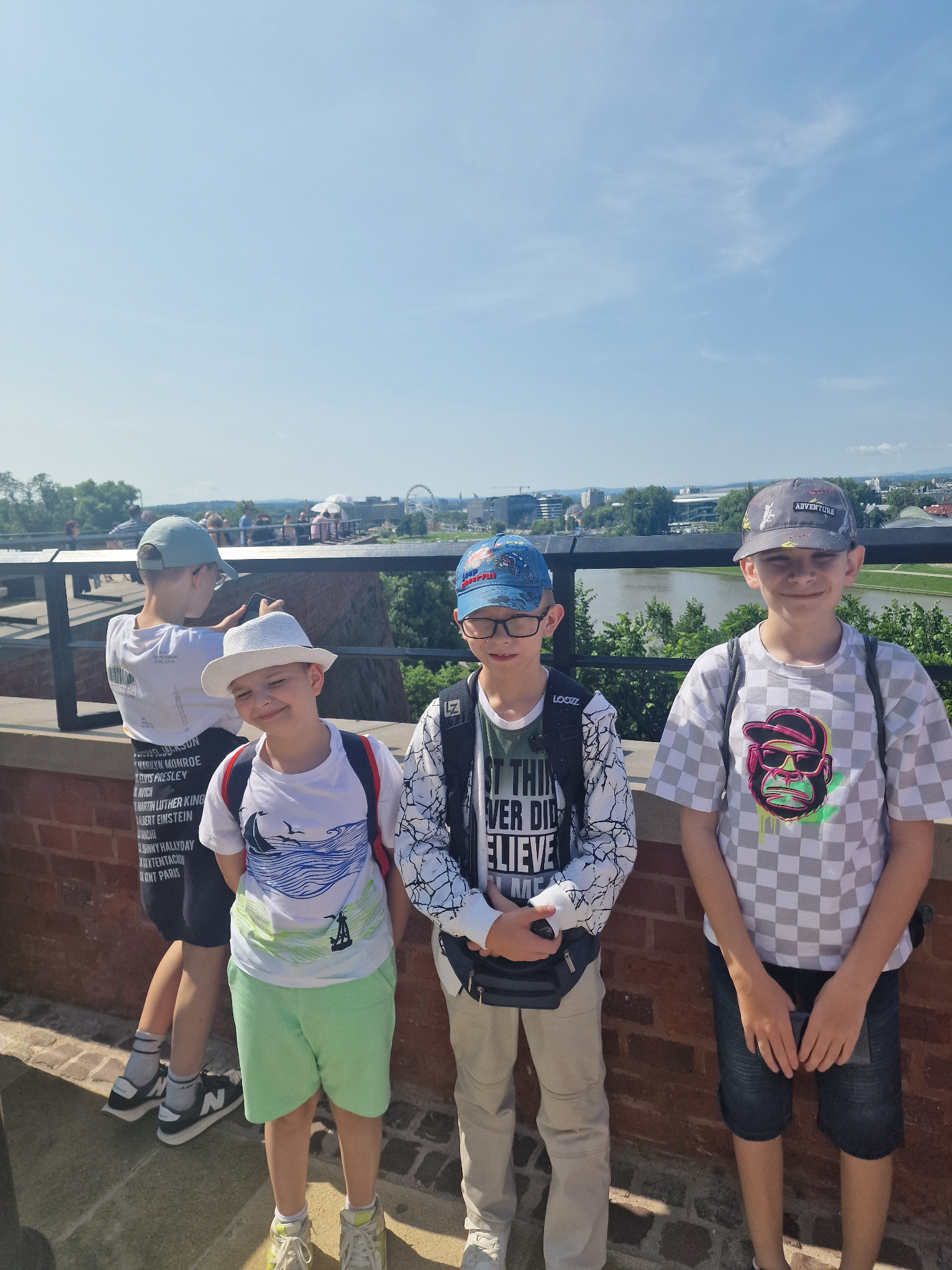 Pierwszym punktem programu było zwiedzanie Wawelu - dawnej siedziby królów polskich. Następnie uczestnicy wycieczki udali się do Kościoła Mariackiego, gdzie z zachwytem podziwiali słynny ołtarz Wita Stwosza. W samo południe na rynku krakowskim rozbrzmiał hejnał mariacki, który przypomniał o zbliżającym się obiedzie. Kolejnym przystankiem były Sukiennice – historyczna hala targowa w sercu krakowskiego Rynku, gdzie dzieci mogły przyjrzeć się pracy krakowskich rzemieślników oraz zakupić pamiątki. Ten punkt wycieczki okazał się najbardziej pożądany. Zabawki w rękach uczniów dostarczyły im ukojenia i radości z wyjazdu. Nie zabrakło też czasu na wspólne zdjęcia, pyszne lody i zabawę. Miejscem tych zabaw okazał się Ogród Doświadczeń im. Stanisława Lema. Dzieci mogły samodzielnie eksperymentować, poznawać prawa fizyki w praktyce i bawić na świeżym powietrzu wśród licznych atrakcji. Wycieczka dostarczyła wszystkim wielu wrażeń i na długo pozostanie w pamięci jako dzień pełen nauki, śmiechu i wspólnych przeżyć.