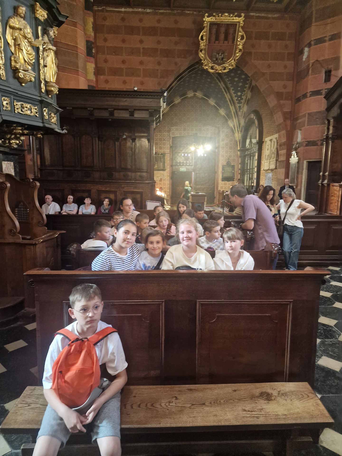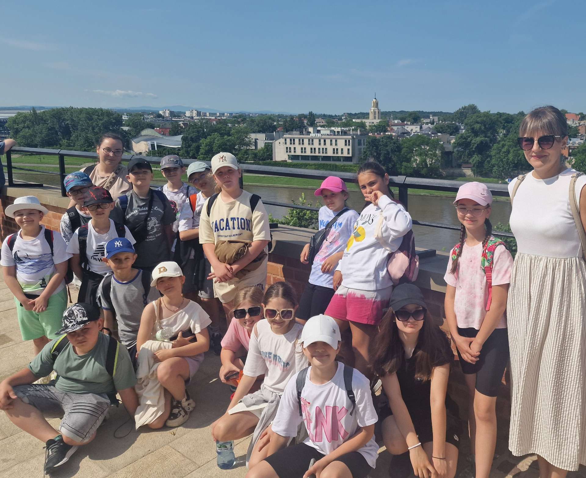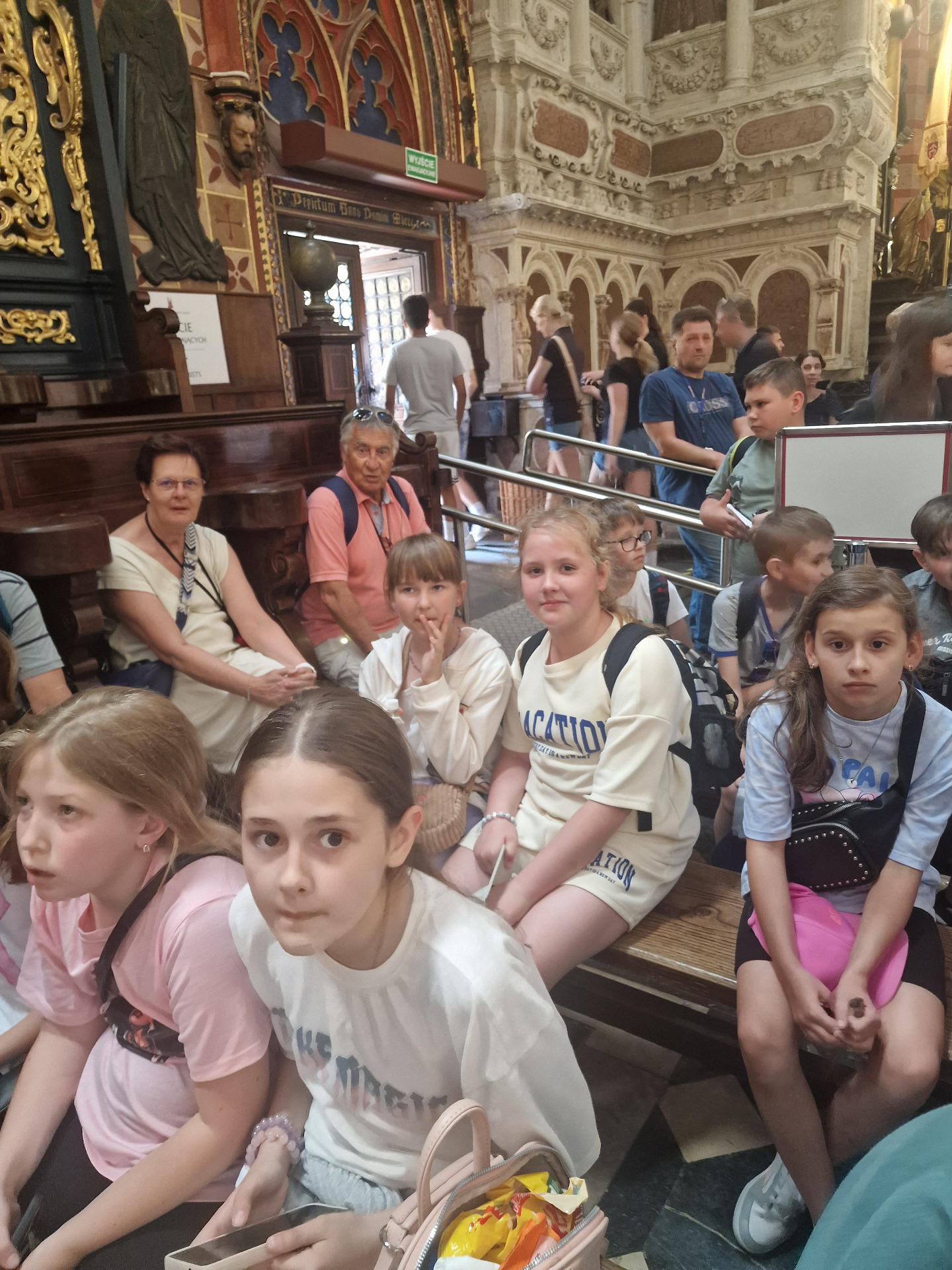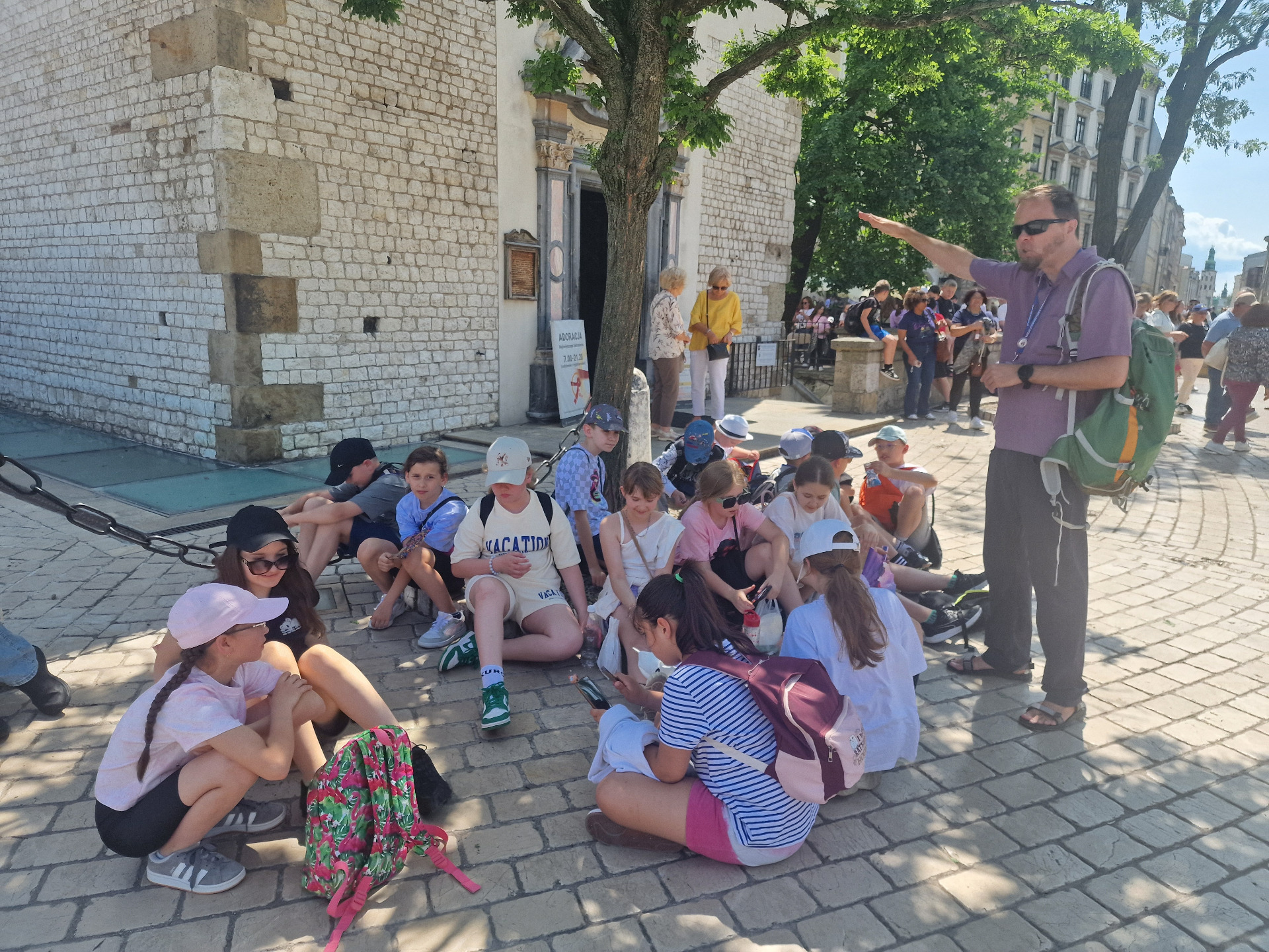 Pierwszym punktem programu było zwiedzanie Wawelu - dawnej siedziby królów polskich. Następnie uczestnicy wycieczki udali się do Kościoła Mariackiego, gdzie z zachwytem podziwiali słynny ołtarz Wita Stwosza. W samo południe na rynku krakowskim rozbrzmiał hejnał mariacki, który przypomniał o zbliżającym się obiedzie. Kolejnym przystankiem były Sukiennice – historyczna hala targowa w sercu krakowskiego Rynku, gdzie dzieci mogły przyjrzeć się pracy krakowskich rzemieślników oraz zakupić pamiątki. Ten punkt wycieczki okazał się najbardziej pożądany. Zabawki w rękach uczniów dostarczyły im ukojenia i radości z wyjazdu. Nie zabrakło też czasu na wspólne zdjęcia, pyszne lody i zabawę. Miejscem tych zabaw okazał się Ogród Doświadczeń im. Stanisława Lema. Dzieci mogły samodzielnie eksperymentować, poznawać prawa fizyki w praktyce i bawić na świeżym powietrzu wśród licznych atrakcji. Wycieczka dostarczyła wszystkim wielu wrażeń i na długo pozostanie w pamięci jako dzień pełen nauki, śmiechu i wspólnych przeżyć.