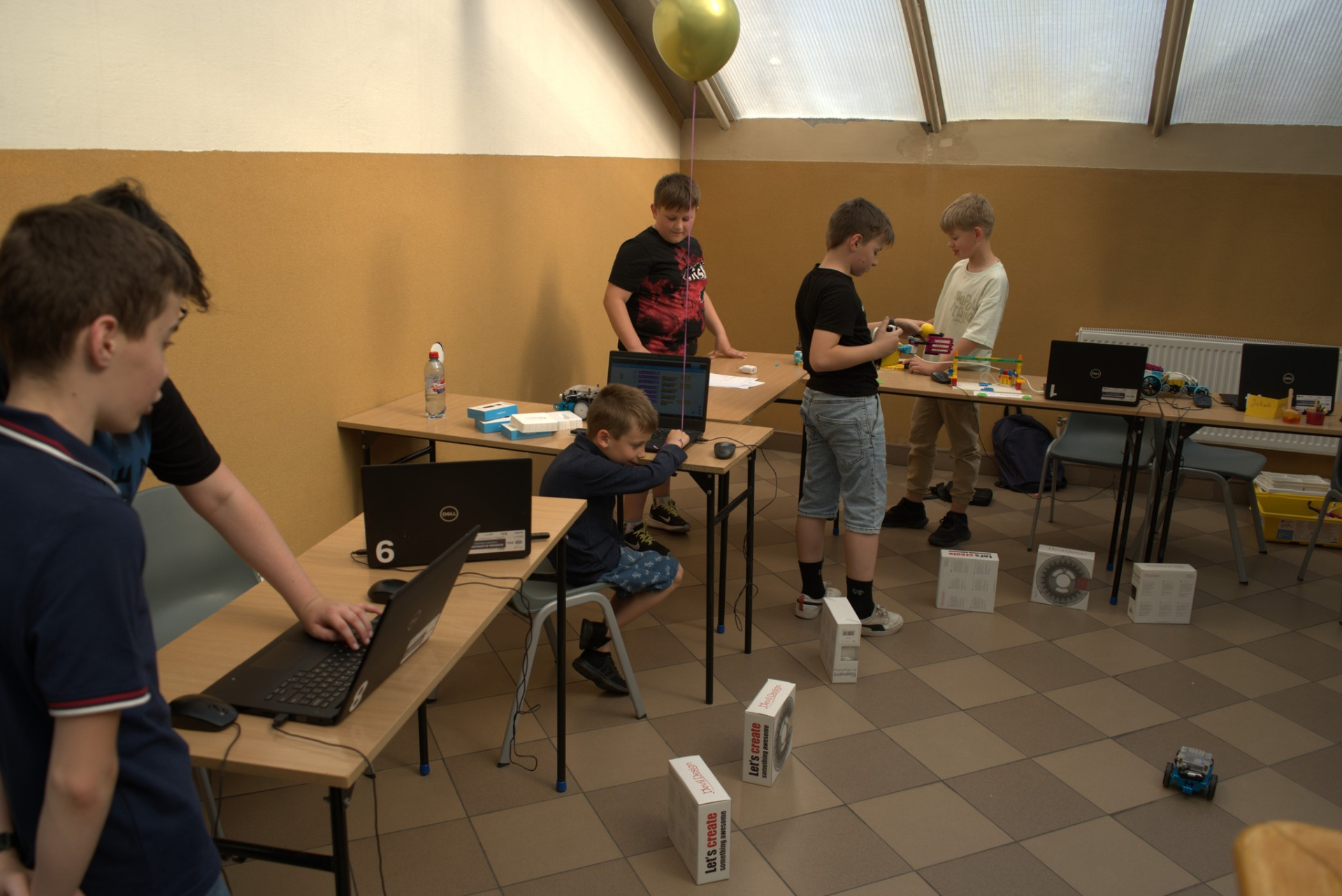 Uczniowie zaprezentowali stanowiska tematyczne, przy których dzielili się swoimi pasjami – od programowania i robotyki, przez muzykę i teatr, po rękodzieło i sport. Zaprezentowano zrealizowany w tym roku projekt międzynarodowej współpracy edukacyjnej Erasmus+ w którym uczniowie z naszej szkoły mieli okazję odwiedzić Cypr i Słowenię. Na sali gimnastycznej odbywały się zajęcia z nauki jazdy na deskorolce, dla dzieci to świetny sposób na rozwijanie koordynacji, równowagi i pewności siebie. Na placu przed szkołą odbyły się prezentacje wojskowe. Na torze przeszkód uczniowie mogli doskonalić technikę jazdy rowerem po wczorajszym egzaminie na kartę rowerową.