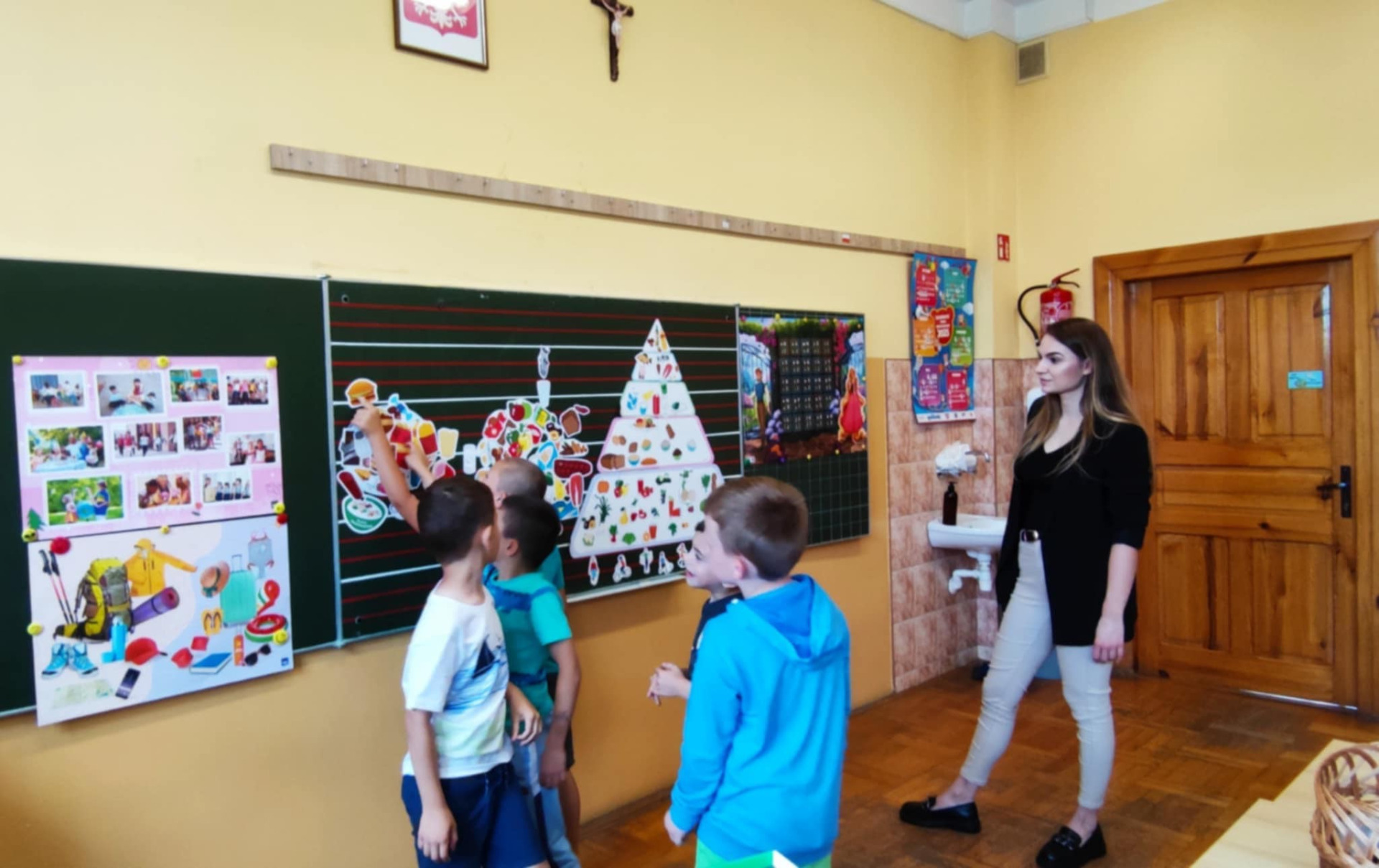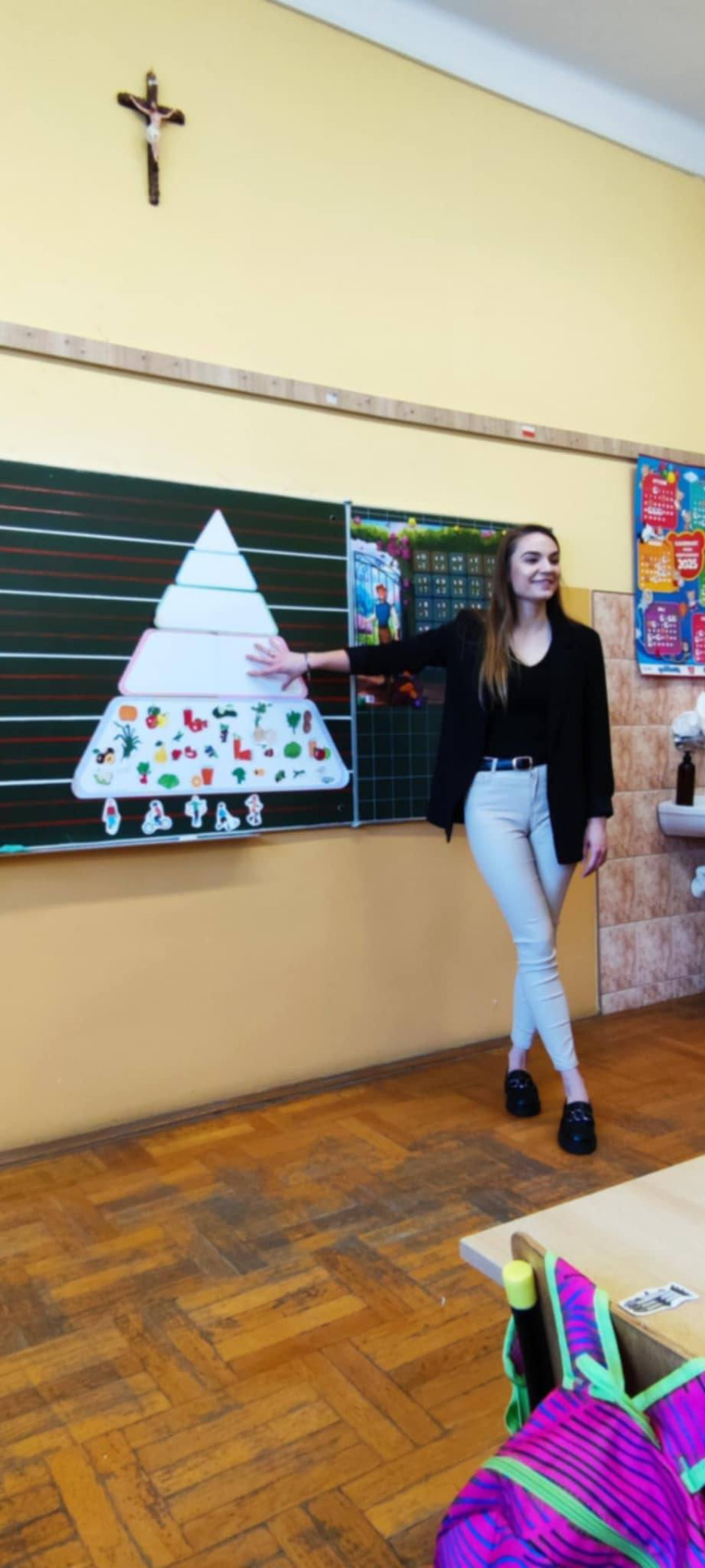 Głównym celem tej wizyty,była prelekcja na temat zdrowego odżywiania. Podczas zajęć dzieci zapoznały się z podstawowymi zasadami racjonalnego żywienia, poznały Piramidę Zdrowia oraz dowiedziały się, jakie produkty są korzystne dla zdrowia, a których należy unikać.