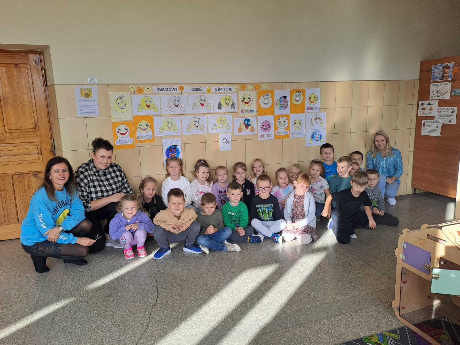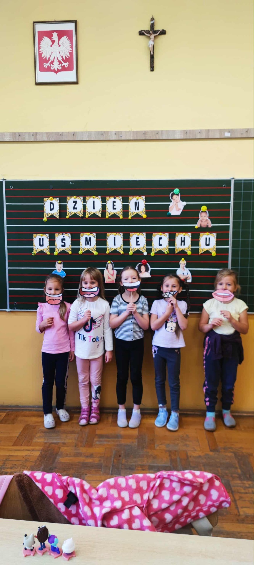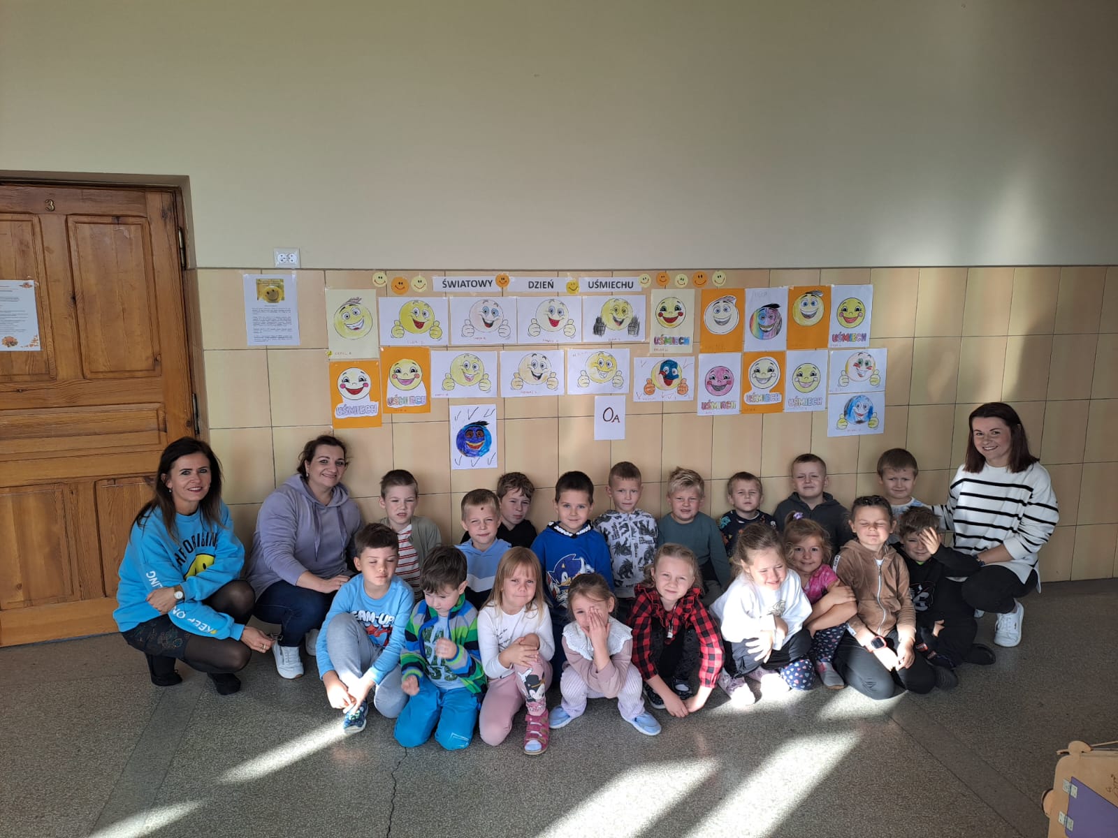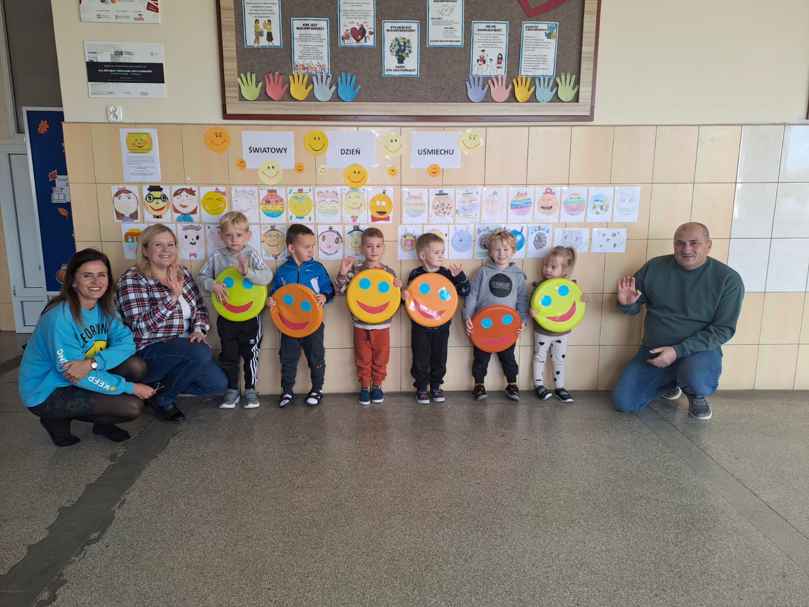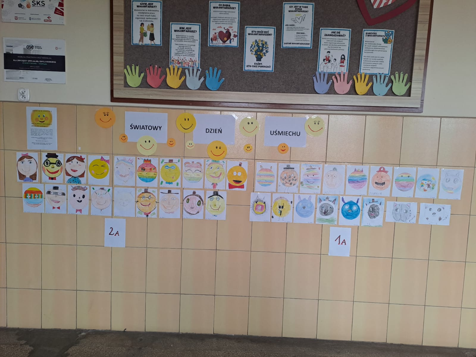Dzieci z grup: 0-3 tworzyły kolorowe i wesołe prace plastyczne pełne uśmiechniętych buziek, rozmawiały o tym, kiedy i dlaczego się uśmiechamy, a sale wypełniała radosna atmosfera. Były zabawy, śmiech i mnóstwo pozytywnej energii – bo przecież uśmiech to najlepszy sposób, by podarować komuś radość. W holu głównym szkoły utworzona została wystawa prac najmłodszych uczniów szkoły.