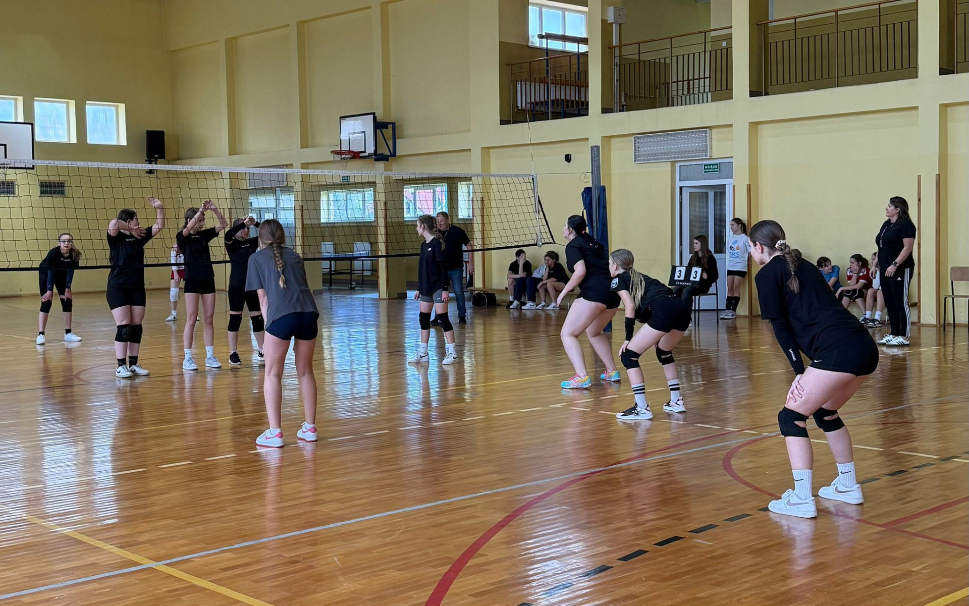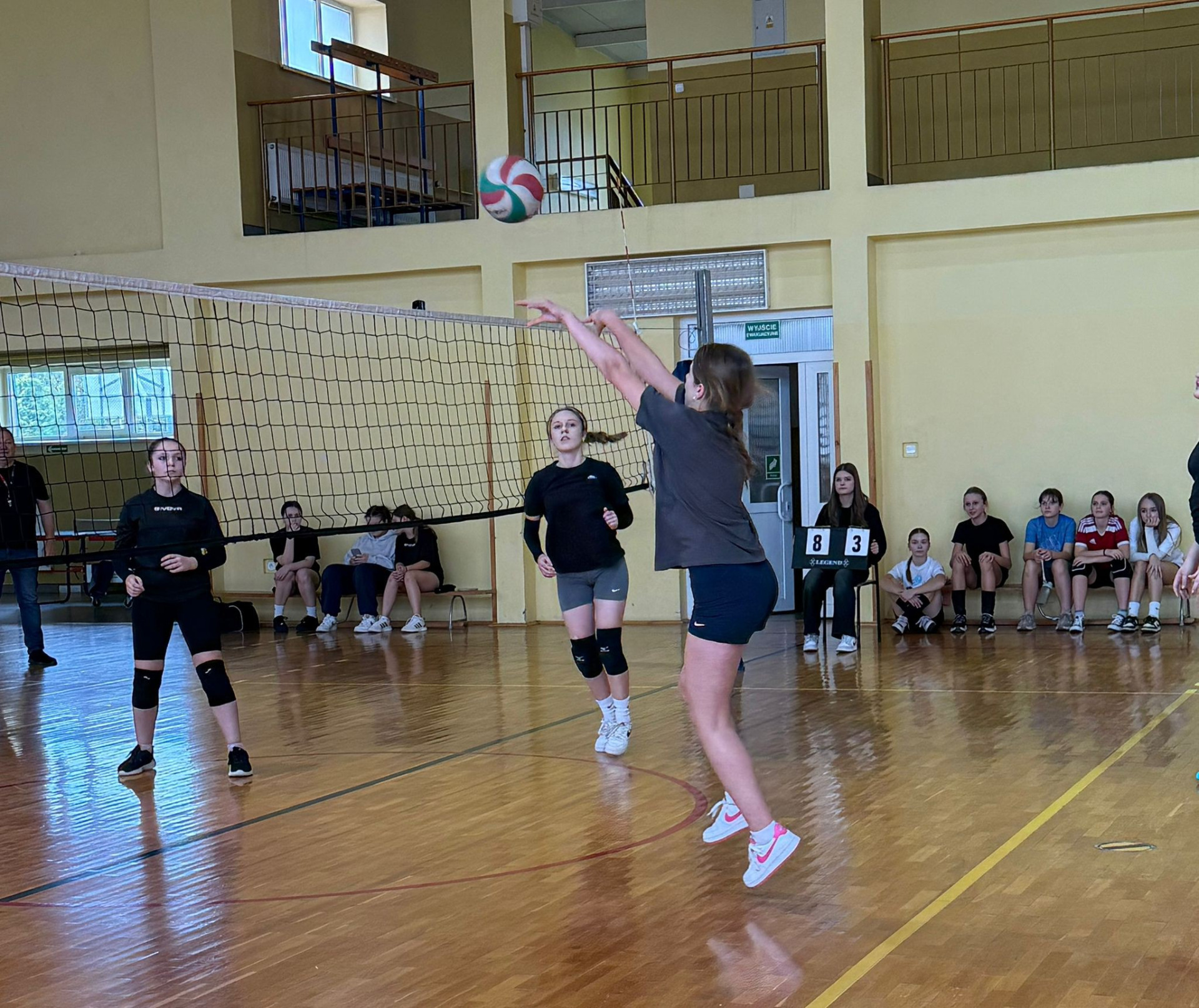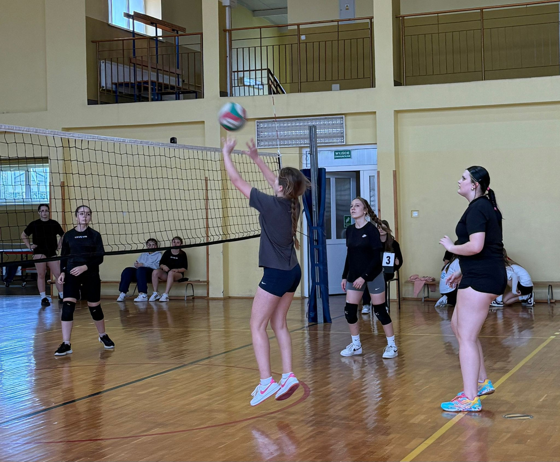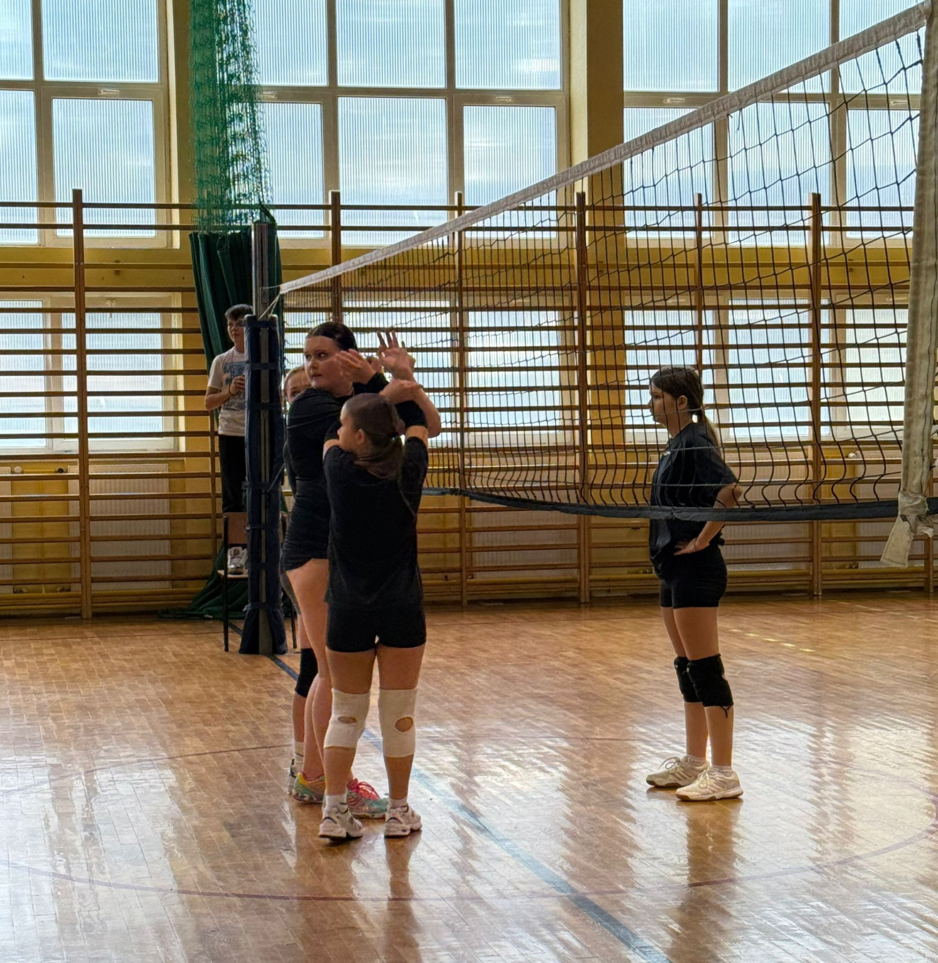 Dziś w naszej szkole odbył się mecz towarzyski w piłkę siatkową dziewcząt, w którym wystąpiły uczennice klasy 7 i 8 uczestniczące w programie „Aktywny do kwadratu”