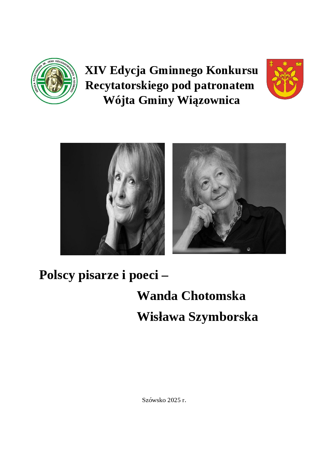 XIV Edycja Gminnego Konkursu Recytatorskiego pod patronatem Wójta Gminy Wiązownica Polscy pisarze i poeci – Wanda Chotomska Wisława Szymborska