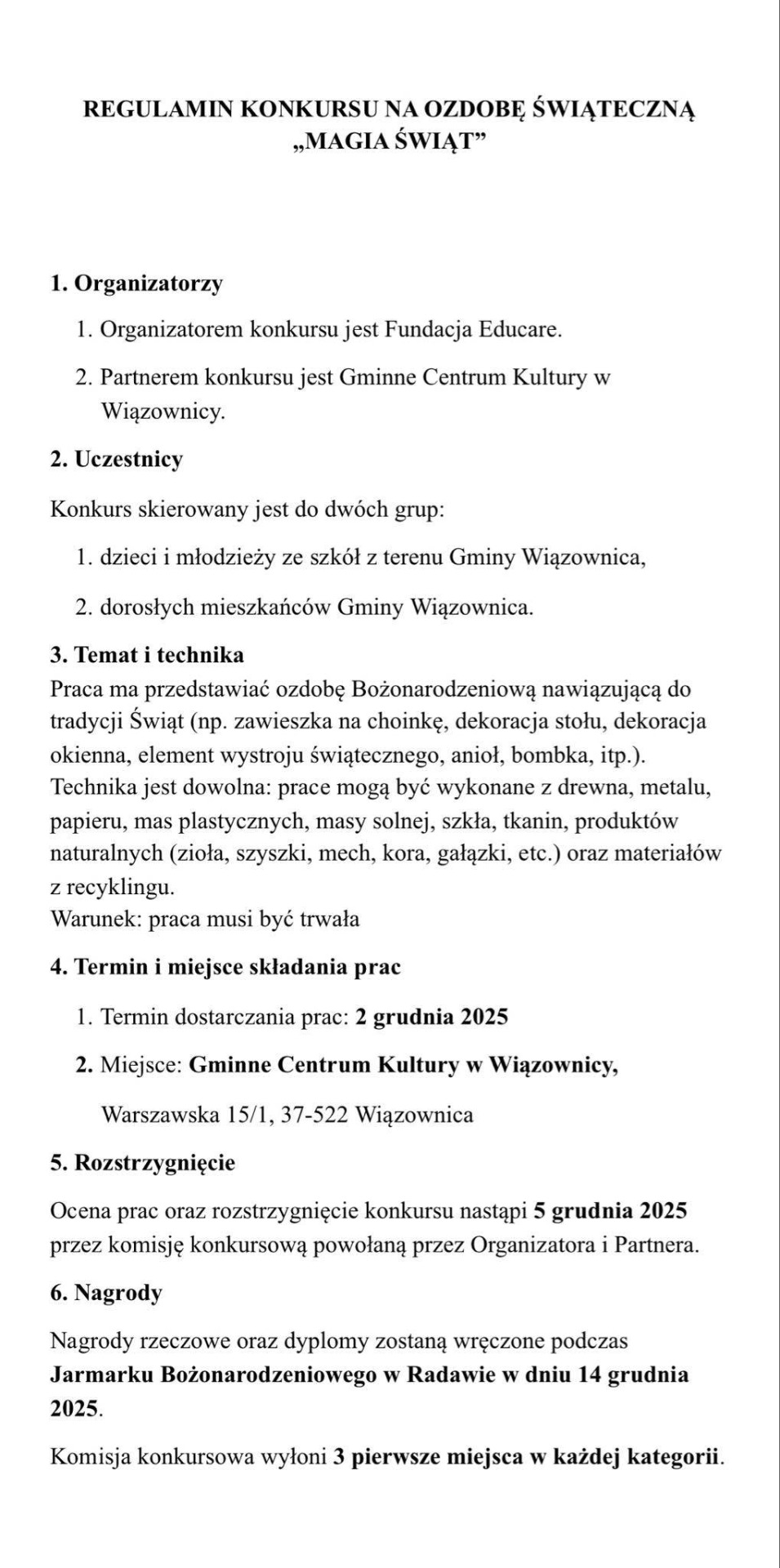 Zapraszamy do udziału w konkursie Ozdoba Świąteczna