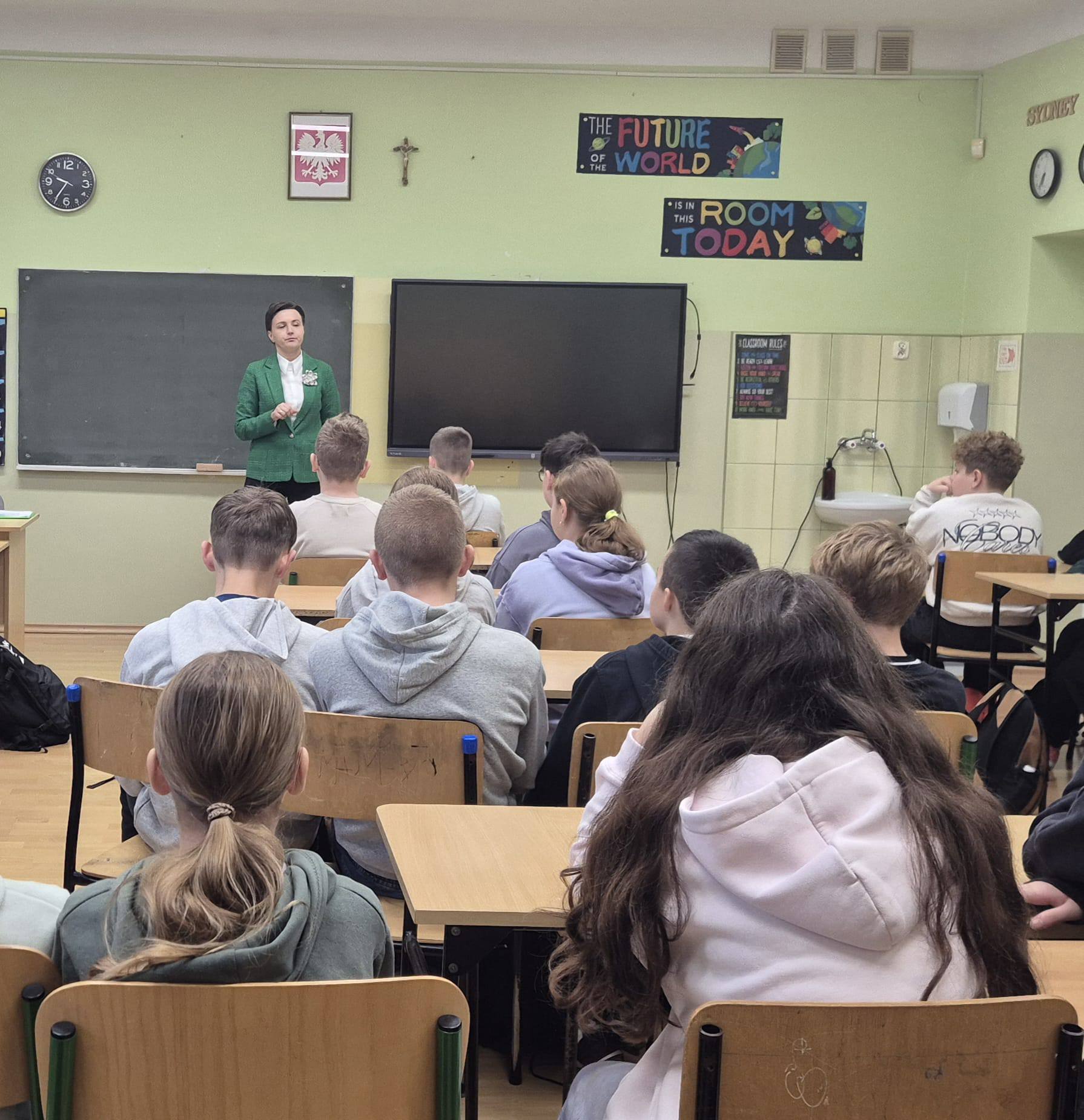 W naszej szkole odbyło się spotkanie z Panią Adwokat - Eweliną Streit-Browarną podczas którego uczniowie klas 6 i 7 mieli okazję poszerzyć swoją wiedzę na temat odpowiedzialności prawnej młodzieży. W przystępny i interesujący sposób przybliżyła ona zagadnienia związane z hejtem w internecie, konsekwencjami drobnych wykroczeń oraz obowiązkiem szkolnym.